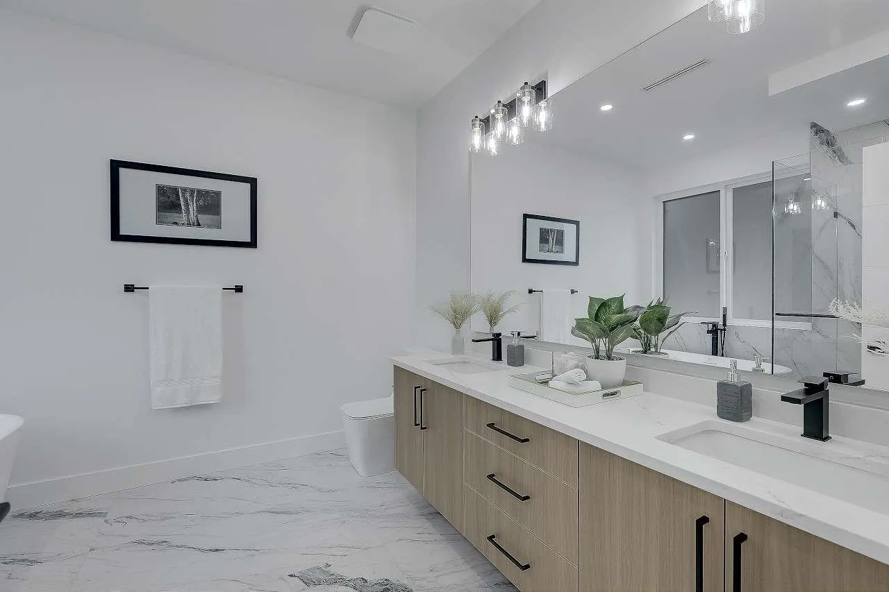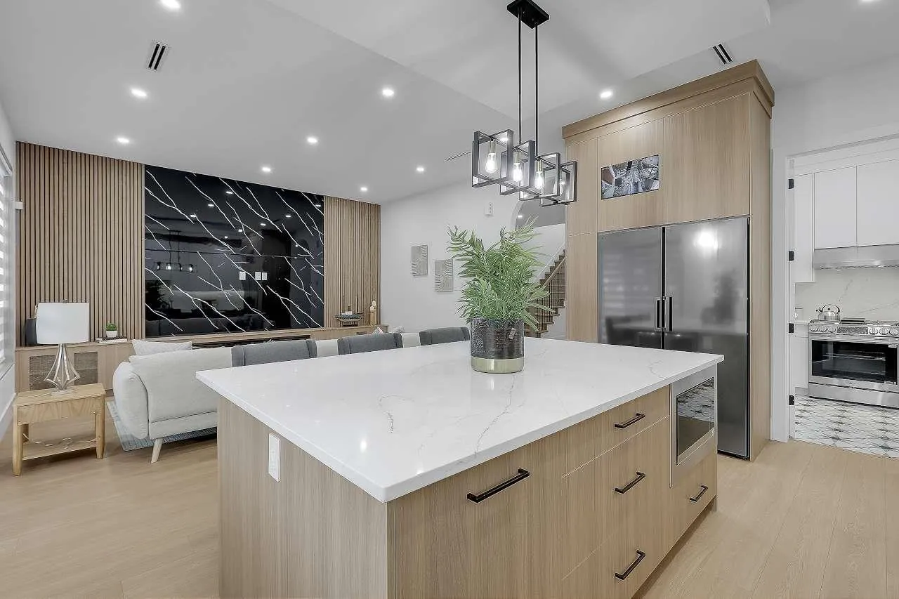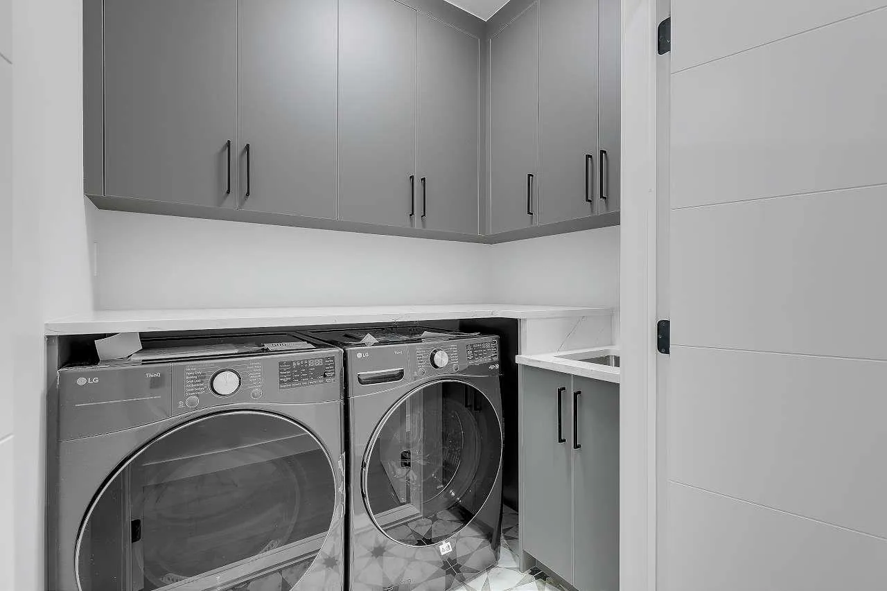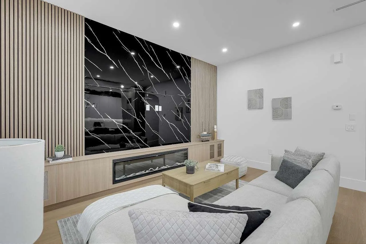 Stunning brand-new never lived in custom-built 9-bed, 8-bath modern masterpiece in North Delta! Perfectly designed for family living and entertaining, the main floor features a spacious living & family room, master bedroom, powder room, and a gourmet kitchen with spice kitchen. Upstairs, retreat to a luxurious 2 master bedrooms. The fully finished basement offers a rec room, gym, 2-bed legal suite & 1-bed garden suite with $5,000/month rental potential. Enjoy indoor-outdoor living on the covered deck-ideal for BBQs. Premium finishes include quartz counters, acrylic cabinets, radiant in-floor heating, A/C, HVAC, custom fireplaces. Steps from schools, shopping, transit, and major bridges. 2-5-10 warranty. Purchase price excluding GST. 8 car driveway. Home is virtually staged in photos. (id:27476)