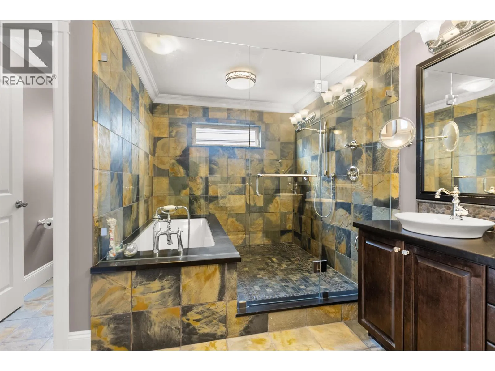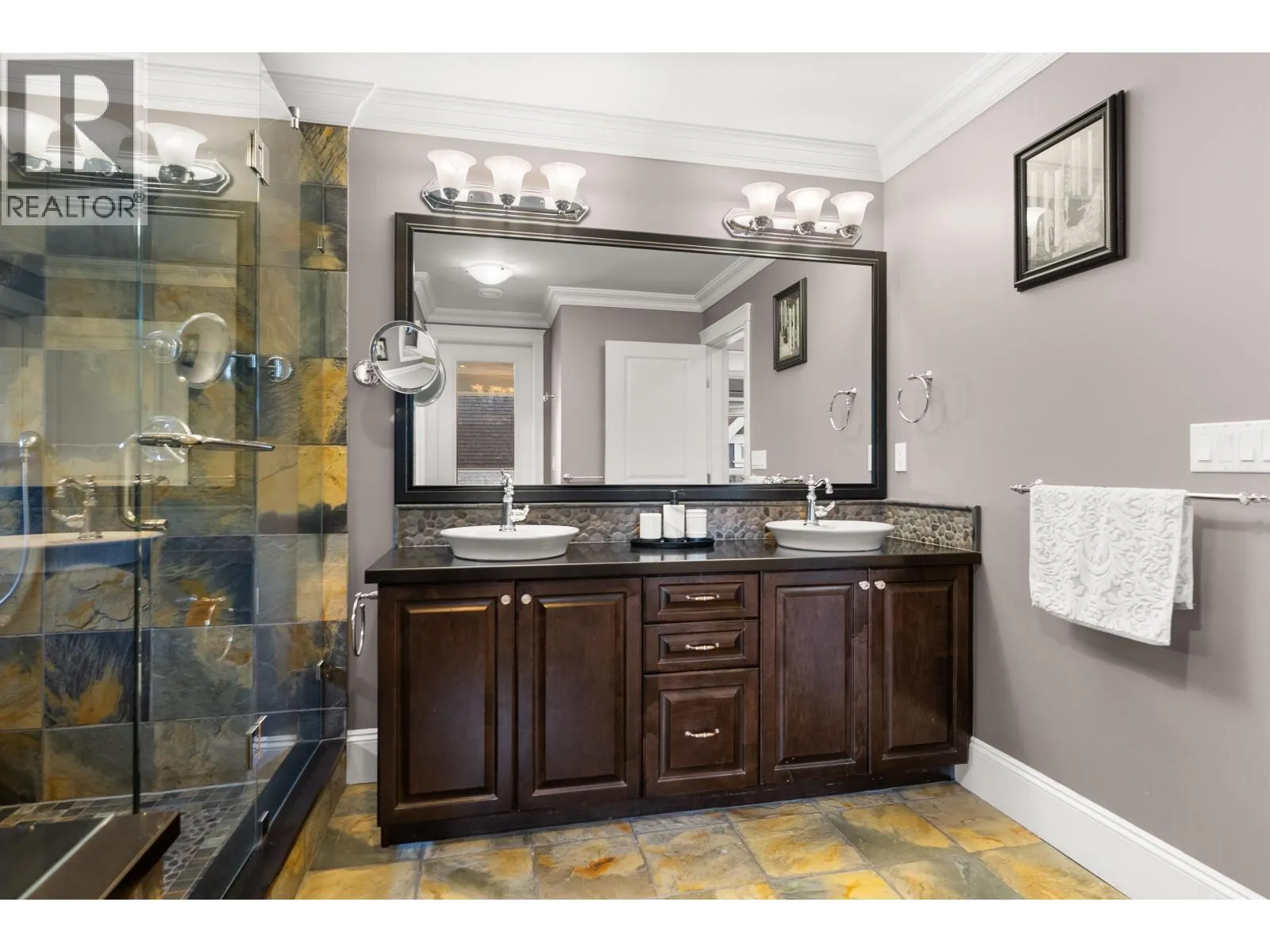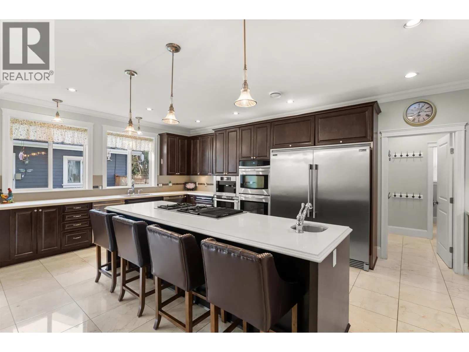 This exquisite 3,8,35sqft executive residence features a rare, detached 653sqft 2-bed legal coach home. A Brazilian mahogany door reveals Italian marble floors, custom millwork and a hand-turned staircase. The chef's kitchen dazzles with quartz counters, maple shaker cabinets, Jenn-Air gas range, double ovens, 2 dishwashers and built in Miele coffee station. Entertain seamlessly via the dining room's 15ft NanaWall, opening to a heated outdoor oasis with a gas fireplace. Upstairs features spacious bedrooms and a primary suite featuring a spa-like ensuite with dual showers, soaker tub and a private balcony complete with a hot tub. Located on a quiet cul-de-sac steps from both levels of schools, parks and shopping. The ultimate blend of craftsmanship and convenience. (id:27476)