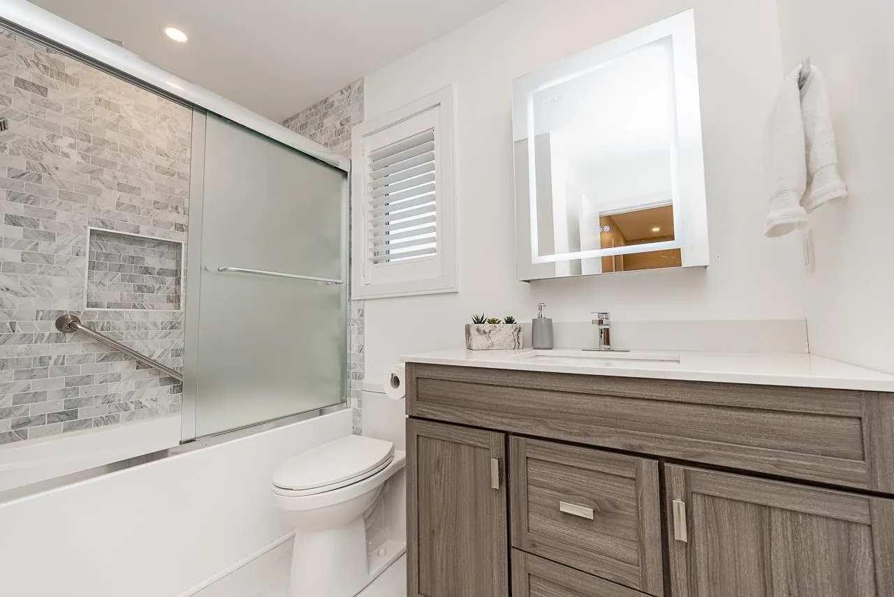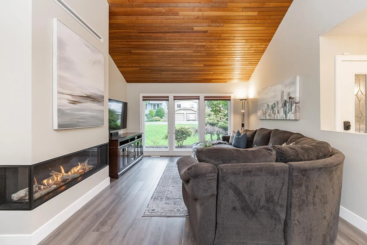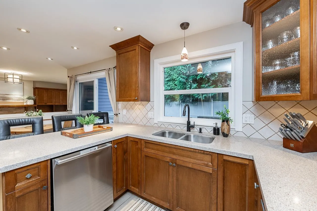 Beautifully updated family home in sought after Sunshine Woods, where timeless style meets everyday comfort. Soaring vaulted ceilings & a cozy gas fireplace create a warm, inviting living space perfect for gathering. The bright kitchen features in floor heating, quartz counters, maple cabinetry & modern lighting, opening seamlessly to a private, fully fenced backyard with a stunning paving stone patio, mature trees & space for kids to play or friends to gather. The layout is ideal for families, offering 4 good sized bedrooms up. Tastefully updated bathrooms add elegance & function. Stone driveway, exterior Gemstone lighting, gas lines in place for BBQ & stove, plus hot tub wiring. Truly move in ready in coveted Seaquam IB & Pinewood catchments, with Watershed Park just a short stroll away. (id:27476)