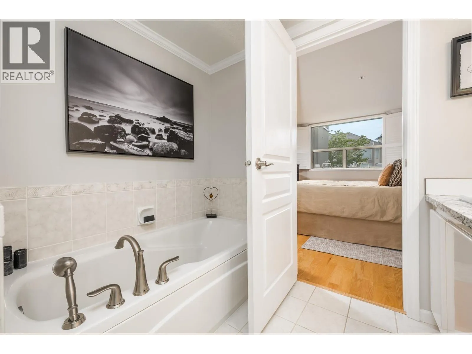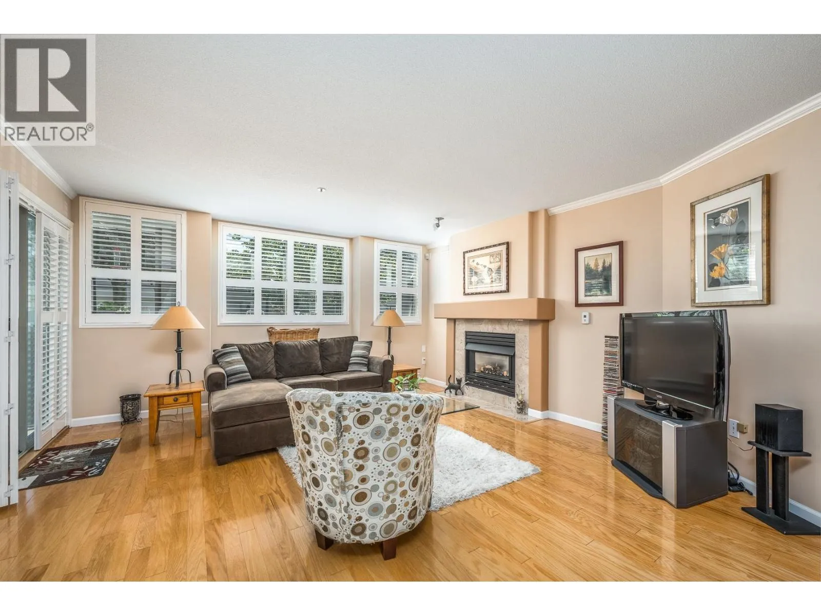 Welcome to Royal Oaks in the heart of Tsawwassen. This bright 1-bedroom + den home (den easily a 2nd bedroom) sits on the quiet side of the building and features a rare private key-entry patio just steps to guest parking. Spacious kitchen with updated appliances and wine fridge opens to warm, elegant living with custom hardwood floors, California shutters, and cozy gas fireplace. Large primary bedroom fits a king bed and offers a walk-in closet with organizers. Includes 5x6 storage locker. Pet-friendly complex with guest suite and clubhouse set in a park-like setting with beautiful green space. Steps to shops and Restaurant Row. (id:27476)