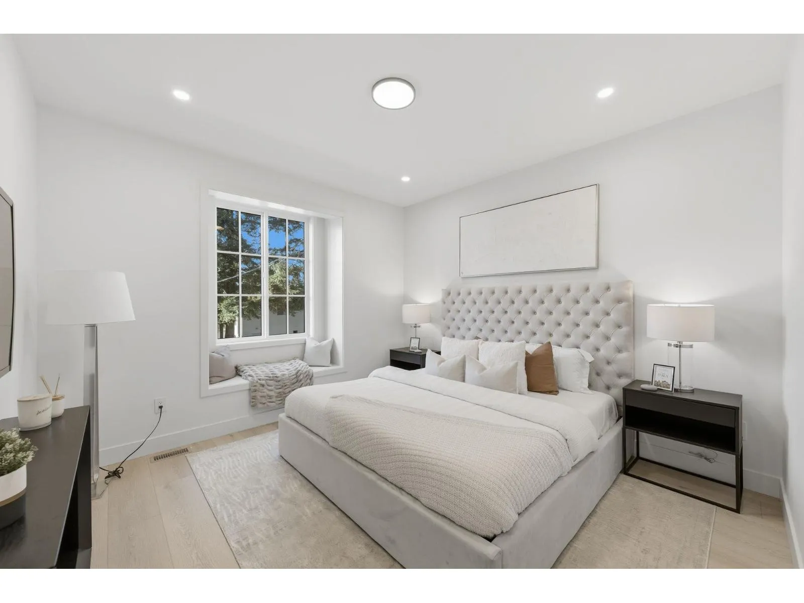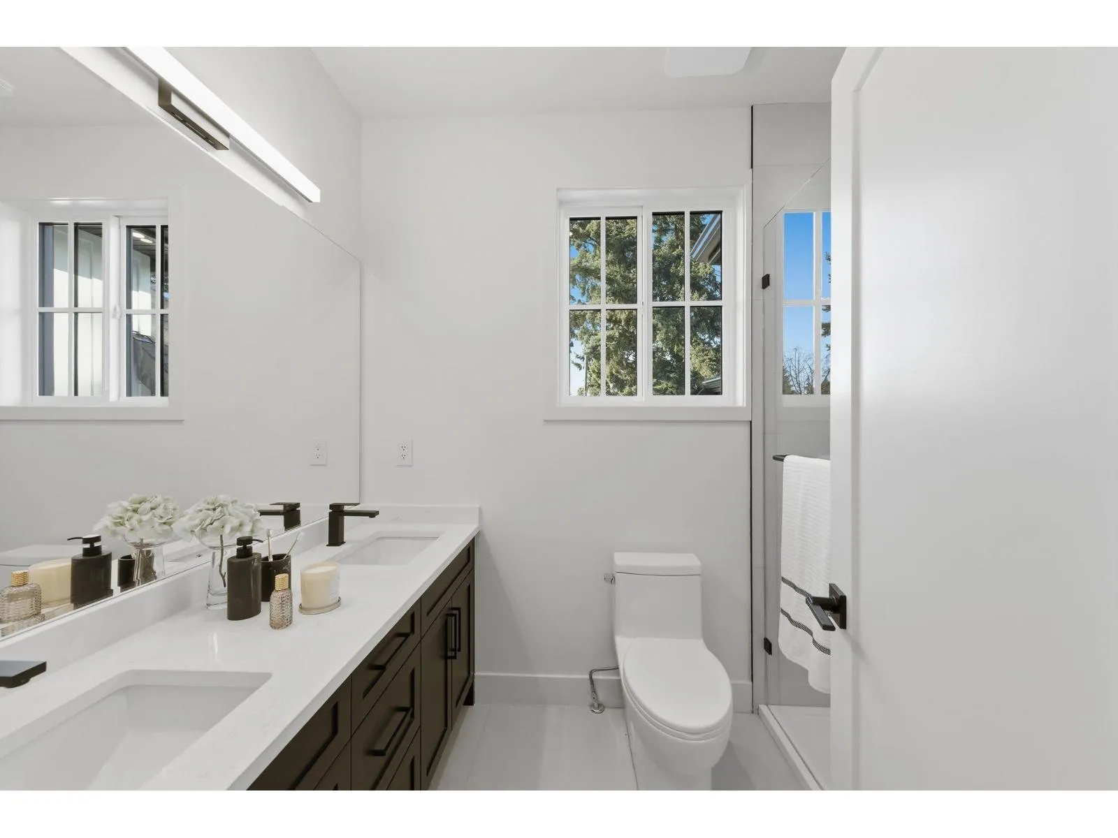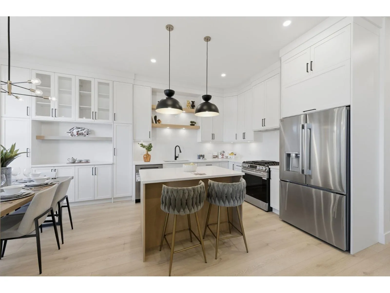 Stylish Duplex Home blending comfort and functionality. The main floor features an open-concept layout with soaring windows, a gourmet kitchen with premium appliances, oversized island, and seamless flow to the living and dining areas. Enjoy summer BBQs in your private fenced backyard with patio. Upstairs you'll find 3 generously sized bedrooms, including a serene primary bedroom with walk-in closet and a spa-inspired ensuite with double vanity sinks. The basement is designed for versatility with a guest bedroom and bathroom plus a bright 2-bedroom LEGAL SUITE, perfect for family or rental income. Ideally located near schools, parks, shops, and transit, his home offers modern living in the heart of North Delta! OPEN HOUSE SAT/SUN (2-4 PM). (id:27476)