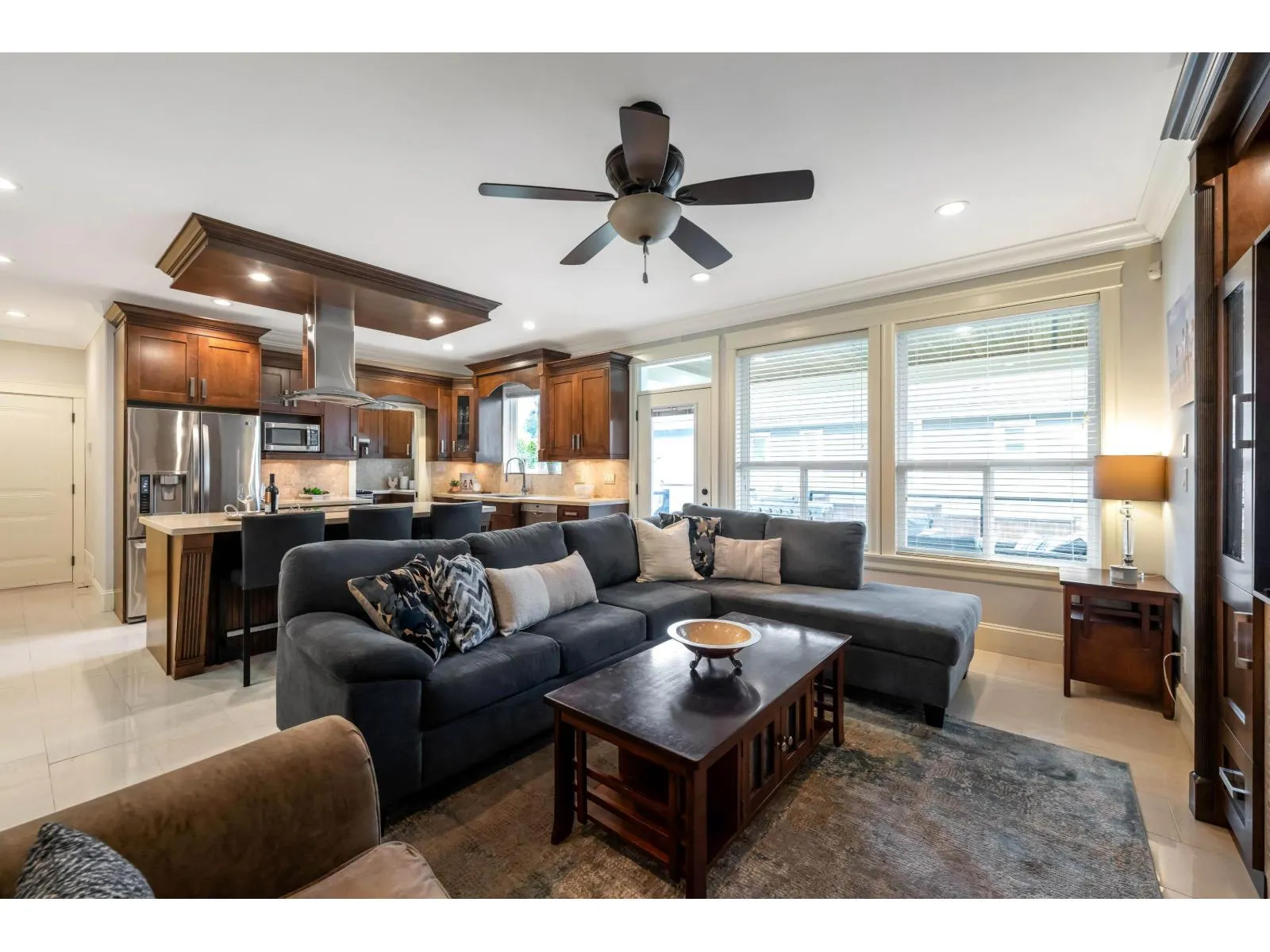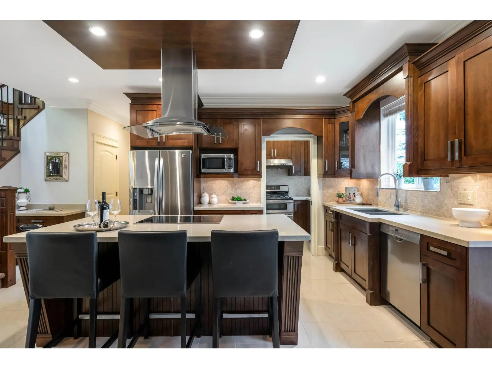 Beautiful, well-maintained 6 bedroom, 5 bathroom home in a private setting in a highly desirable area. Spacious open plan with 12' ceilings, hardwood floors, and a large gourmet kitchen plus spice kitchen, oversized island with cooktop, and quartz & granite counters. Main floor office can serve as a bedroom. Upstairs offers 4 bedrooms, each with its own ensuite, plus a convenient laundry room. Enjoy private sundecks and a large paved patio. Added value with a 1,600 sq ft unfinished basement and a 1-bedroom legal suite with separate entry. Close to transit, schools, shops, and library. Open House Sunday March 29th 11:30am-1pm (id:27476)