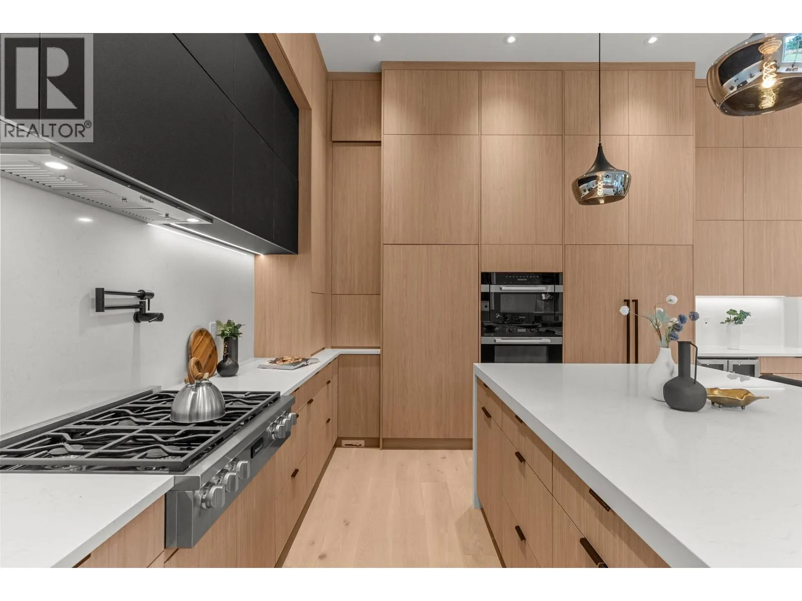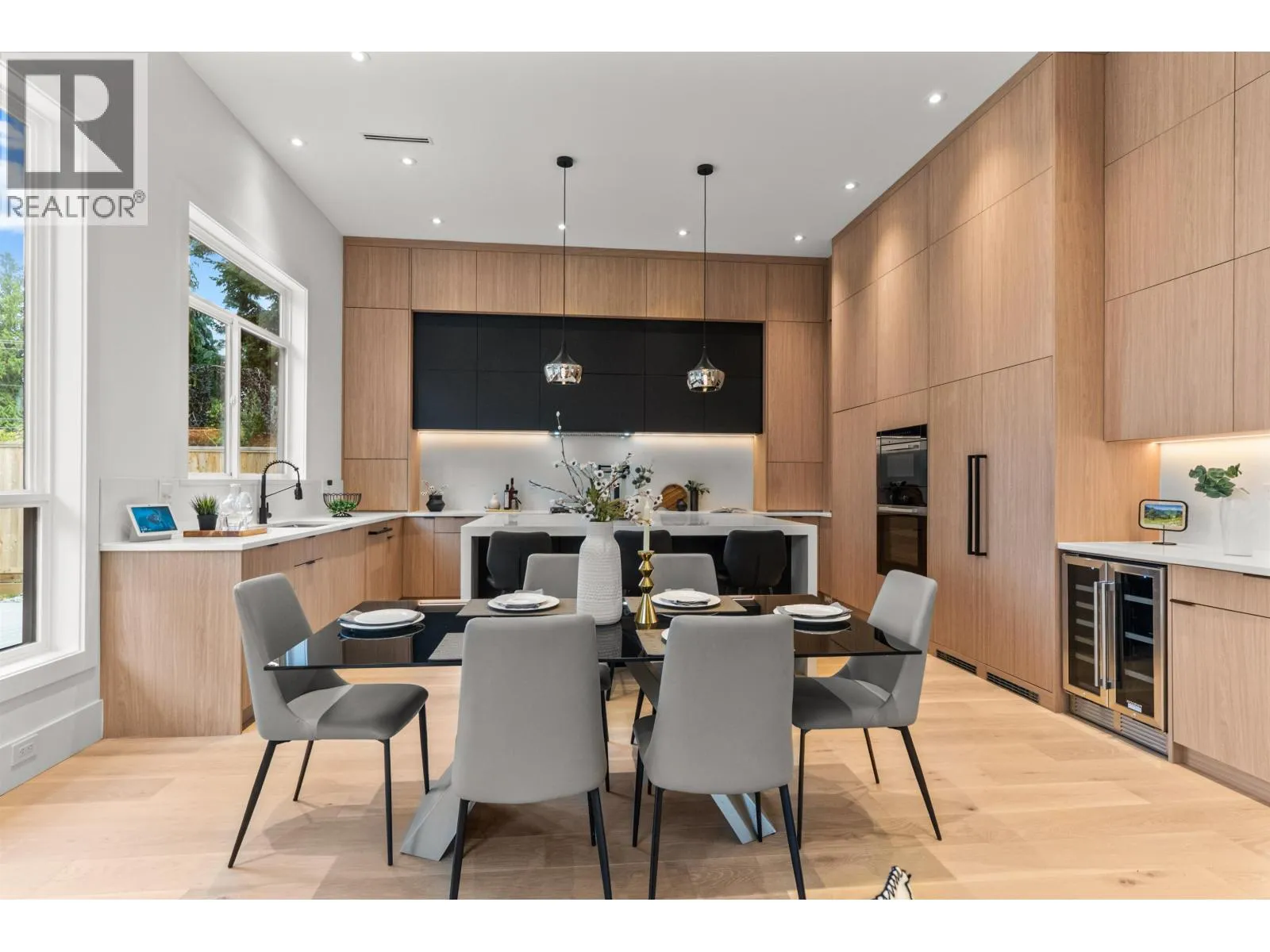 Immerse yourself in this stunning home mere steps from the beach. This property offers the perfect blend of functionality and luxury. You'll be greeted by 14' ceilings that create a spacious and airy feel. The open floor plan seamlessly blends living areas, making it perfect for entertaining or enjoying family time, plus the covered patio with BBQ area and dedicated gas lines extends the livable space. The kitchen is equipped with top-of-the-line Miele appliances, spacious countertops, ample storage space and a wine cooler. Included in the kitchen is a large island with a waterfall countertop. Beautiful hardwood floors all with radiant in-floor heating complemented with a gas fireplace and Air Conditioning. (id:27476)
