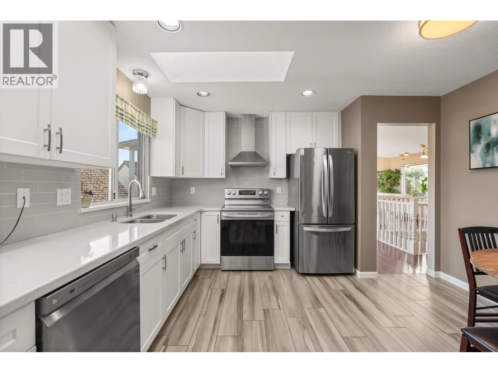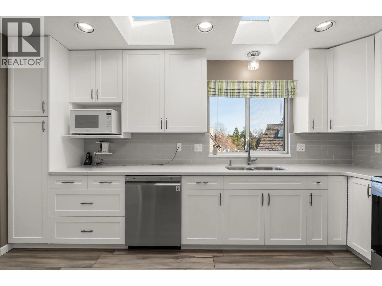 VILLAGE GREENS 'move in ready' 3 bed 3 bath 1768 square ft DETACHED HOME on private & sunny lot in central location - walk to everything!Updated kitchen with white shaker cabinets, quartz counters, s/s appliances & skylights for natural light overlooks back gardens.Living & dining rooms feature warm H/W flooring & abundance of windows & living room has cozy gas fireplace & sliders to spacious covered deck - great outdoor living space!Primary bedroom down features spa inspired ensuite with soaker tub & separate shower. Two additional bedrooms down share updated bathroom & family room is ideal TV room, gym or office with sliders to private back yard with deck & lawn space - low maintenance yard - ideal for kids & pets! Walk to everything from this great Beach Grove location!*OPEN SUN MAR 22 (2-4 PM)* (id:27476)