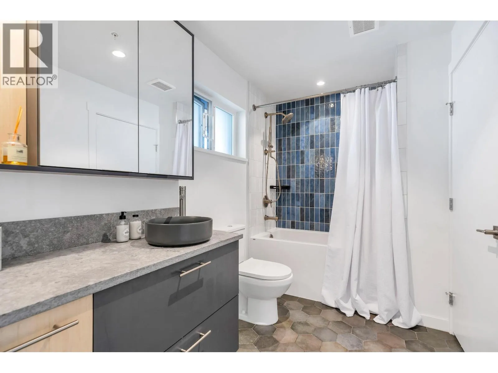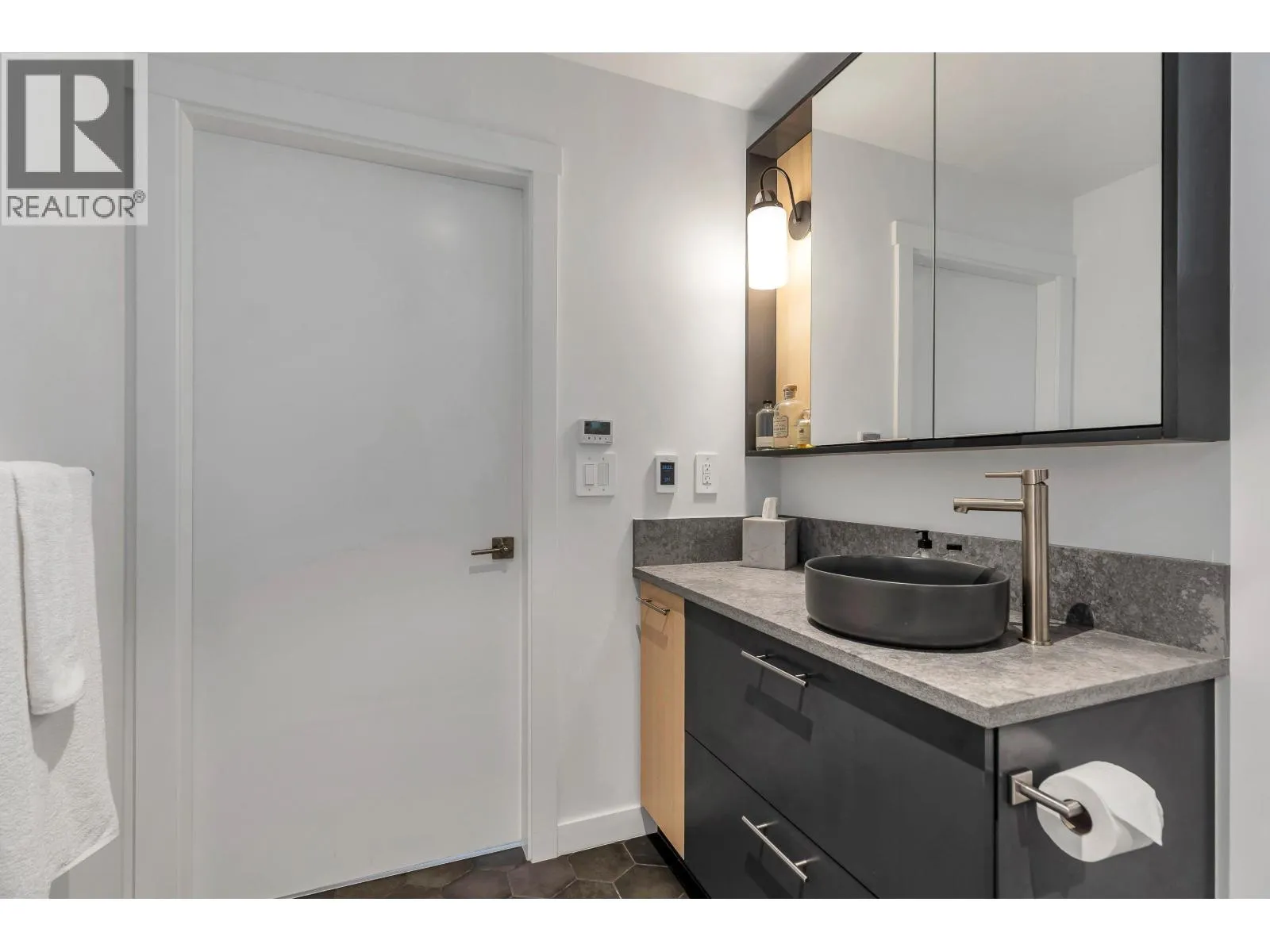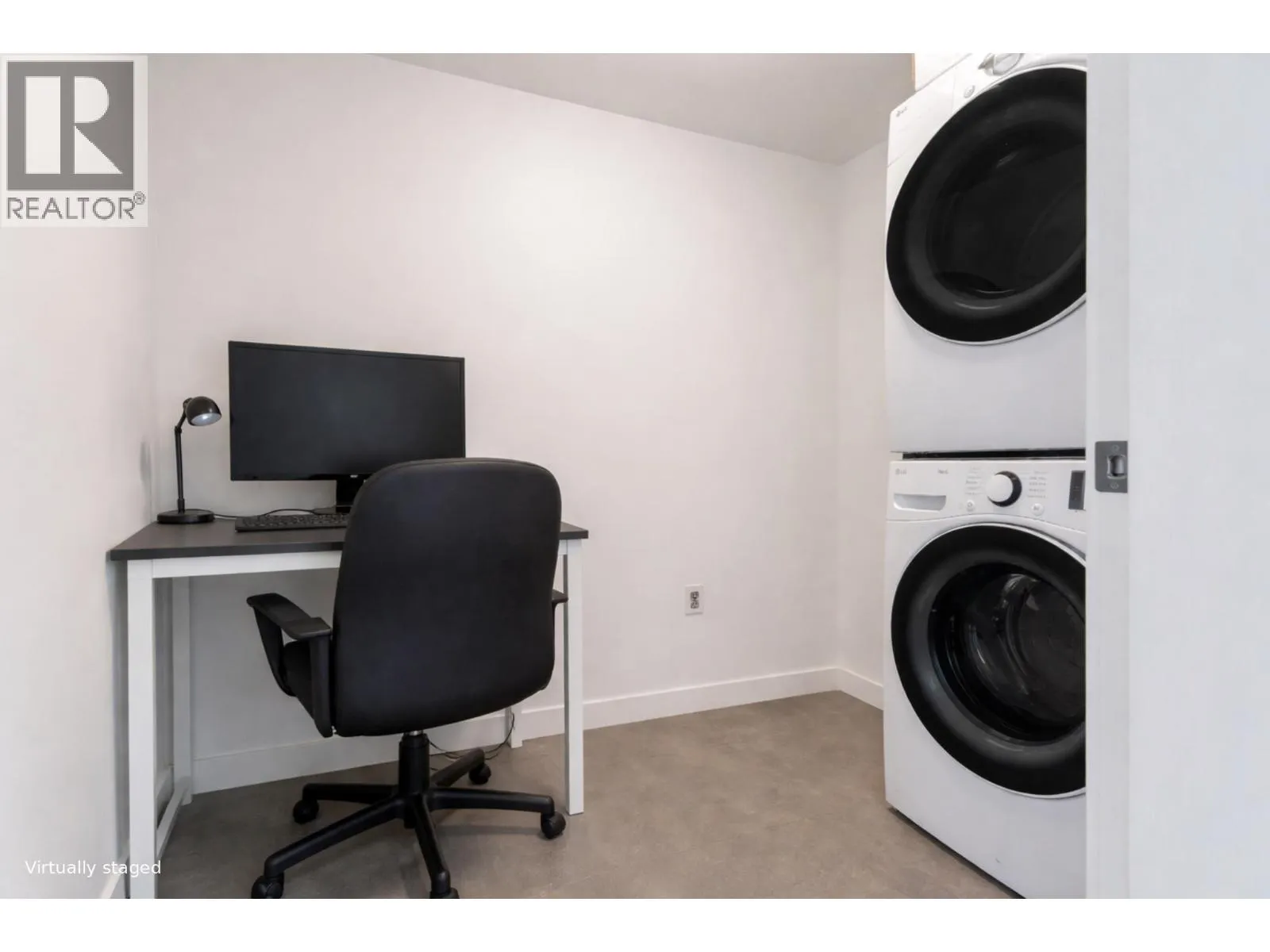 A gorgeous unit in Southlands District Flats - built in 2023 this one bedroom/one bathroom unit overlooks quiet landscaped street from the large balcony! Intelligent layout, the 9' ceiling add an airy feel plus lots of windows, quartz countertops in kitchen (Fischer Paykel appliances, gas range). Wide plank flooring and tile are easy to care for. Large balcony (10'x 8') is east exposed for sunny mornings. This community is steps to Boundary Bay beach, shops and restaurants. Common area garden/benches in the center courtyard. Apartment living reimagined in a master planned community! Insuite storage, one parking stall Total 684 sq.ft. of living space. (id:27476)