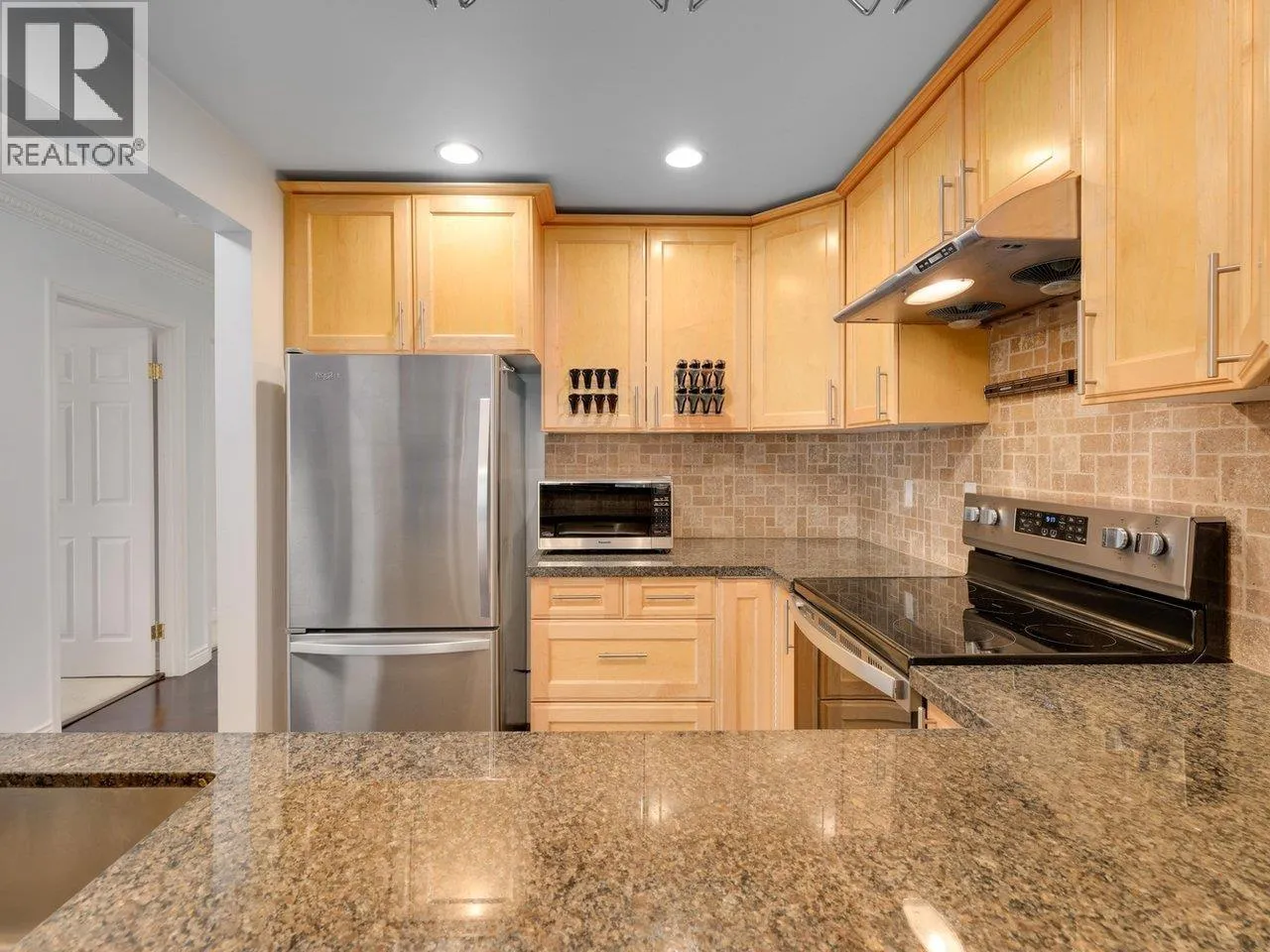 Renovated corner unit in Garden Place! This bright and airy home features a sun-filled enclosed balcony seamlessly integrated into the living and dining area, creating valuable additional living space. The stunning kitchen showcases granite countertops, solid wood cabinetry, and newer appliances. Extensive updates throughout include modern hardwood flooring, crown moldings throughout, and updated bathrooms (oversized shower cabinet plus a 2-piece ensuite with granite counters), built in dining room cabinetry and built in bed in bedroom. Central but quiet location! Walking distance to Tsawwassen town centre shopping, parks, restaurants, transit and easy access to highway 17. Easy to view! (id:27476)