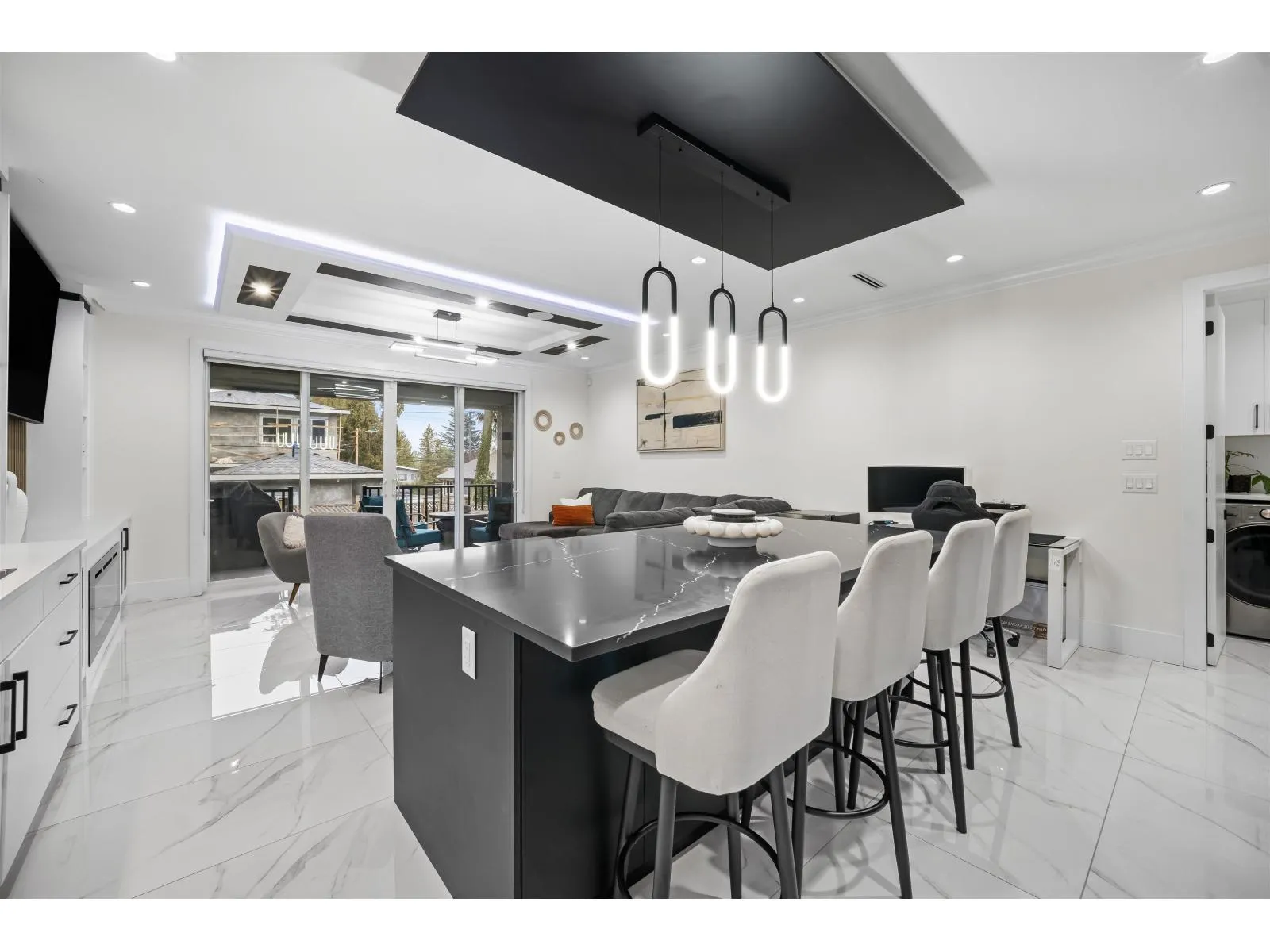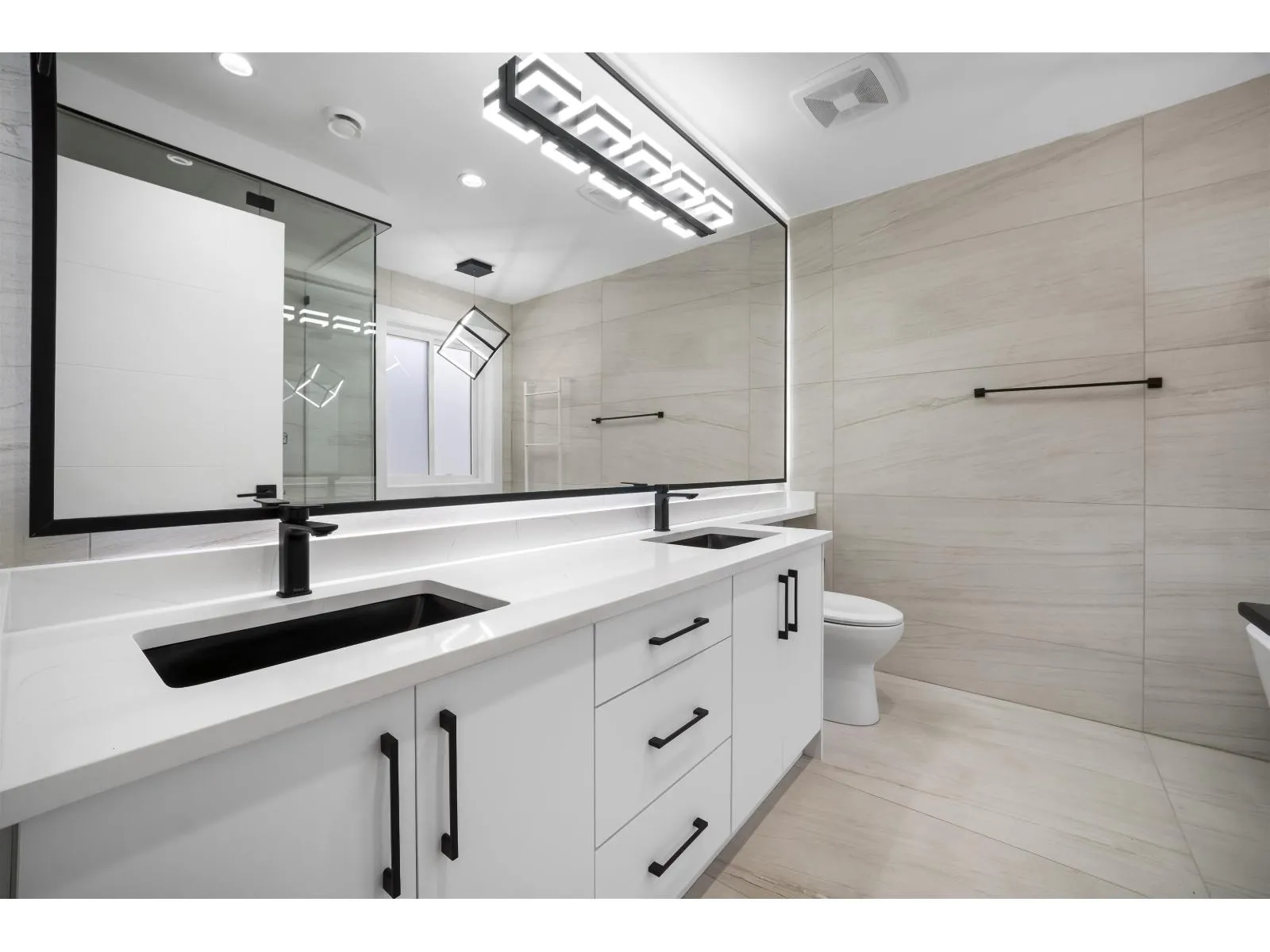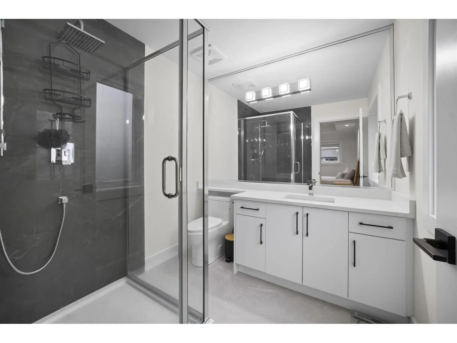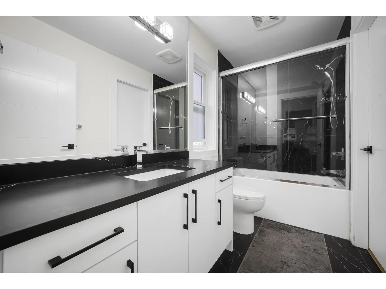 The one you've been waiting for. Elegant brand new contemporary corner home on a quiet cul-de-sac, offering nearly 3,800 sq ft on a 5,250 sq ft lot. This 2-storey with basement features 8 bedrooms and 7 custom bathrooms, including a main floor bedroom. Main floor boasts a modern kitchen with spice kitchen, stainless appliances, built-in oven/microwave, designer backsplashes, and large island. Upstairs has 4 spacious bedrooms, a lounge with electric fireplace, and a primary with walk-in closet. Radiant in-floor heating, AC, Epoxy Garage flooring, Two EV Chargers. Two mortgage helpers (2-bed + 1-bed suites). (id:27476)