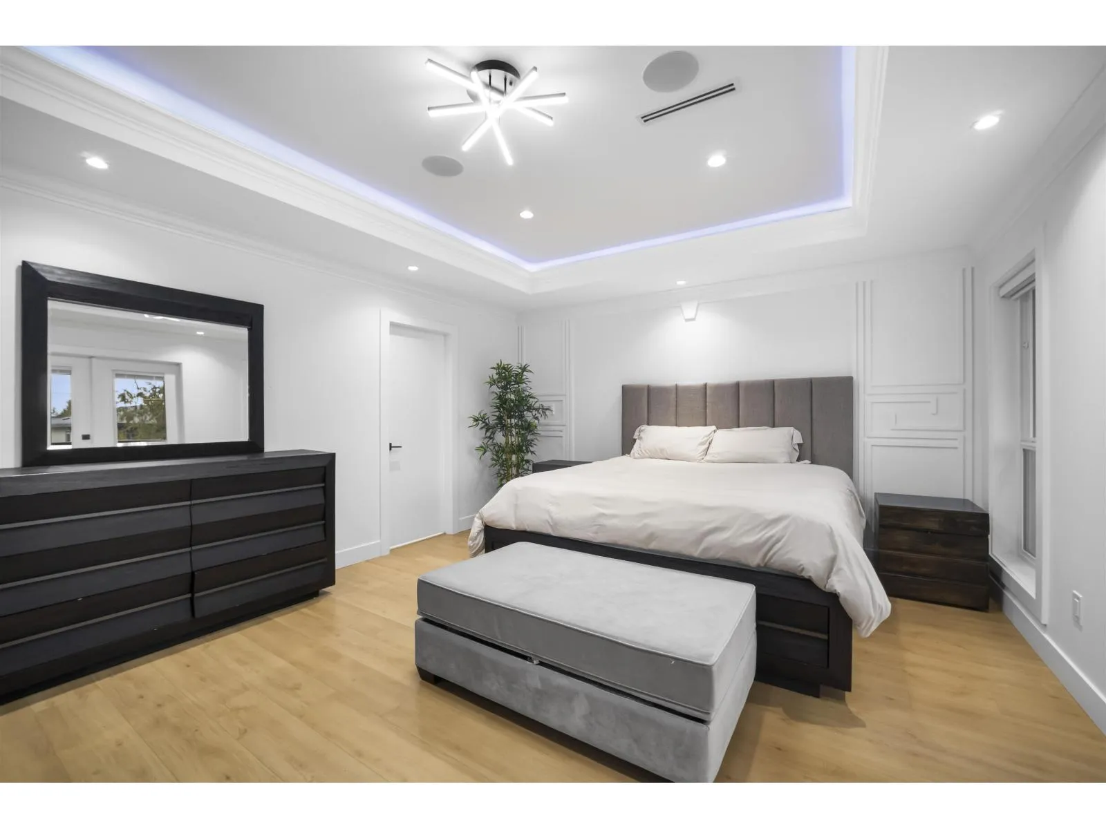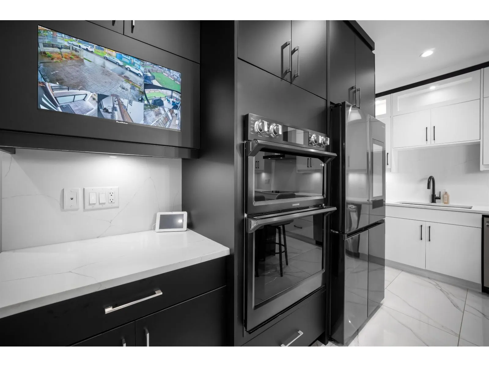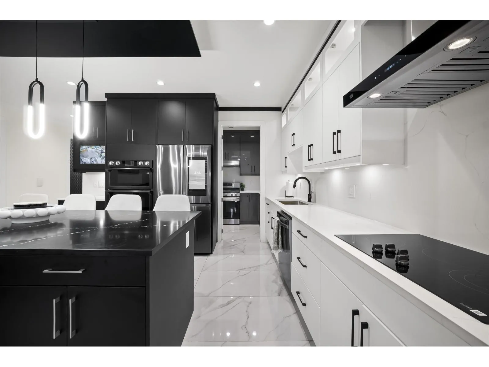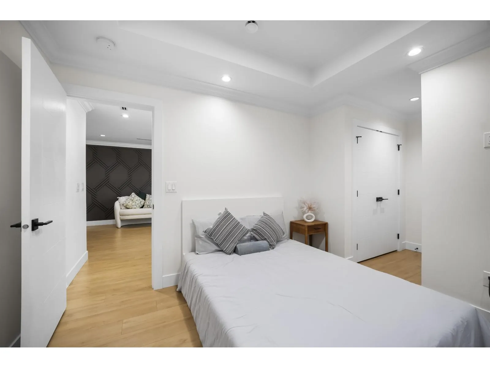 The one you've been waiting for. Elegant brand new contemporary corner home on a quiet cul-de-sac, offering nearly 3,800 sq ft on a 5,250 sq ft lot. This 2-storey with basement features 8 bedrooms and 7 custom bathrooms, including a main floor bedroom. Main floor boasts a modern kitchen with spice kitchen, stainless appliances, built-in oven/microwave, designer backsplashes, and large island. Upstairs has 4 spacious bedrooms, a lounge with electric fireplace, and a primary with walk-in closet. Radiant in-floor heating, AC, Epoxy Garage flooring, Two EV Chargers. Two mortgage helpers (2-bed + 1-bed suites). (id:27476)