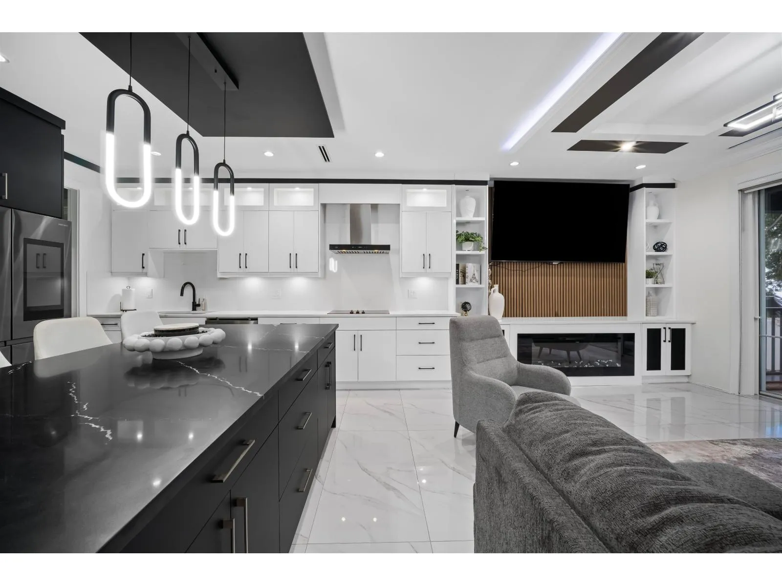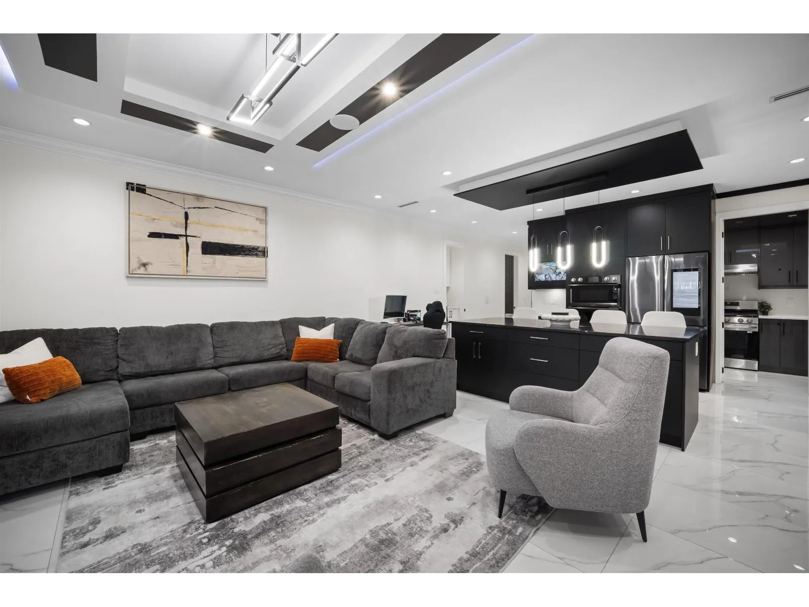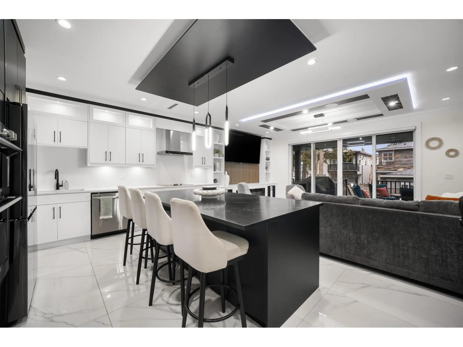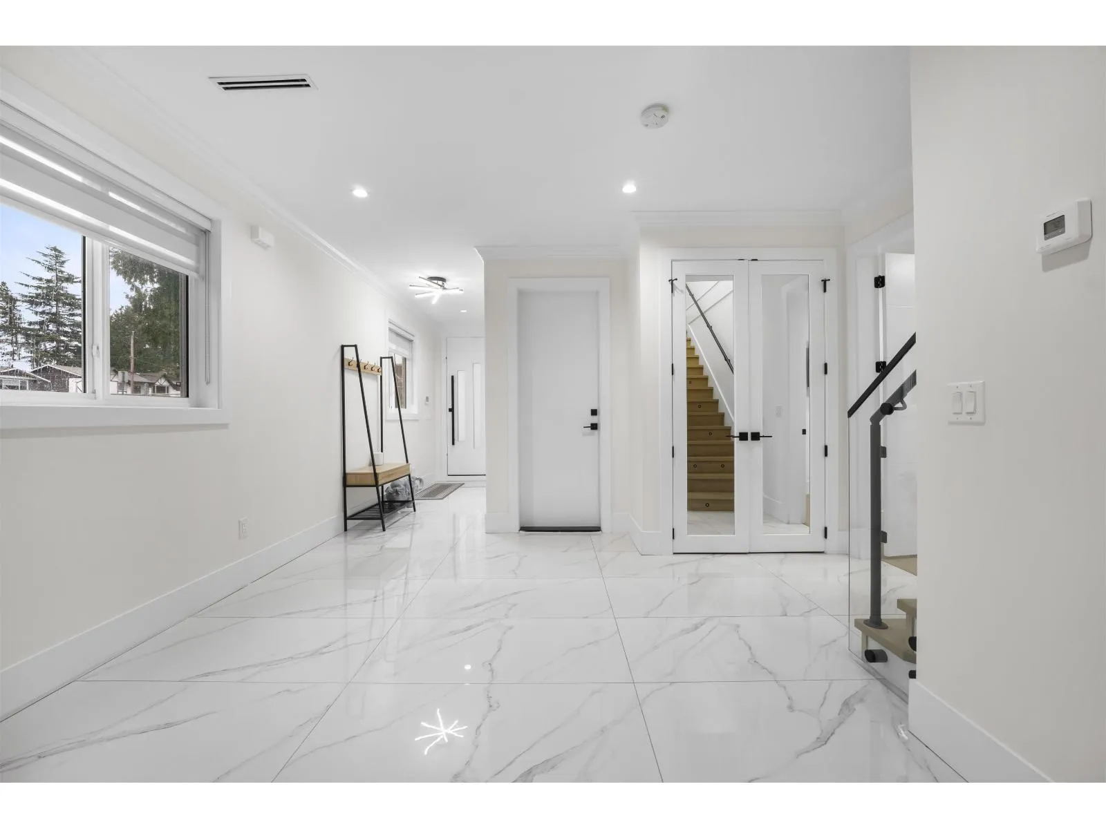 The one you've been waiting for. Elegant brand new contemporary corner home on a quiet cul-de-sac, offering nearly 3,800 sq ft on a 5,250 sq ft lot. This 2-storey with basement features 8 bedrooms and 7 custom bathrooms, including a main floor bedroom. Main floor boasts a modern kitchen with spice kitchen, stainless appliances, built-in oven/microwave, designer backsplashes, and large island. Upstairs has 4 spacious bedrooms, a lounge with electric fireplace, and a primary with walk-in closet. Radiant in-floor heating, AC, Epoxy Garage flooring, Two EV Chargers. Two mortgage helpers (2-bed + 1-bed suites). (id:27476)