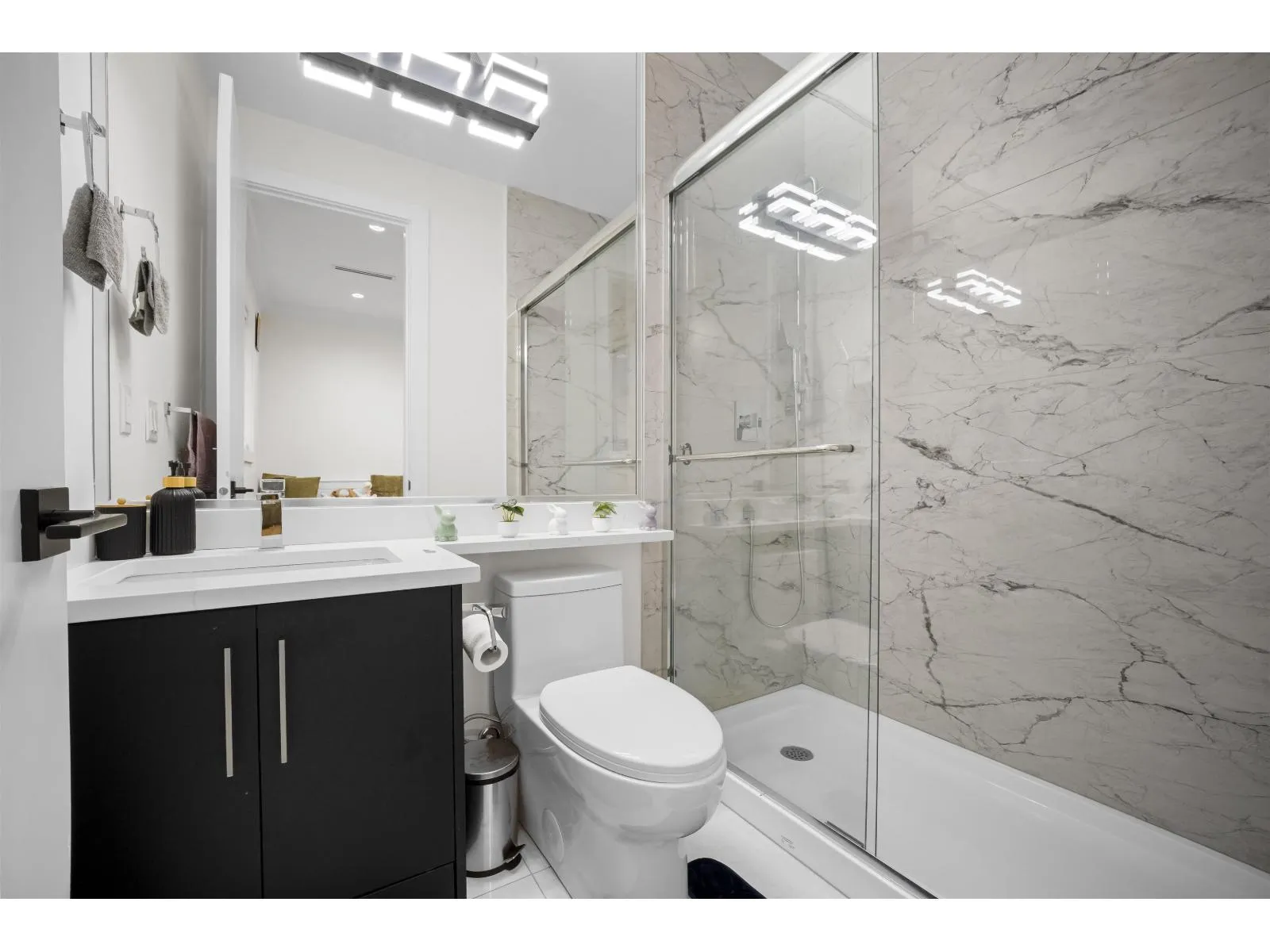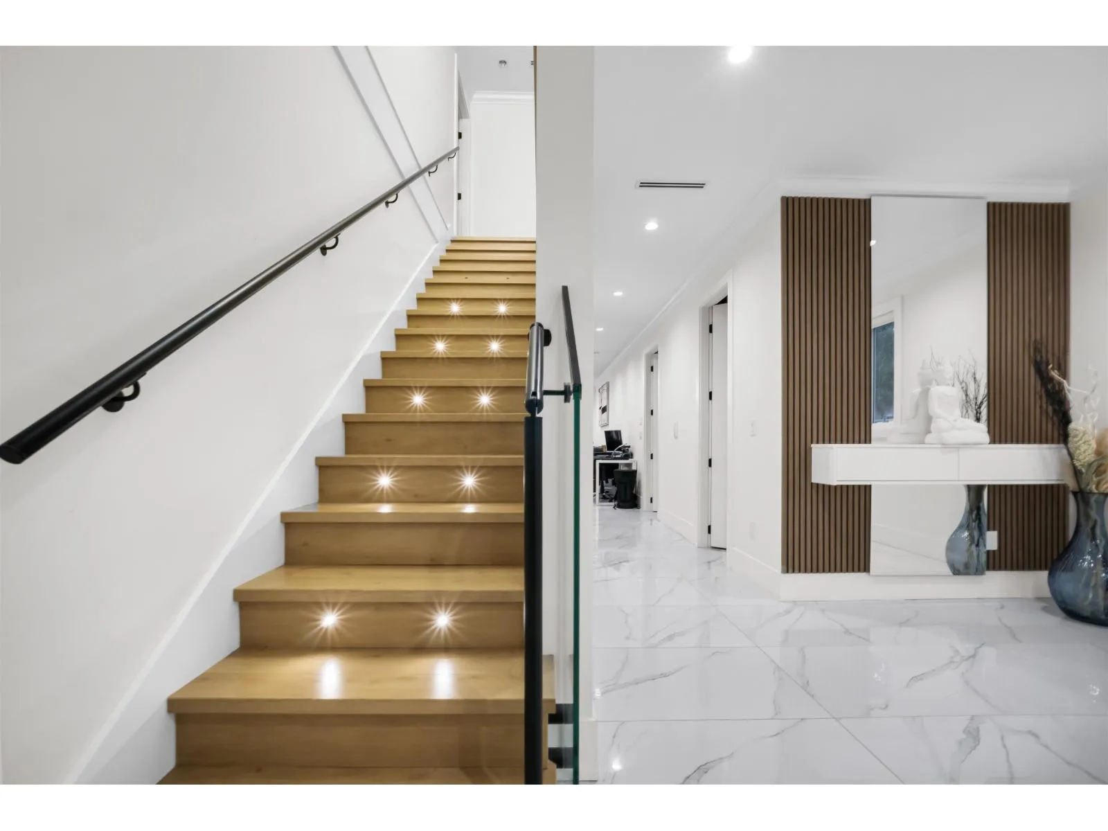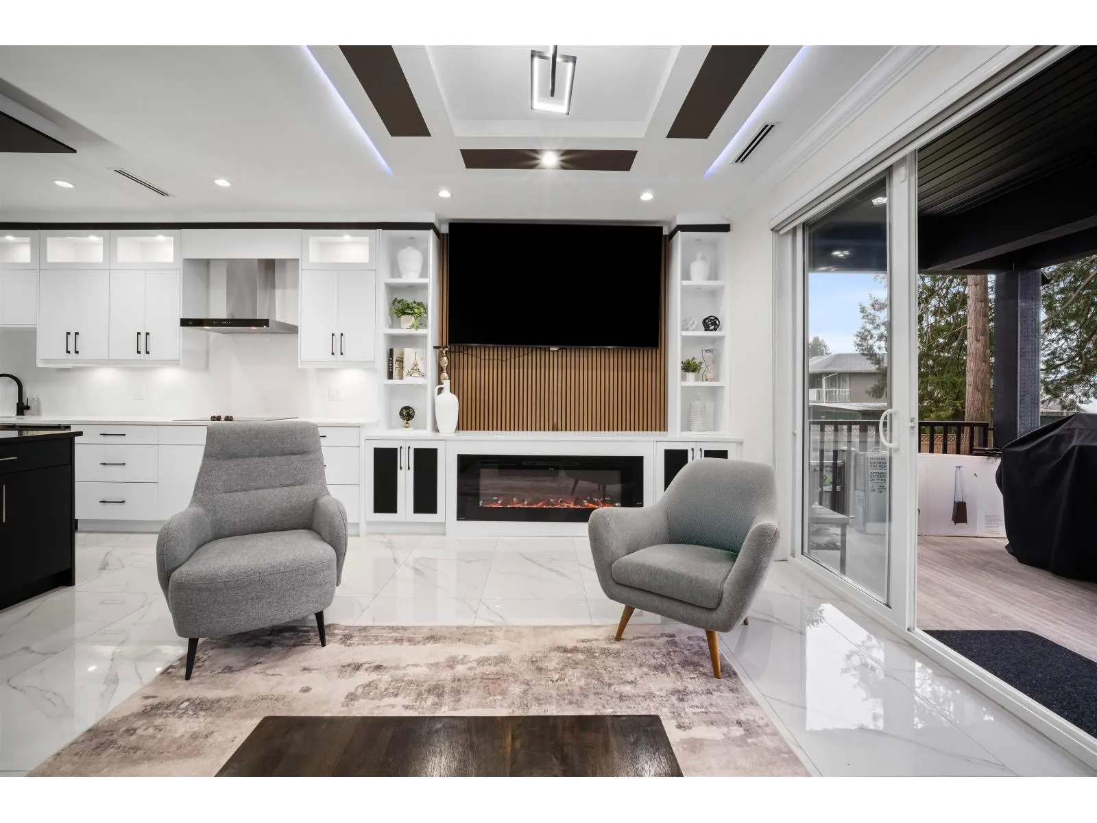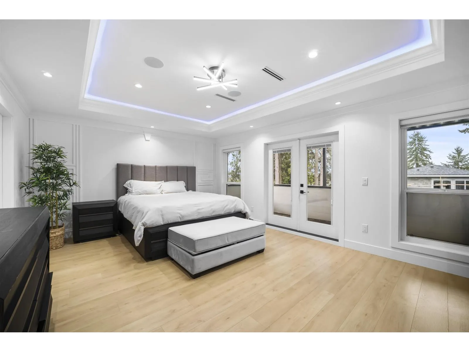 The one you've been waiting for. Elegant brand new contemporary corner home on a quiet cul-de-sac, offering nearly 3,800 sq ft on a 5,250 sq ft lot. This 2-storey with basement features 8 bedrooms and 7 custom bathrooms, including a main floor bedroom. Main floor boasts a modern kitchen with spice kitchen, stainless appliances, built-in oven/microwave, designer backsplashes, and large island. Upstairs has 4 spacious bedrooms, a lounge with electric fireplace, and a primary with walk-in closet. Radiant in-floor heating, AC, Epoxy Garage flooring, Two EV Chargers. Two mortgage helpers (2-bed + 1-bed suites). (id:27476)
