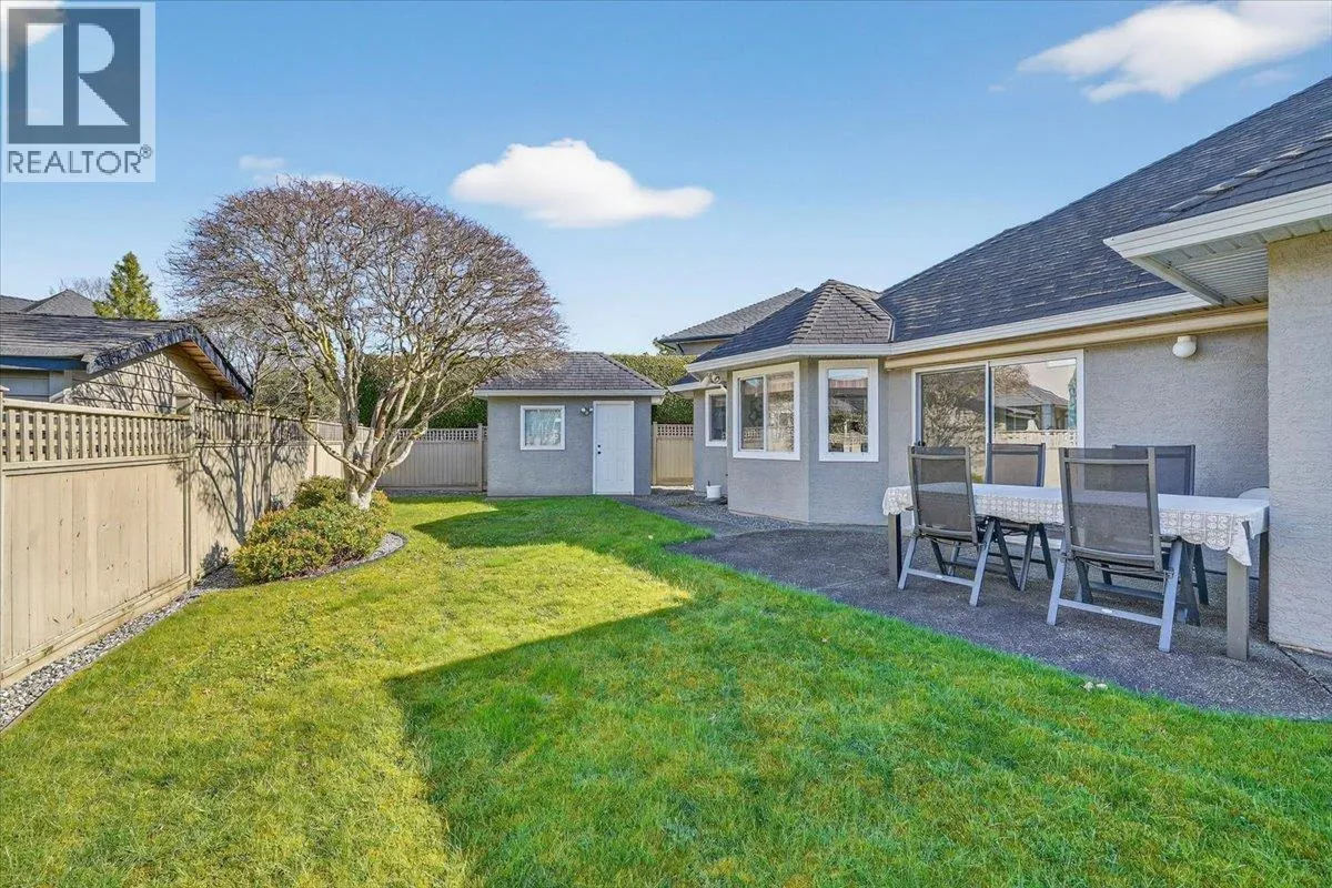 Beautifully maintained 1,818 square ft rancher tucked away on a private and desirable cul-de-sac in Ladner's sought-after Marina Gardens community. This spacious 3 bed, 2 full bath home offers a sprawling 1 storey layout with high ceilings in the living room, cross-hall dining, & an open concept kitchen and family room designed for comfortable everyday living. Thoughtful updates include wide plank flooring, new living room windows (2025), appliances (2020), and on-demand hot water system. The bright family area opens to a private, northeast-facing backyard with mature landscaping, a retractable power awning over the patio, and a separate powered shed. Ideally located just minutes to Neilson Grove Elementary, golf course, scenic trails, marina, boat launch and parks. (id:27476)