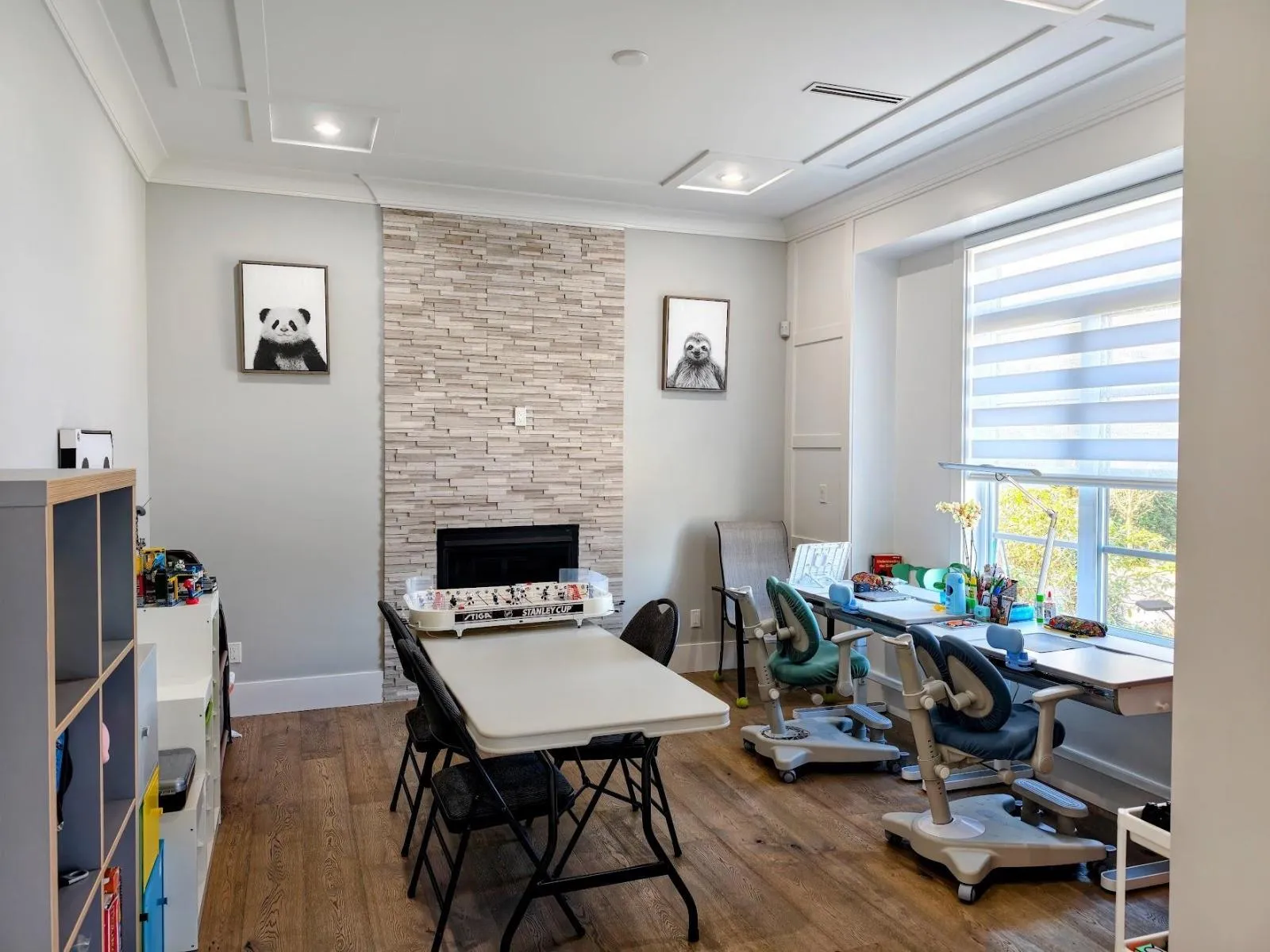 Situated in the heart of Sunshine Hills Woods. This exquisitely built 5000 sqft home offers 6 spacious bedrooms and 5 baths. Featuring a grand vaulted entrance, an elegant living room, a massive family room, all with a modern designer touch. The kitchen features quartz countertops, a sprawling island, and custom cabinetry with integrated lighting. This home also has a secondary wok kitchen for more intense style of cooking. The lower level is built for fun, featuring a dedicated media room and a recreation area with a full wet bar. Stay comfortable year-round with radiant heating, central air conditioning and HRV. 10 minutes walk to elementary and secondary. (id:27476)