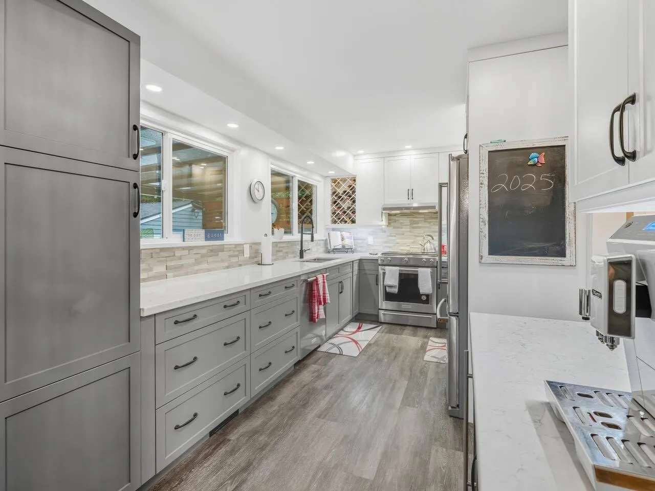 Welcome to this beautifully updated family home, where modern comfort meets effortless living. With over $200,000 in renovations completed in recent years, this is truly a move-in-ready opportunity-nothing to do but settle in and enjoy. The home features a stunning new kitchen, fully renovated bathroom, updated windows, central air conditioning, refinished hardwood floors, and two new gas fireplace inserts. New appliances throughout add both style and everyday convenience. Step outside to your private backyard retreat, complete with expansive decks designed for year-round enjoyment. Host gatherings under the covered barbecue area or unwind on the sun-filled lower deck-perfect for relaxing evening dinners. The professionally landscaped yard includes in-ground irrigation, newer fencing. (id:27476)
