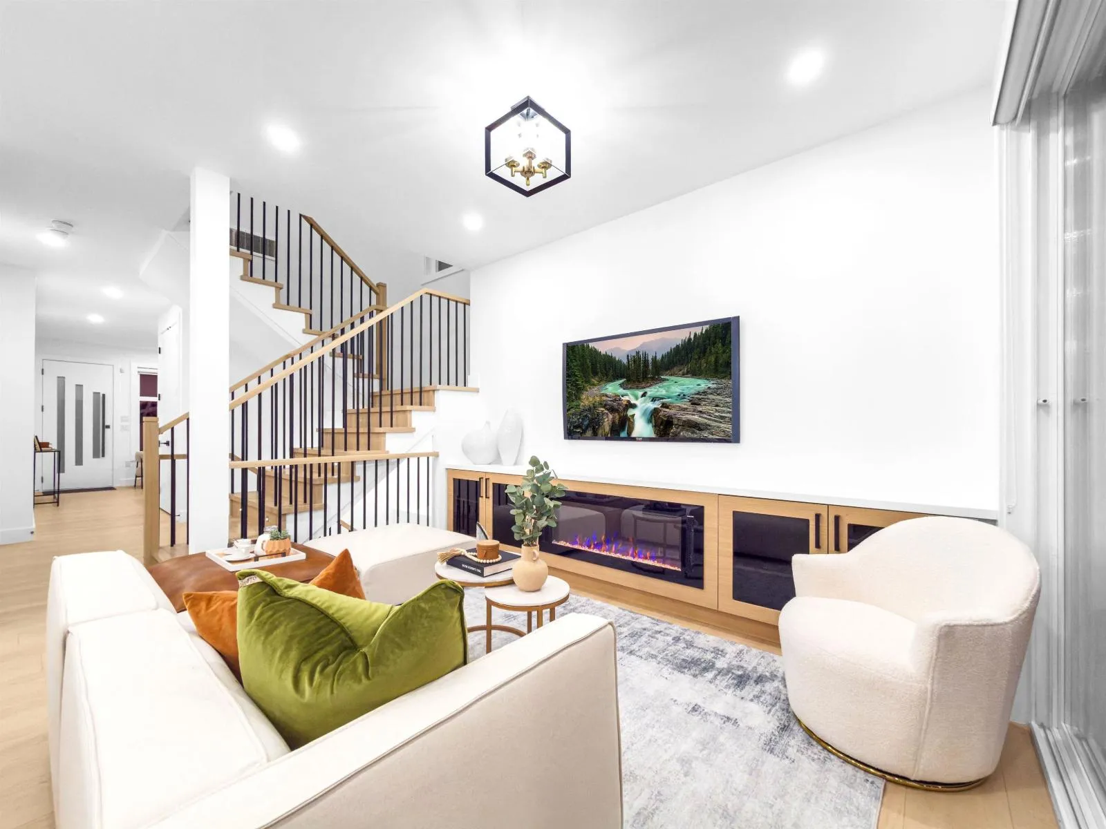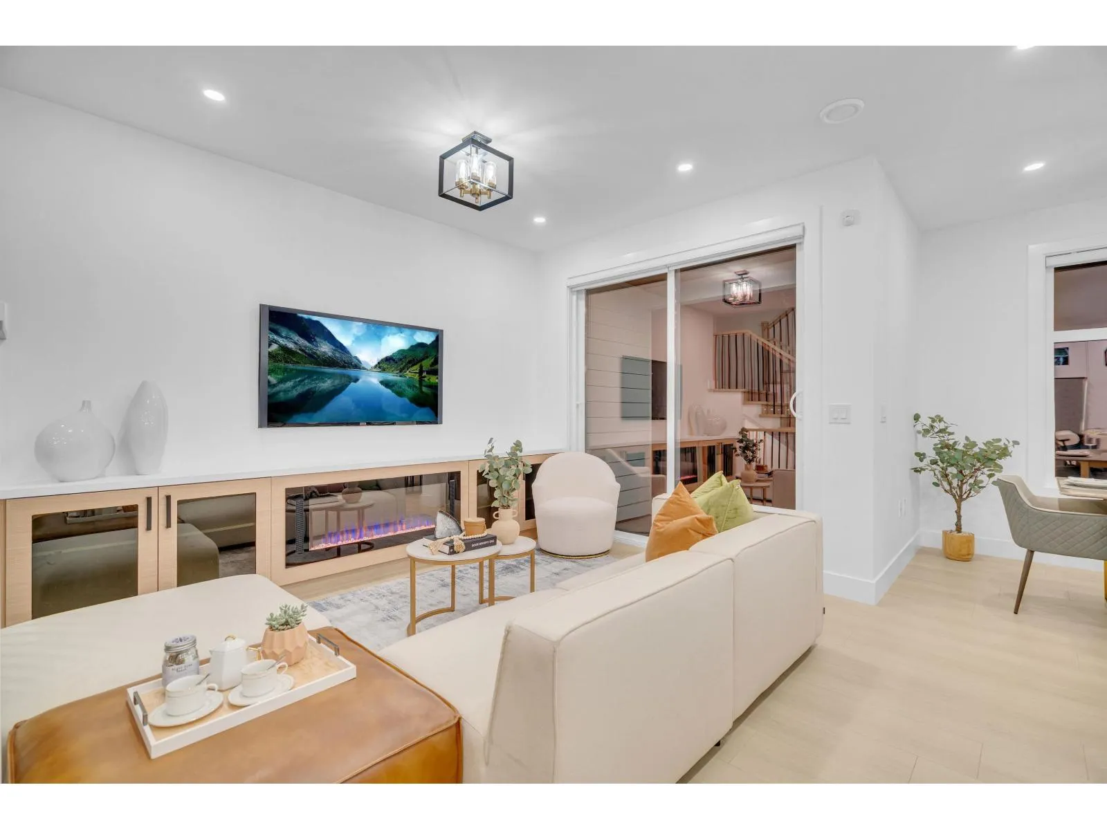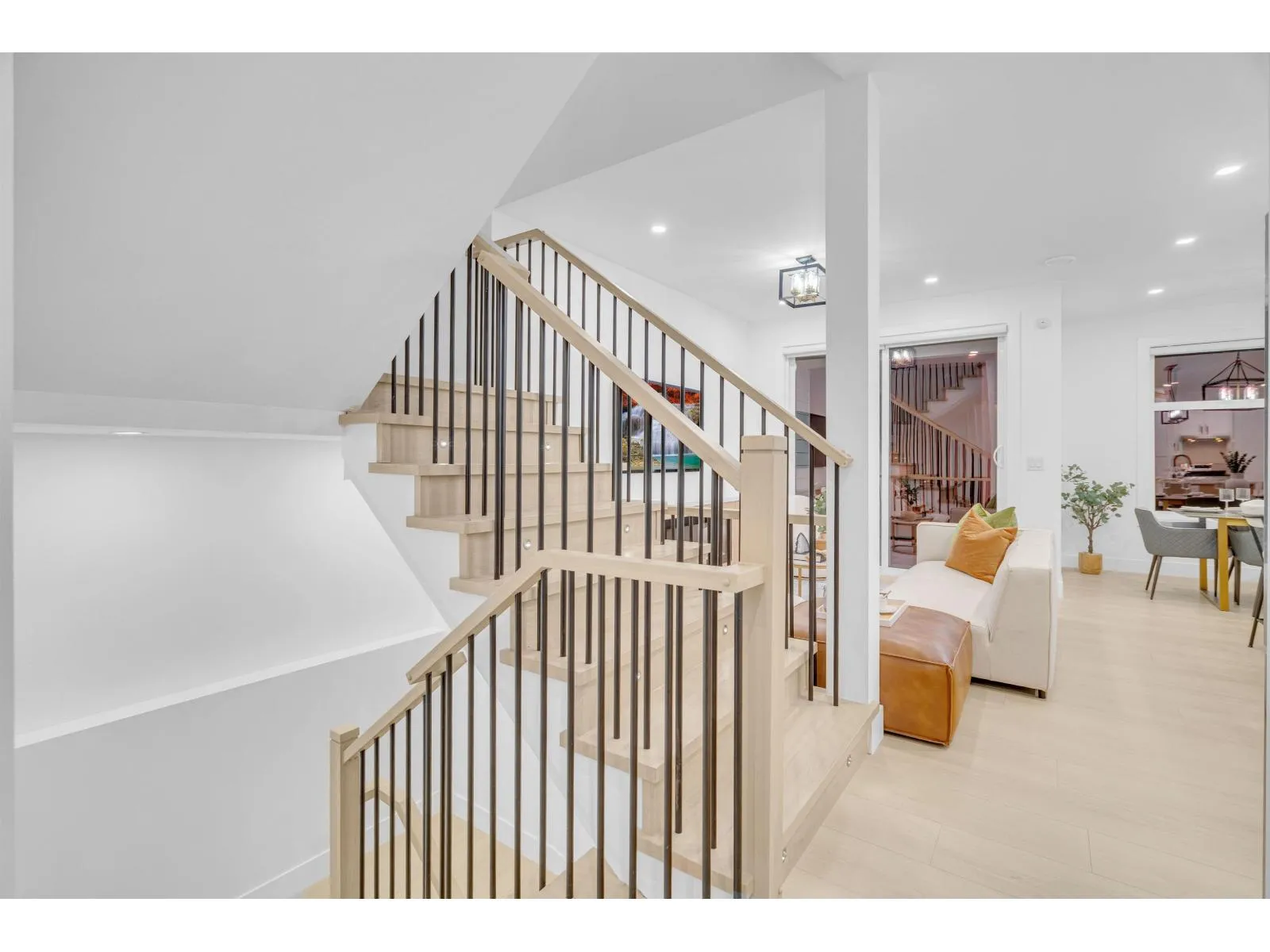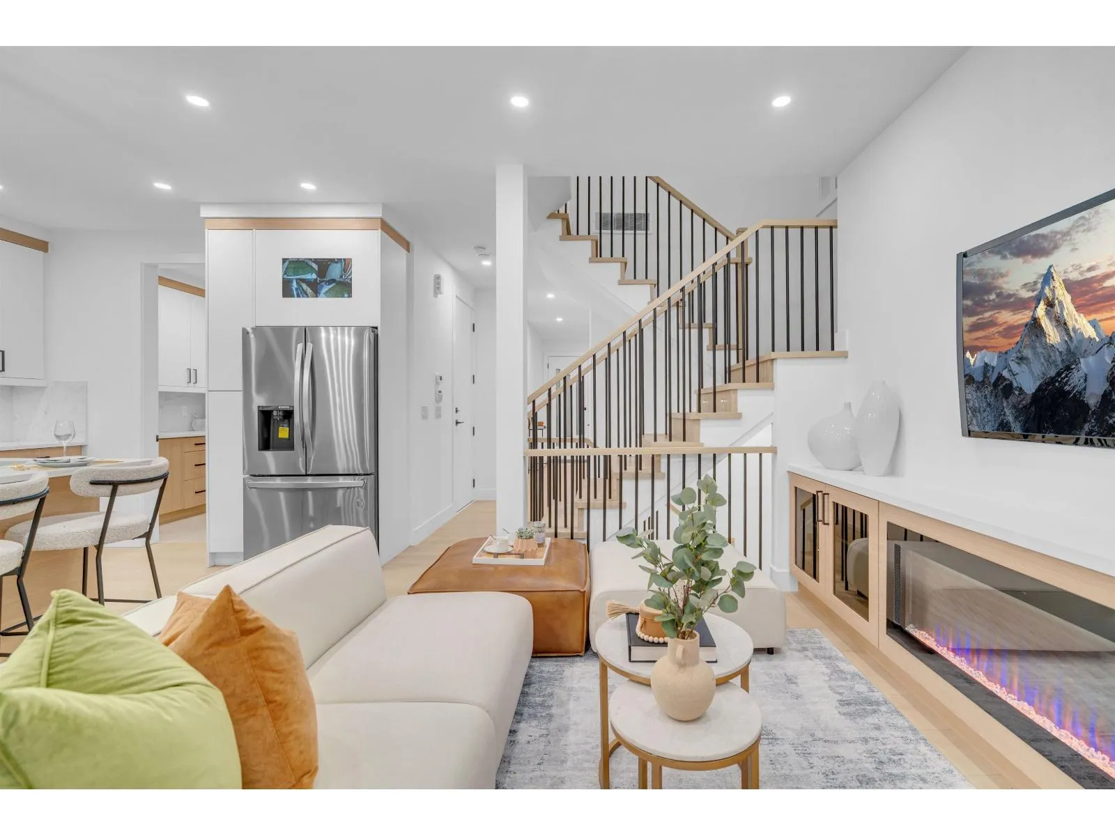This well-designed half duplex offers modern living across a thoughtful, functional layout. The main floor features an open-concept design with a full kitchen, spice kitchen, full bathroom and bright living areas - great for everyday family life and entertaining. Upstairs includes 3 generously sized bedrooms and a primary suite complete with a walk-in closet, private ensuite and a covered deck. The basement offers a self-contained legal suite, perfect for extended family or as a mortgage helper with a recreation room with a full separate bathroom. Additional highlights include a private garage and quality finishes throughout. Located close to schools, parks, shopping, and transit - a solid choice for families and investors alike. OPEN HOUSE March 28 & 29 | 2-4 PM (id:27476)