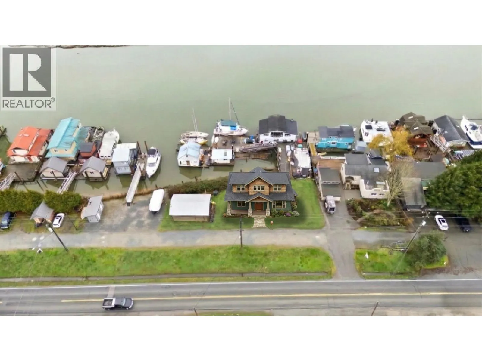 Unique opportunity to own WATERFRONT in Ladner-endless views year round - have your boat moored in front of your home! Only 30 minutes from Vancouver. New OCP for Ladner allows for potential to re-zone from I1S to MUPGE (Mixed use Port Guichon East) single family, with dock, float home and boat moorage-subject to Delta city approval. Contact LS for package of info including foreshore lease. Total 6076 sq.ft. lot (132'frontage x 90'depth). Seller has not needed to dredge-buyer to verify. To be sold in conjunction with 4505 River Rd. Current structure on property is storage, docks and ramps to stay. Phase 1 Environmental 2025 complete. The VIEWS are amazing-unobstructed mountain and water landscape. (id:27476)