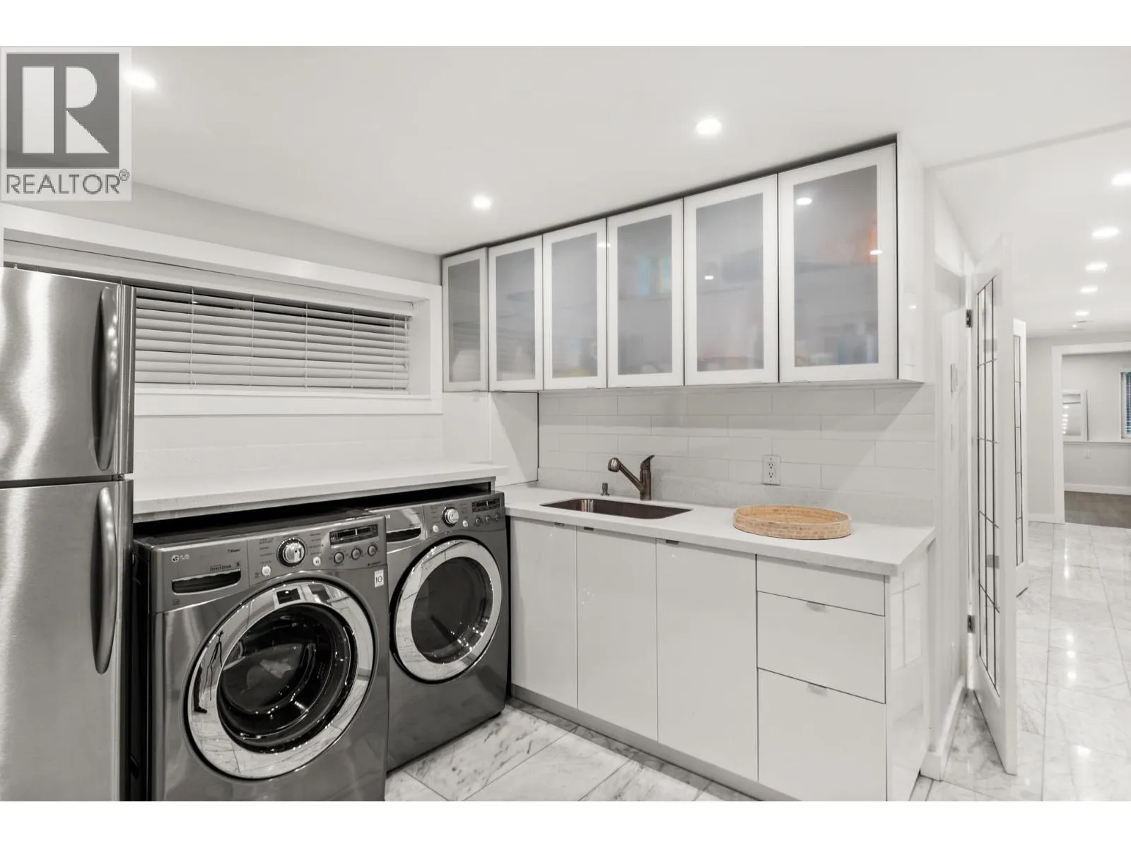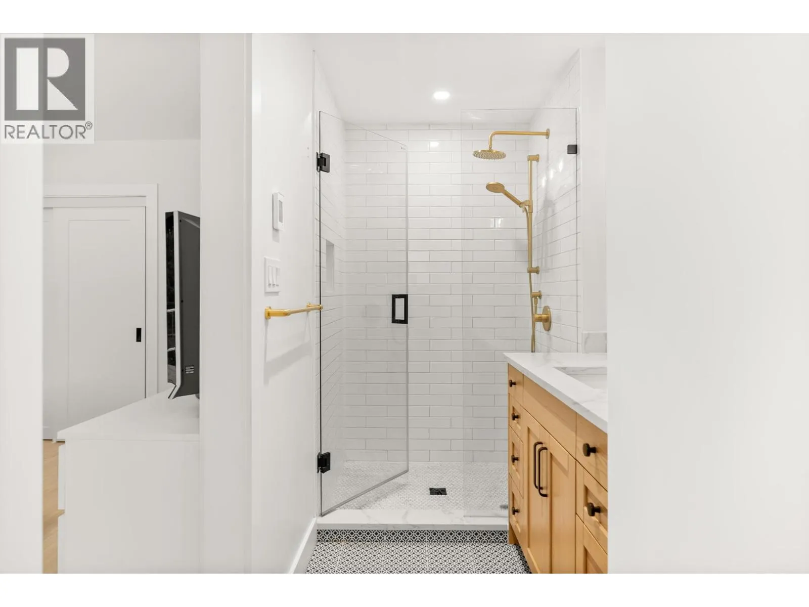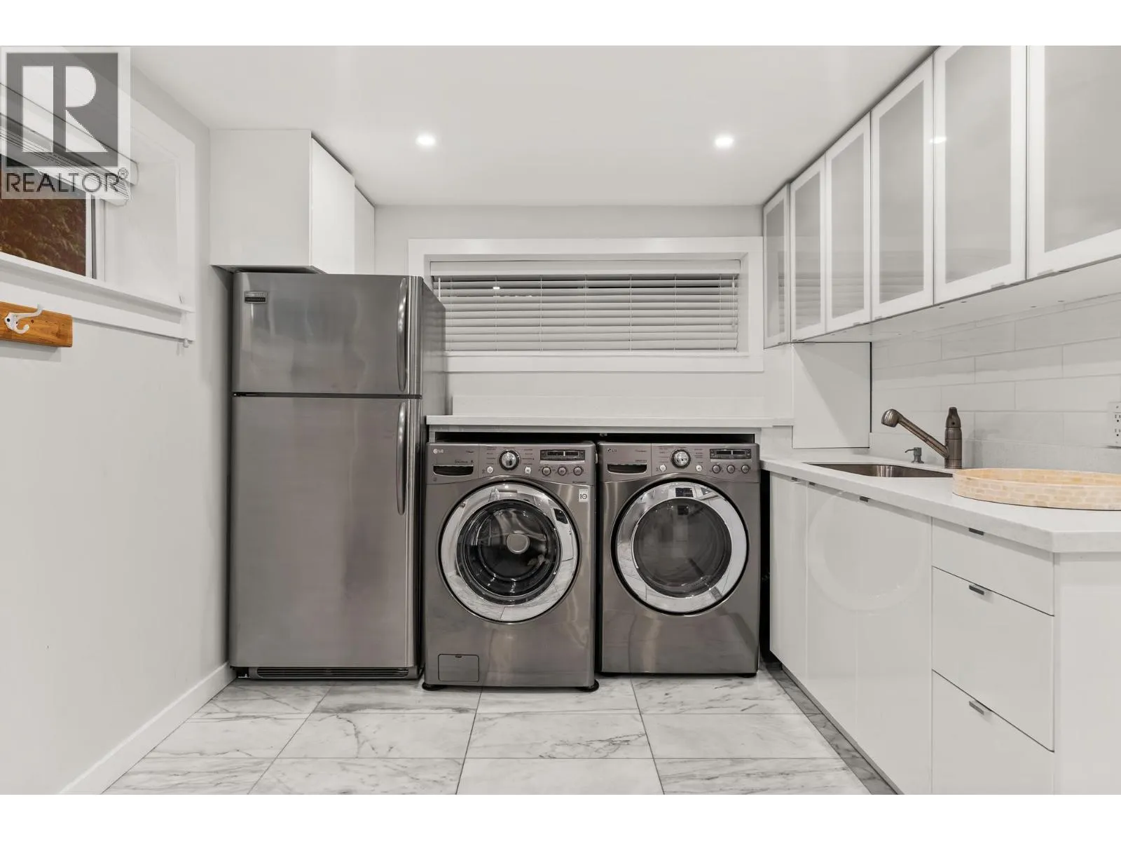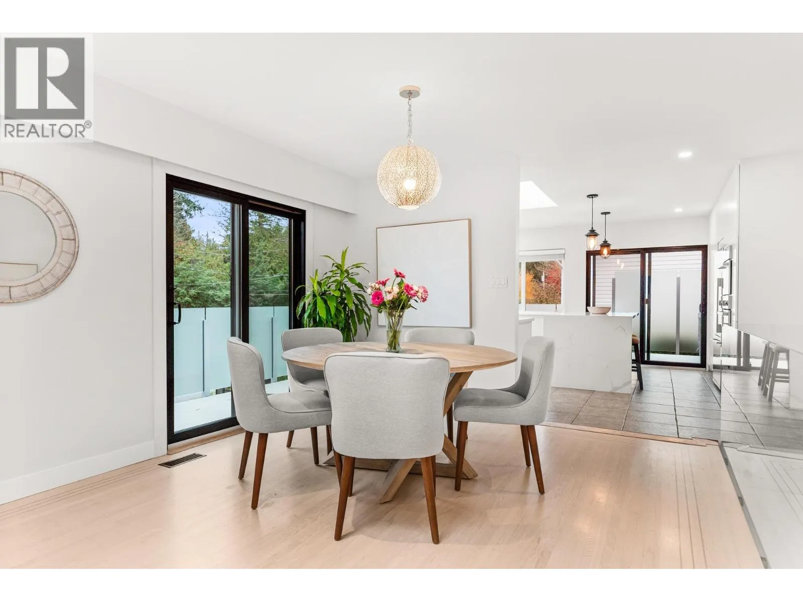 This stunning Village home delivers instant WOW with a dramatic marble floor-to-ceiling gas fireplace & a sleek designer kitchen featuring Bosch & Fisher & Paykel appliances, quartz accents, & a striking waterfall island. Large windows bring in natural light throughout. Upstairs offers 3 bedrooms & 2 beautifully renovated bathrooms, including a primary retreat opening to an expansive 966 sq. ft. deck. A sunny side deck W/opaque glass railings extends the living space while capturing peekaboo ocean & White Rock views. The lower level incudes a bedroom, den, family room, sauna, & spa-like bath w/heated marble floors - ideal for a suite. Double garage w/epoxy floors & EV charger. Private yard with mature gardens & powered shed. Must see! Book your private showing now! (id:27476)