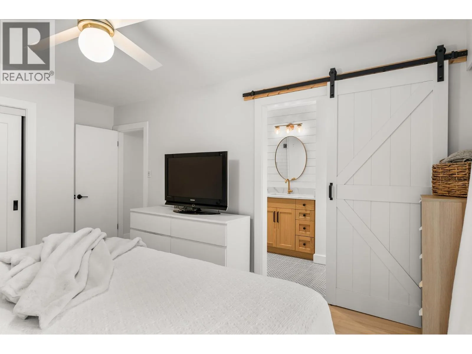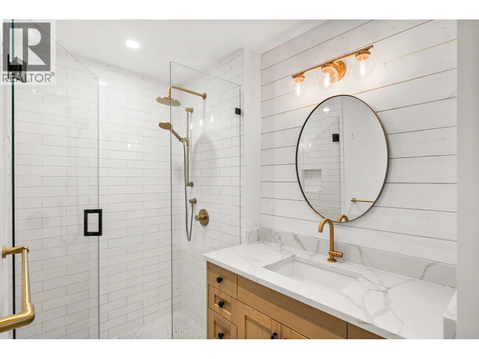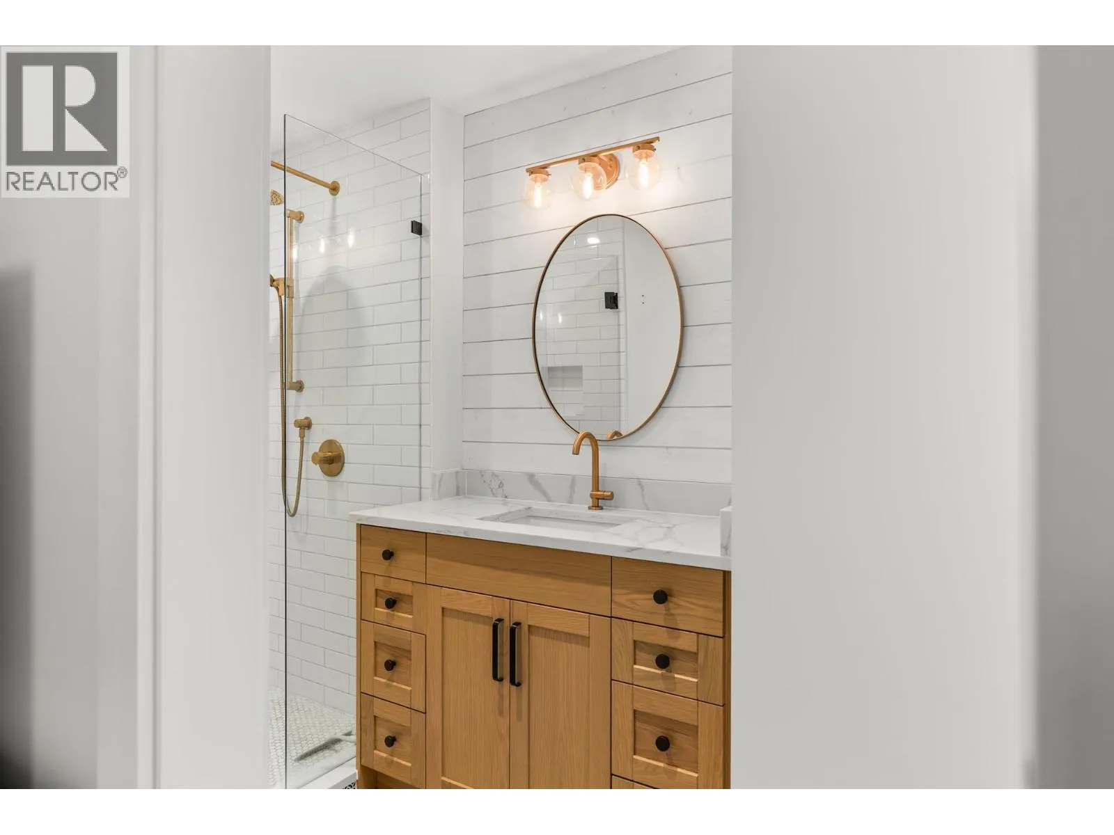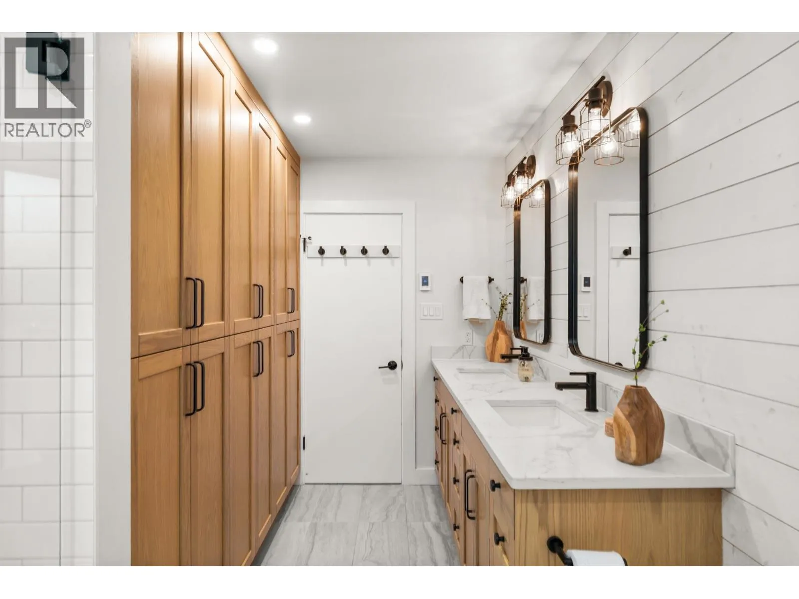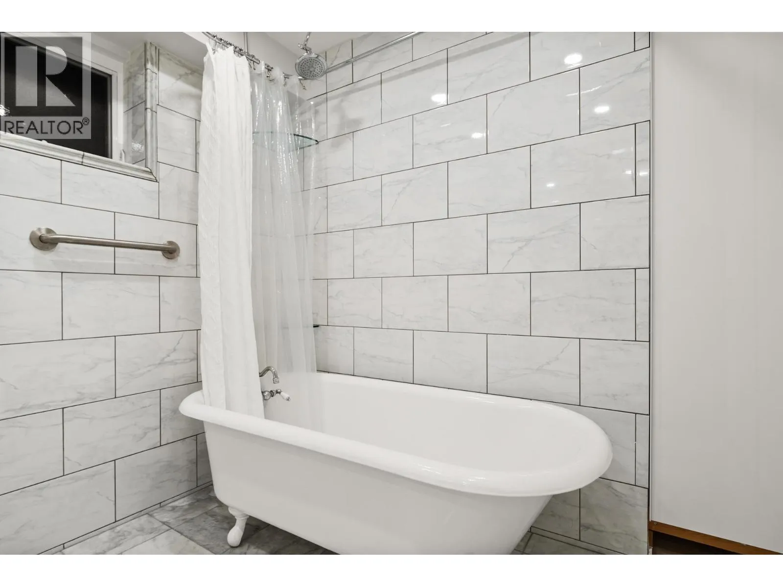 This stunning Village home delivers instant WOW with a dramatic marble floor-to-ceiling gas fireplace & a sleek designer kitchen featuring Bosch & Fisher & Paykel appliances, quartz accents, & a striking waterfall island. Large windows bring in natural light throughout. Upstairs offers 3 bedrooms & 2 beautifully renovated bathrooms, including a primary retreat opening to an expansive 966 sq. ft. deck. A sunny side deck W/opaque glass railings extends the living space while capturing peekaboo ocean & White Rock views. The lower level incudes a bedroom, den, family room, sauna, & spa-like bath w/heated marble floors - ideal for a suite. Double garage w/epoxy floors & EV charger. Private yard with mature gardens & powered shed. Must see! Book your private showing now! (id:27476)