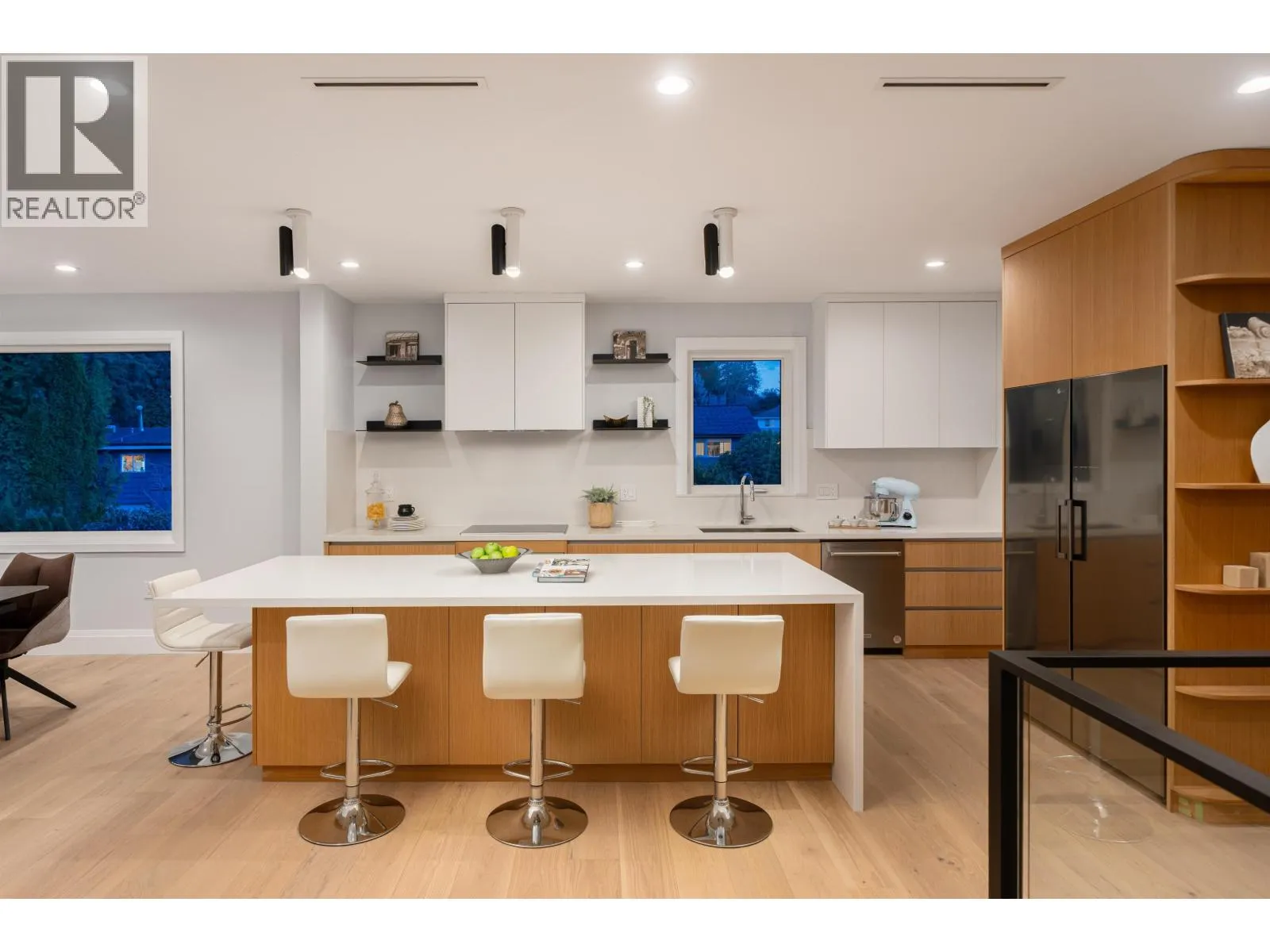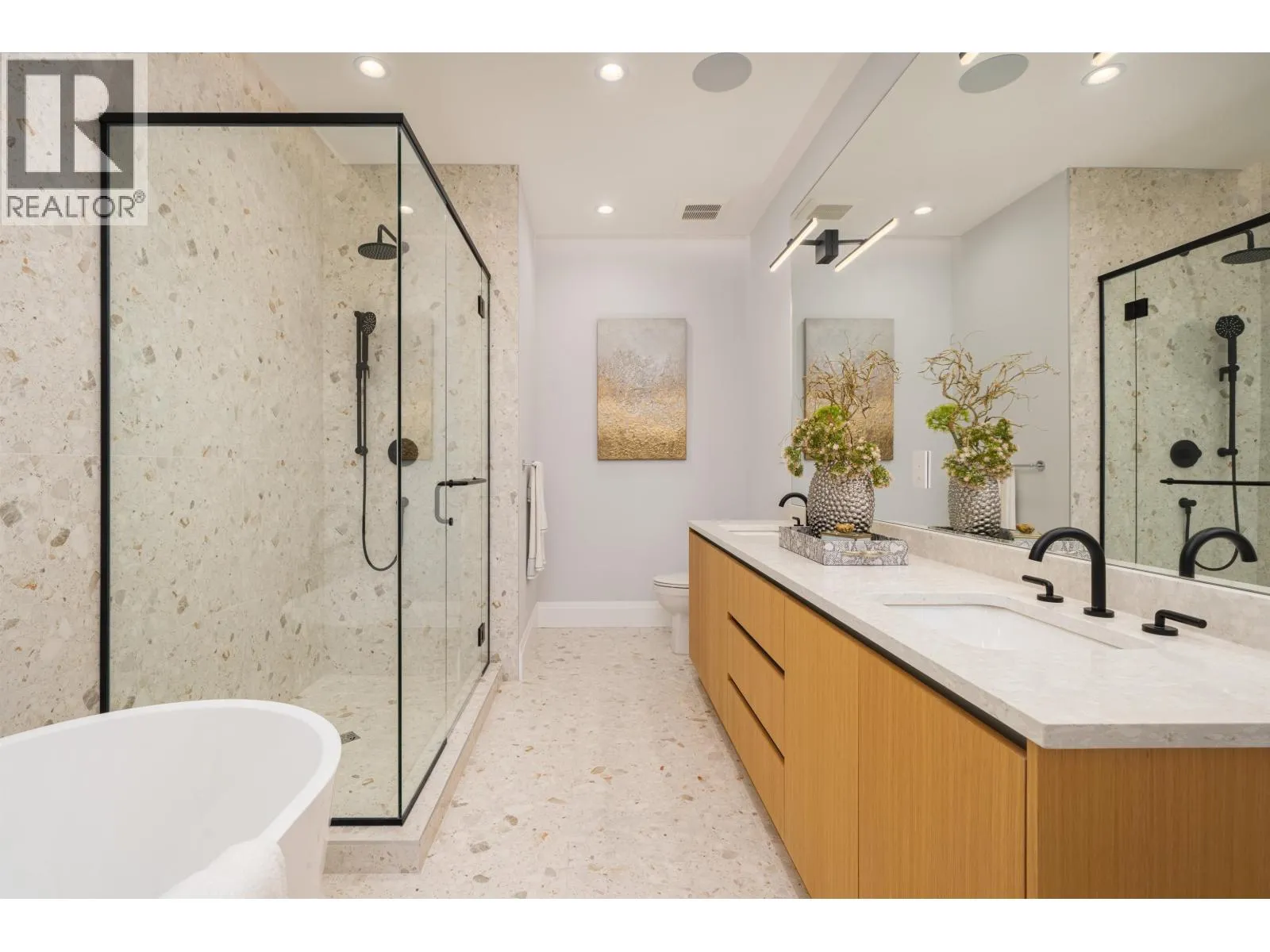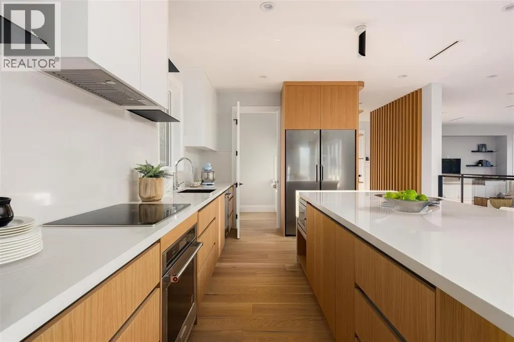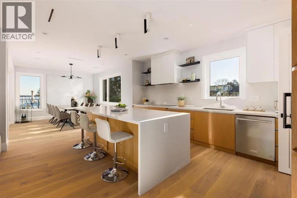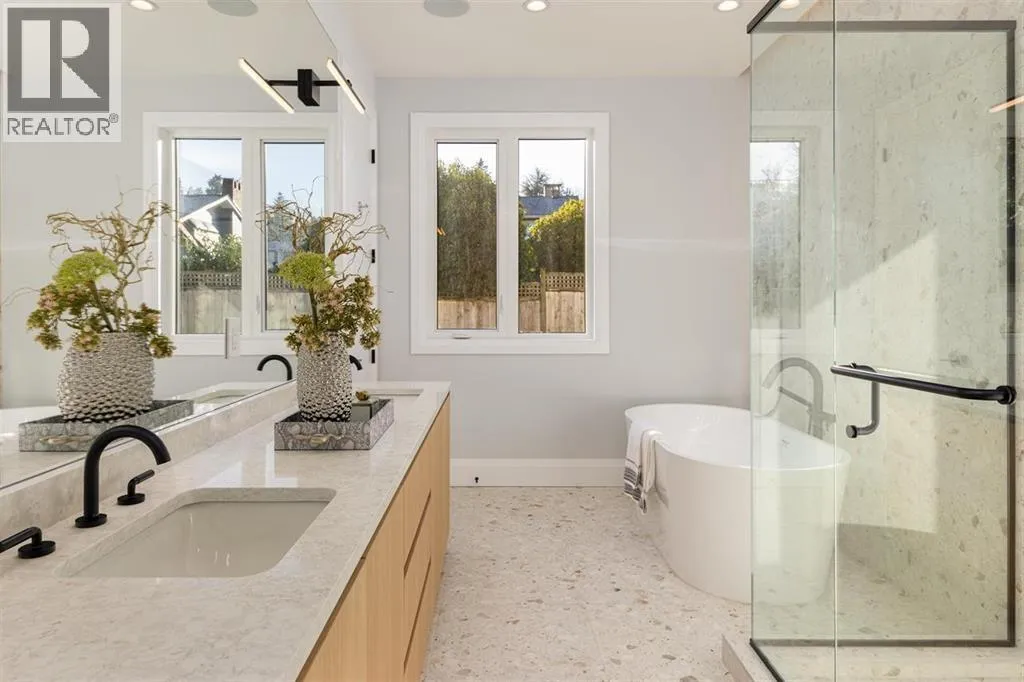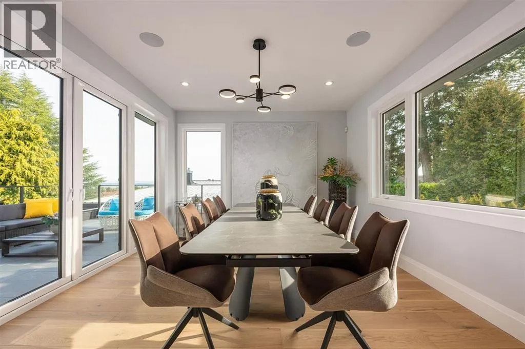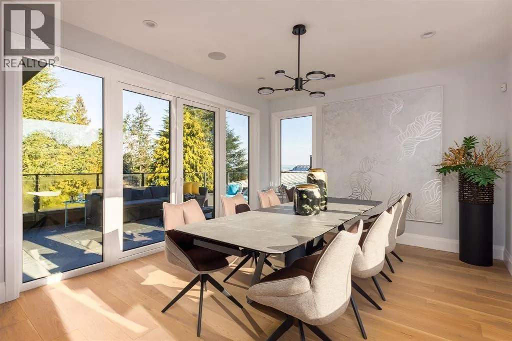 Tucked along a quiet street in prestigious Pebble Hill, this brand-new contemporary residence offers beautiful mountain and water views and over 5,100 sq.ft. of refined living on a 7,218 sq.ft. lot. A grand foyer with soaring ceilings opens to bright, open living spaces filled with natural light and hardwood floors throughout. The gourmet kitchen features premium appliances, custom cabinetry, a large stone island, and separate wok kitchen. Offering 7 bedrooms and an open den, including a serene primary suite with spa-inspired ensuite. Legal 2-bedroom suite with private entrance adds flexibility for extended family or mortgage helper. Radiant in-floor heating, A/C, HRV and media room. Ideally located close to top schools, parks, beaches and everyday amenities. (id:27476)