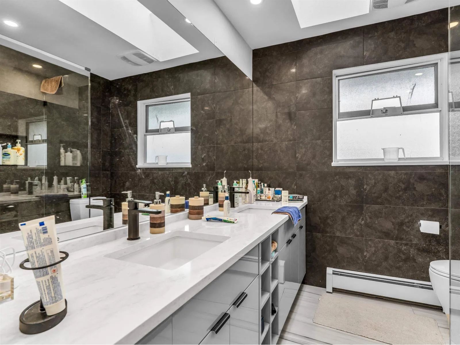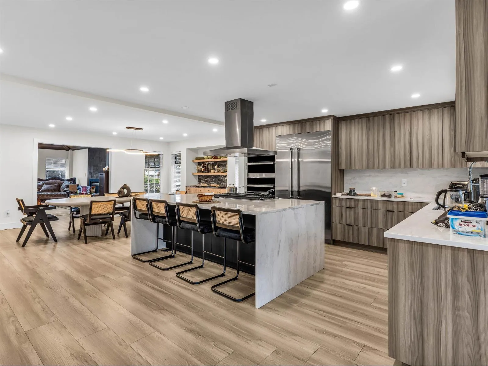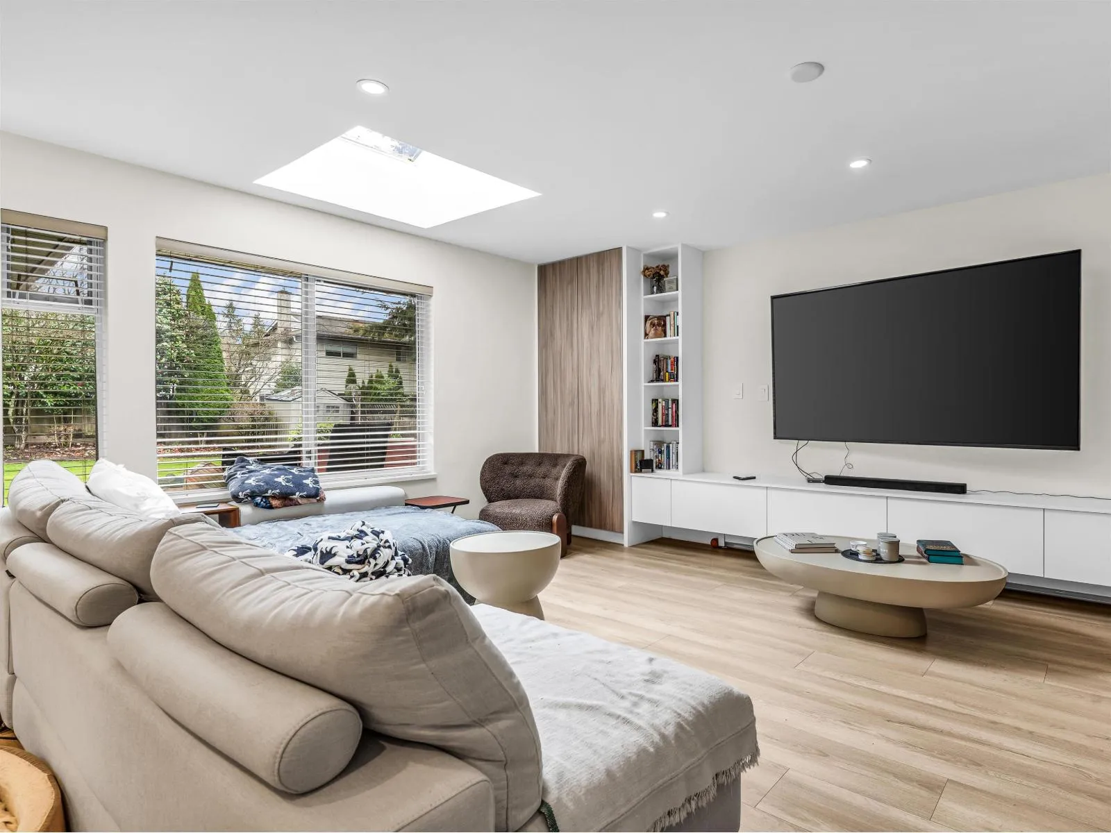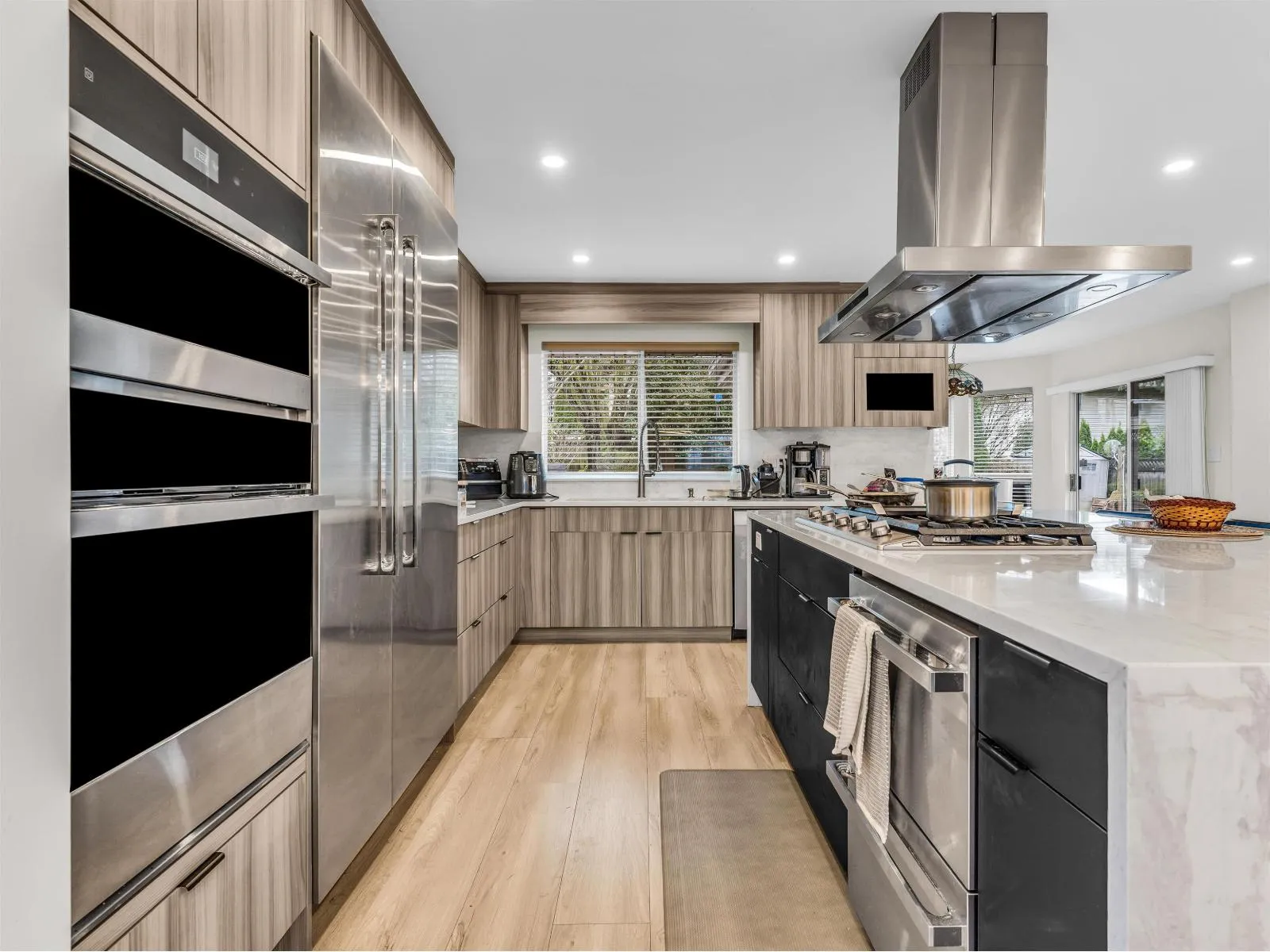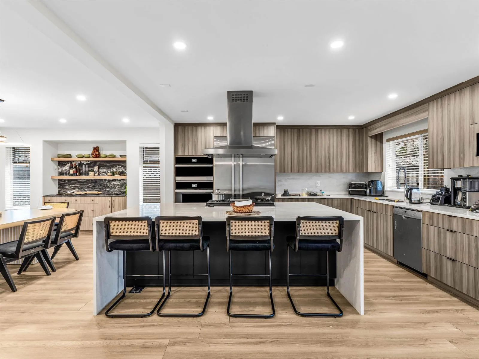 This 7-bed, 5-bath Nordel beauty has room for the whole family, and all their vehicles, too. Gorgeous show-stopping renos sweep through the entire property, with a chef-ready kitchen and spa-inspired bathrooms. Enter into a grand foyer that leads to a spacious family room w/ lofted ceilings, a kitchen w/ formal dining and a casual breakfast nook, a cozy living room, laundry, and a bonus bedroom and bathroom. The bonus rec room is a few steps up from the main level, ideal for movie nights or guests. Upstairs, find four huge bedrooms and three bathrooms. Good-sized basement suite/income helper down below, too. A fully fenced, flat backyard with an expansive wood patio and entry off the main floor makes the outdoors an option year-round. Entertaining, relaxing, or just enjoying family life-it's all possible here. (id:27476)