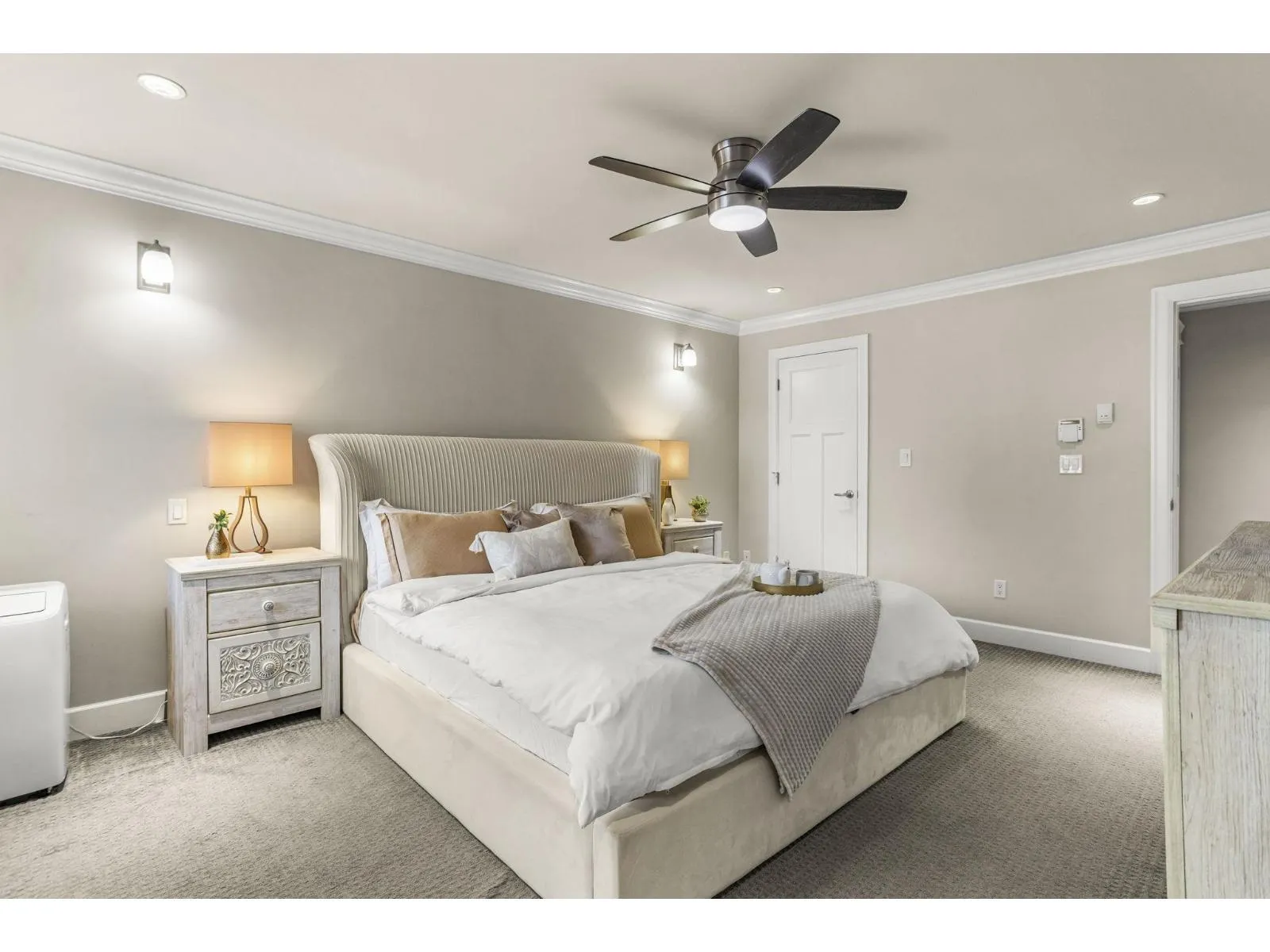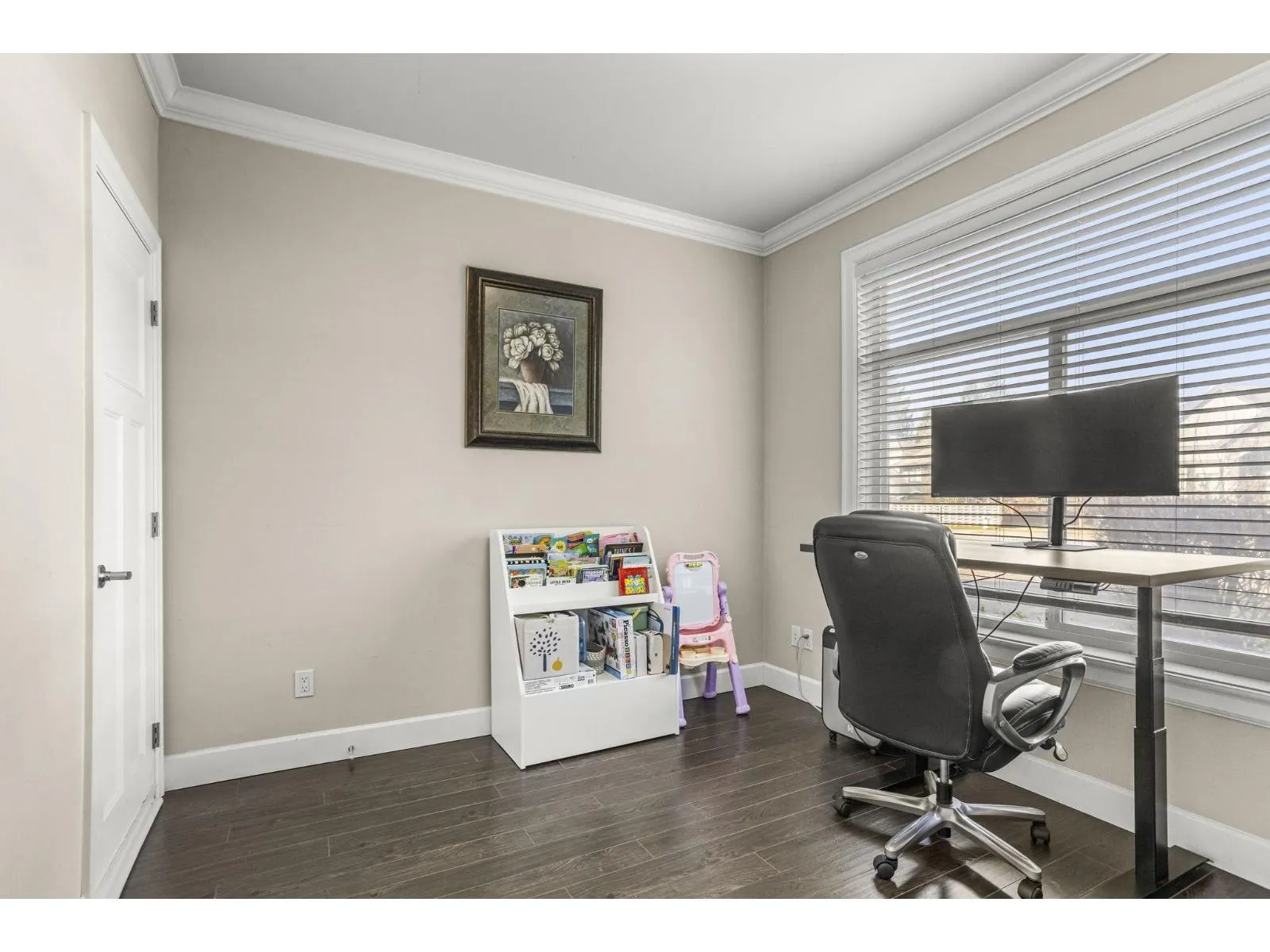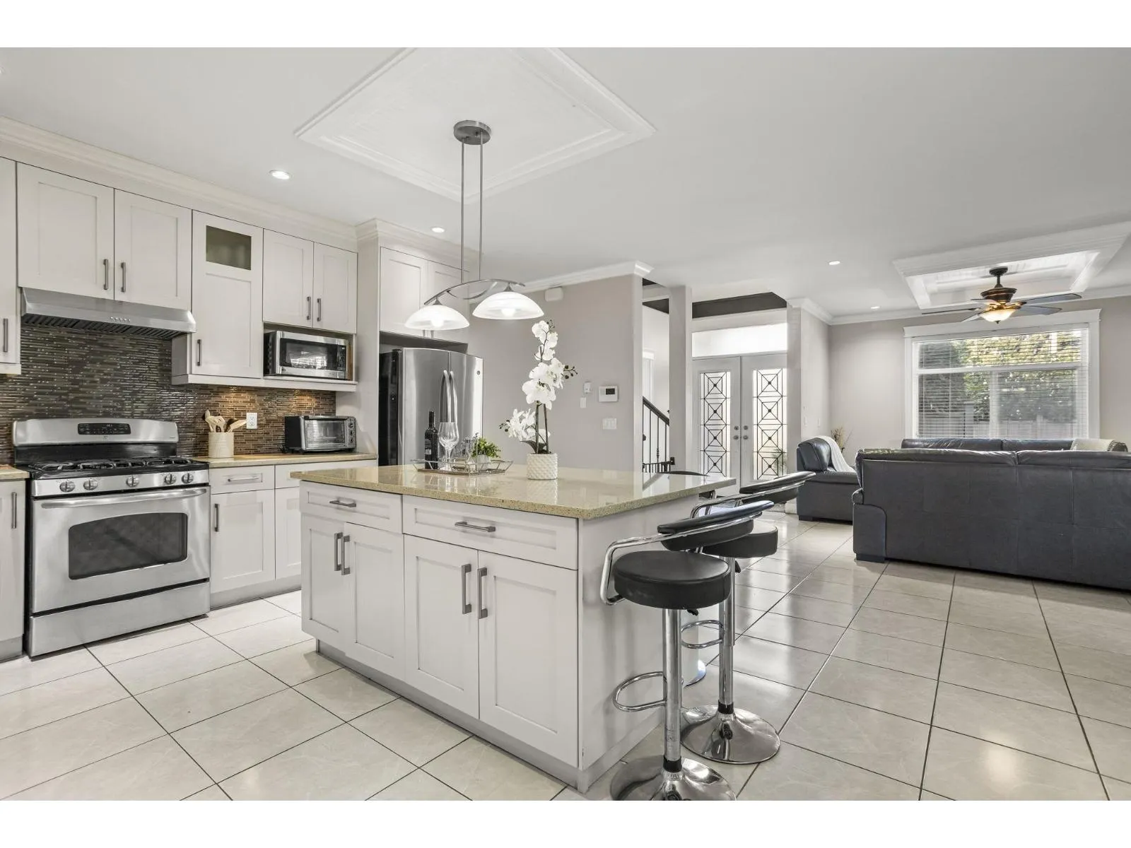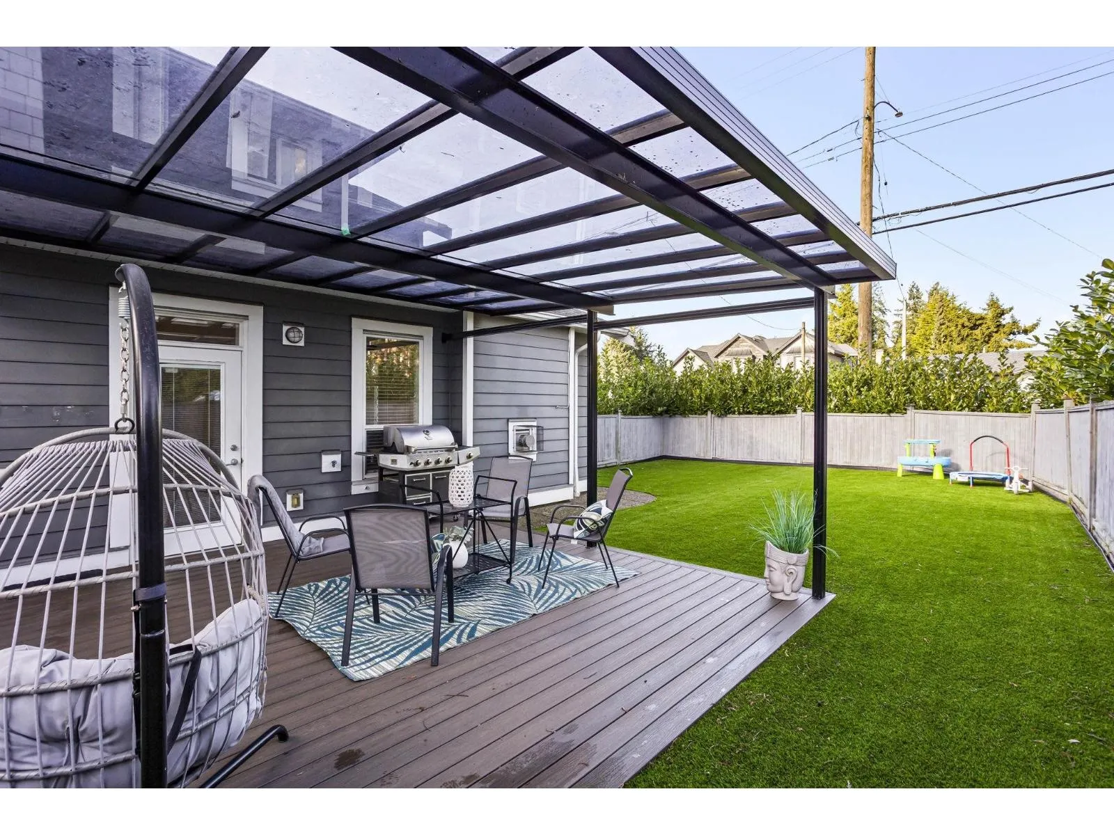 Rare opportunity offering Comer duplex in prime location! Enter into a spacious, bright, open layout featuring a spacious living and dining area with a gas fireplace. The main floor includes a bedroom with a full ensuite with separate entrance, ideal for extended family or guests plus a bonus office/nook and a powder room. The chef's kitchen has s/s appliances, a large island, soft-close cabinetry, and ample storage. Upstairs offers three generous bedrooms, including a spacious primary suite with a full ensuite and two closets. A full bath and convenient side/side laundry complete the UL. Enjoy a renovated, low-maint backyard with turf and a patio perfect for relaxing or entertaining. Radiant heating and four parking spaces. Close to schools, shopping, N. Delta Rec Centre & major routes. (id:27476)