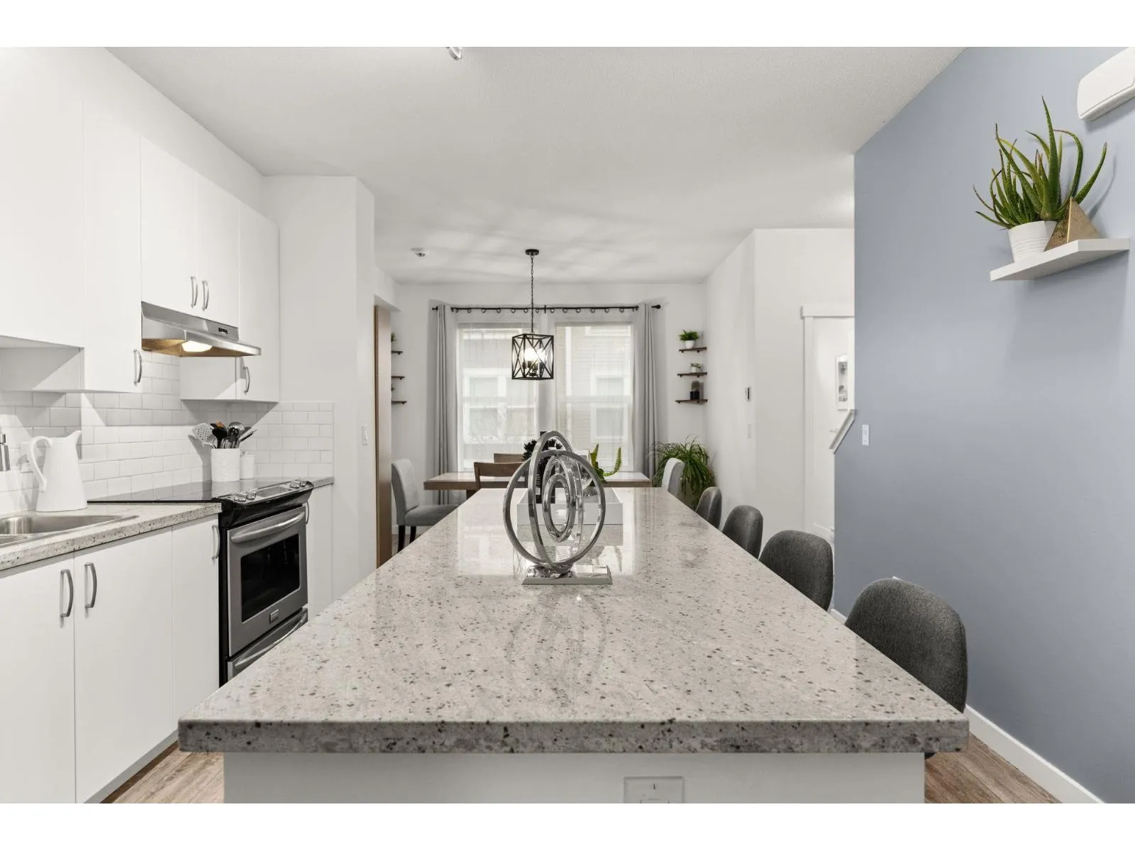 Tucked within this tranquil neighbourhood surrounded by scenic walking trails, playgrounds, a serene lake, and a community garden, this bright 3-bedroom, 3-bathroom townhome offers the perfect blend of comfort and lifestyle. Spanning three levels, the home features an inviting open-concept layout with an oversized island that seamlessly connects the dining and family rooms-ideal for gatherings and everyday living. Enjoy your morning coffee or host summer BBQs on the spacious west-facing back deck, or unwind in your private fenced yard that soaks in the afternoon sun. Upstairs, discover three generous bedrooms including a primary suite with a walk-in closet and a 5-piece ensuite. Thoughtful updates include new flooring, fresh interior paint, painted kitchen cabinets, updated light fixtures, hot water tank, and a refreshed lower back deck. Exclusive access to the Sunstone Club-a 12,000 sq. ft. resort-style amenity center. (id:27476)