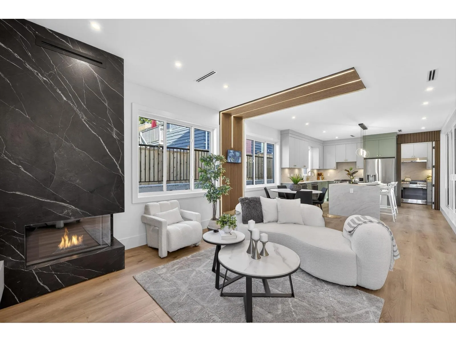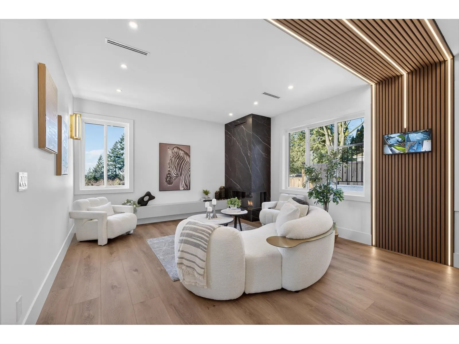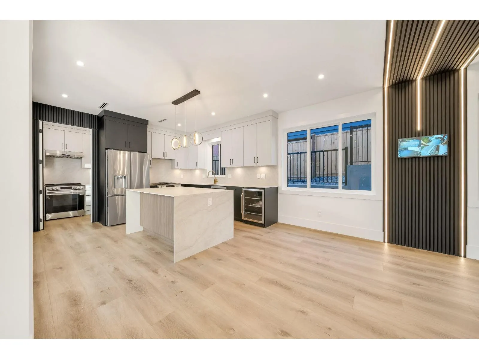 Brand-new modern West Coast 1/2 duplex on a prime corner lot w/ unobstructed Burns Bog views, 3,022 sq.ft. per side & 390 sq. ft. of covered decks on 9,000 sq.ft. lot (4,500 sq. ft. per unit). Features include a side-by-side double garage & 53-ft driveway w/ parking for up to 8 vehicles. Open-concept main floor,floor-to-ceiling windows & designer kitchen w/ double fridge,wine fridge,gas range & hidden spice kitchen, a main-floor bedroom w/ full bath. Upstairs has four bright bedrooms,full laundry & a primary suite w/ California Closets & spa-inspired ensuite,covered patio. Basement w/ 2-bedroom legal suite & rec room w/ full bath. Finished w/ custom cabinetry,slab-marble feature wall,LED lighting,glass railings,Control4 smart home,AC&tankless hotwater. (id:27476)