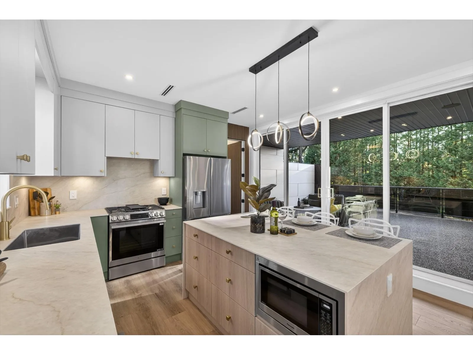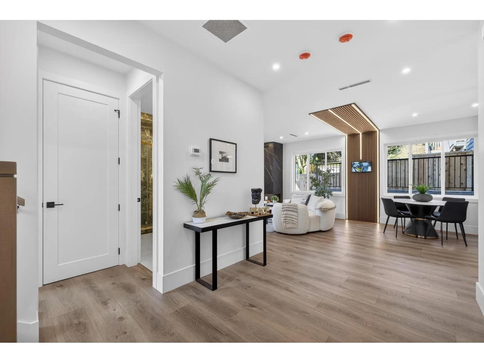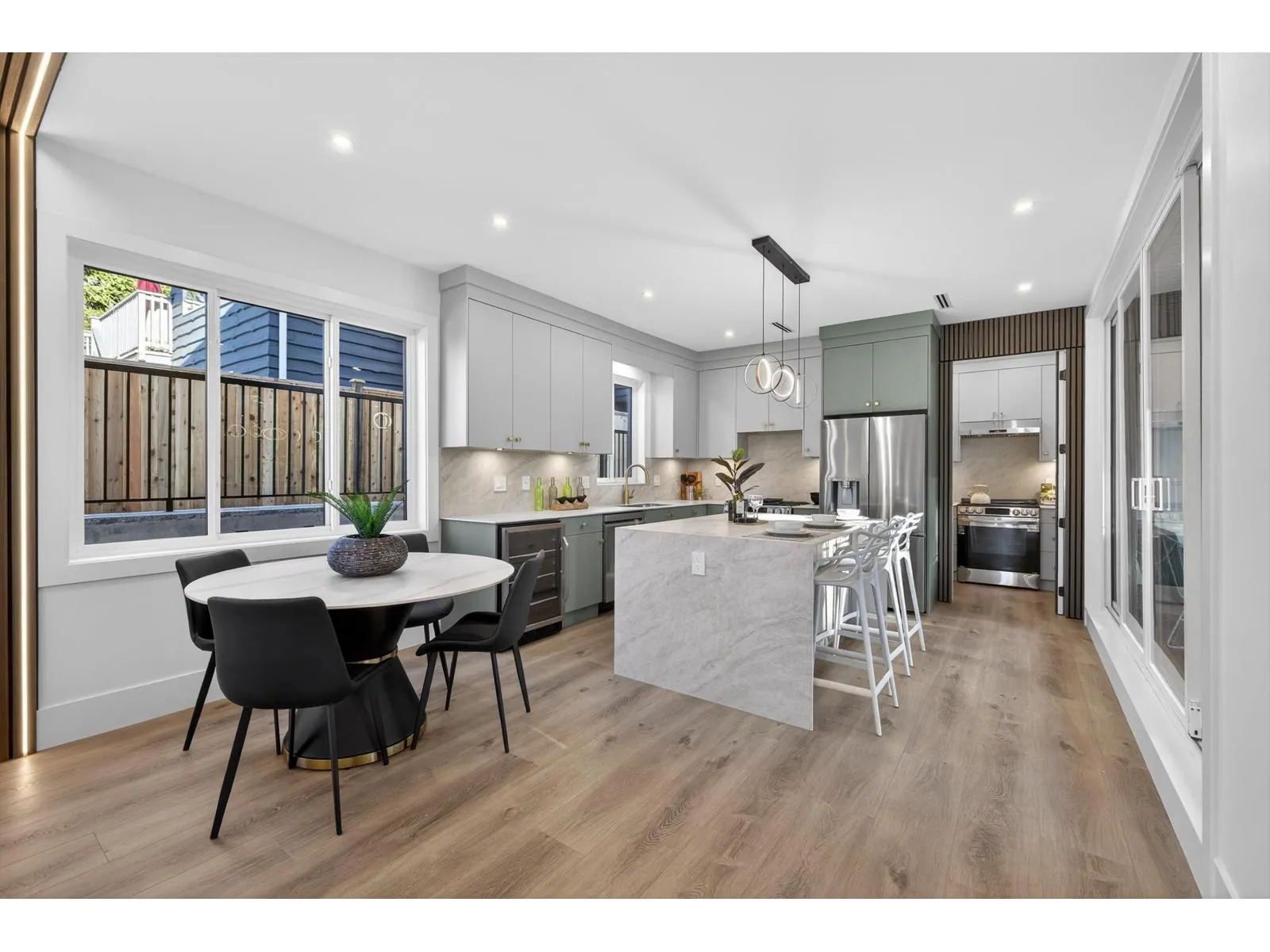 Brand-new modern West Coast 1/2 duplex on a prime corner lot w/ unobstructed Burns Bog views, 3,022 sq.ft. per side & 390 sq. ft. of covered decks on 9,000 sq.ft. lot (4,500 sq. ft. per unit). Features include a side-by-side double garage & 53-ft driveway w/ parking for up to 8 vehicles. Open-concept main floor,floor-to-ceiling windows & designer kitchen w/ double fridge,wine fridge,gas range & hidden spice kitchen, a main-floor bedroom w/ full bath. Upstairs has four bright bedrooms,full laundry & a primary suite w/ California Closets & spa-inspired ensuite,covered patio. Basement w/ 2-bedroom legal suite & rec room w/ full bath. Finished w/ custom cabinetry,slab-marble feature wall,LED lighting,glass railings,Control4 smart home,AC&tankless hotwater. (id:27476)