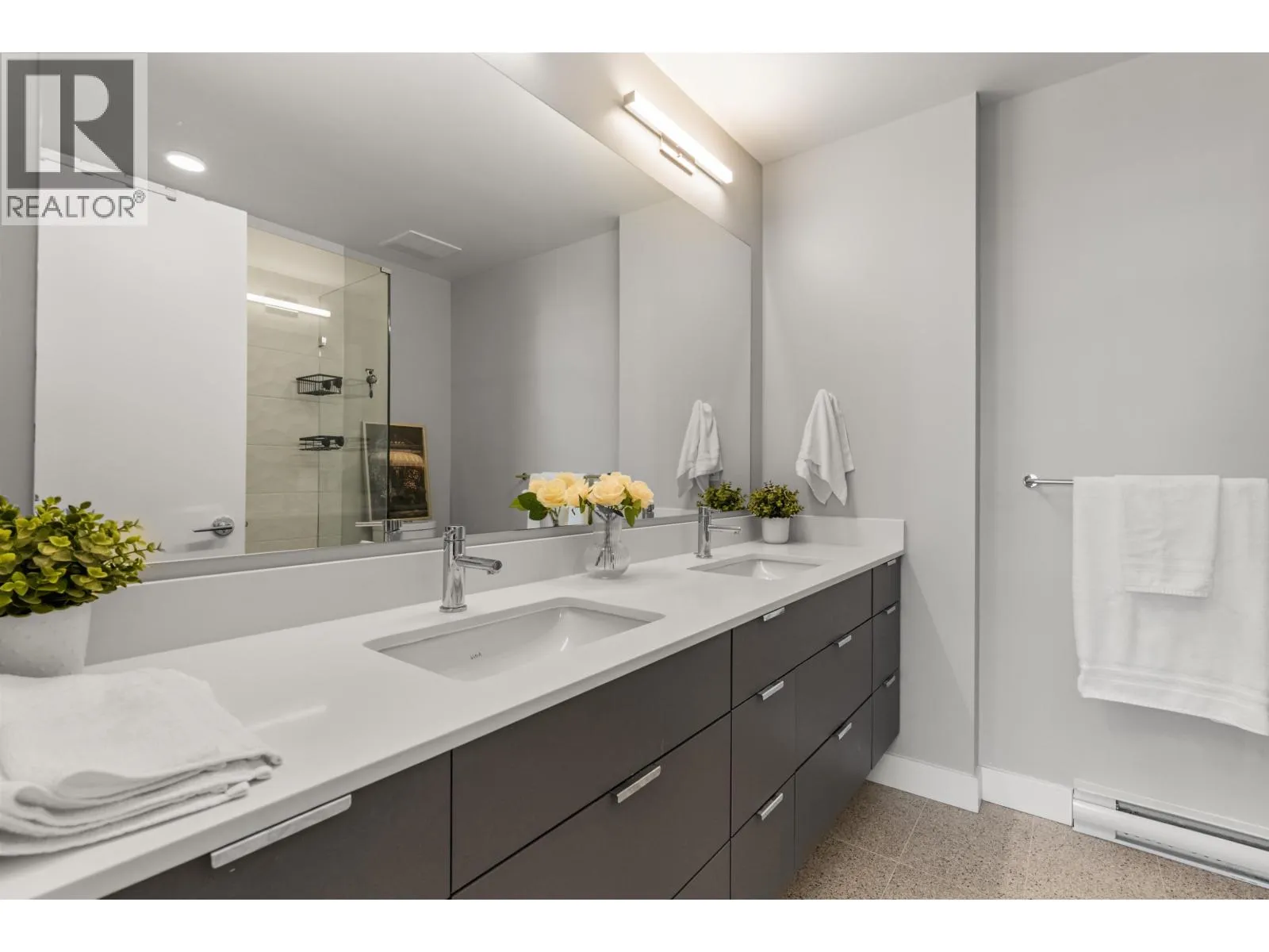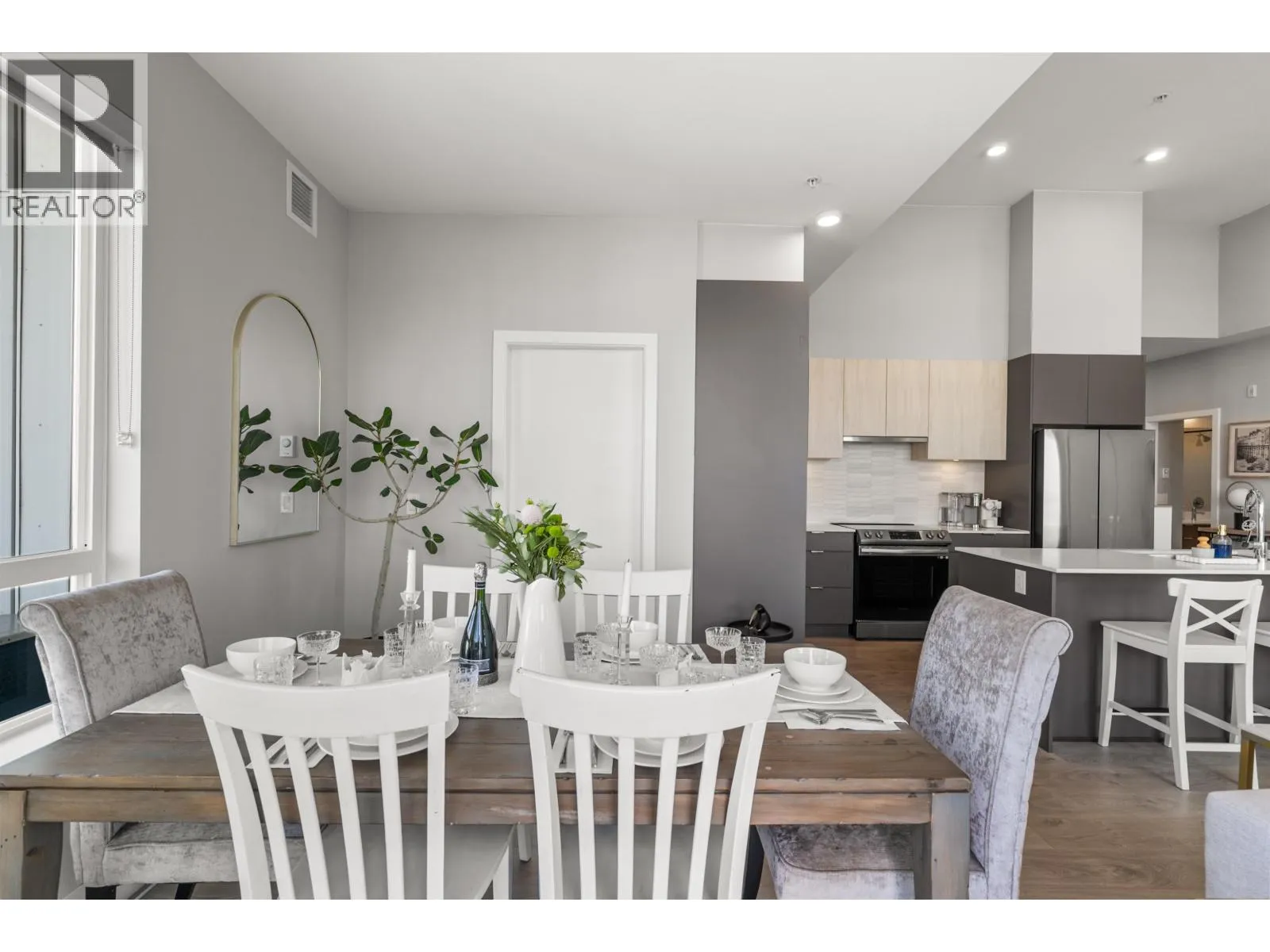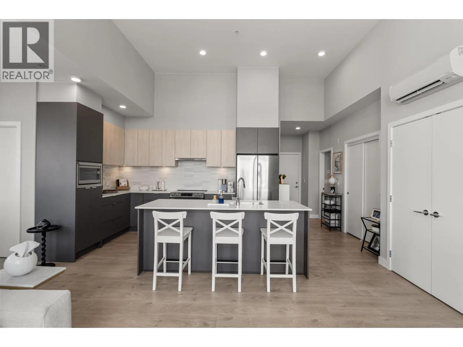 Simply stunning, top floor corner unit at Salt and Meadow with A/C. Step inside and get ready to fall in love with open concept living at it's finest, featuring nearly 13' ceilings in the living space, floor to ceiling cabinets and a large kitchen island, bar seating, formal dining area, and bedrooms on opposing sides of the home. Fully equipped with two bedrooms, two bathrooms, two parking spots including one with EV rough in and 1 locker. Primary Bedroom features walk through closet into a gorgeous 4 piece en-suite with double vanity and frameless glass shower. From sunrise to sunset enjoy views from your beautiful wrap around balcony. Amenities include gym in your building and the clubhouse offers: Pool, hot tub, gym, bbq areas, children's play area, parks, and so much more! (id:27476)
