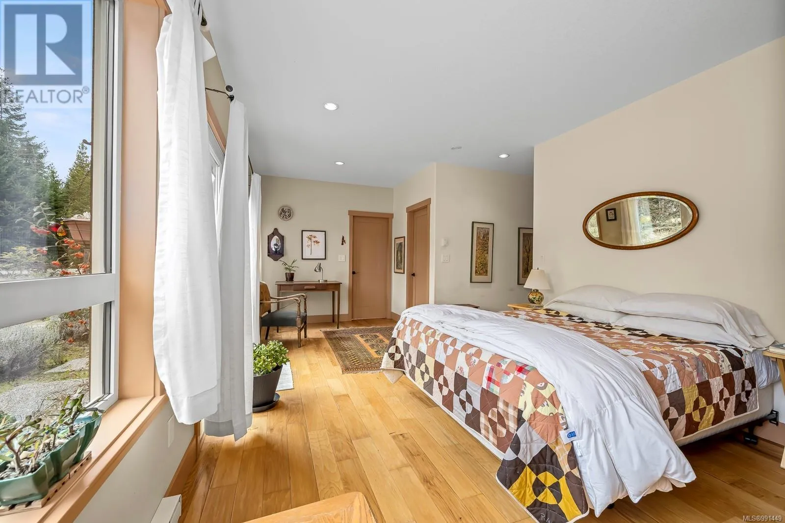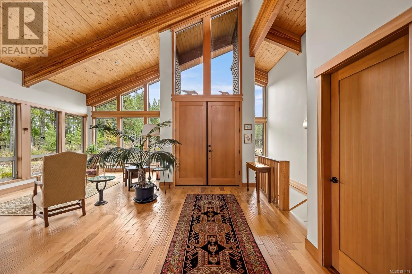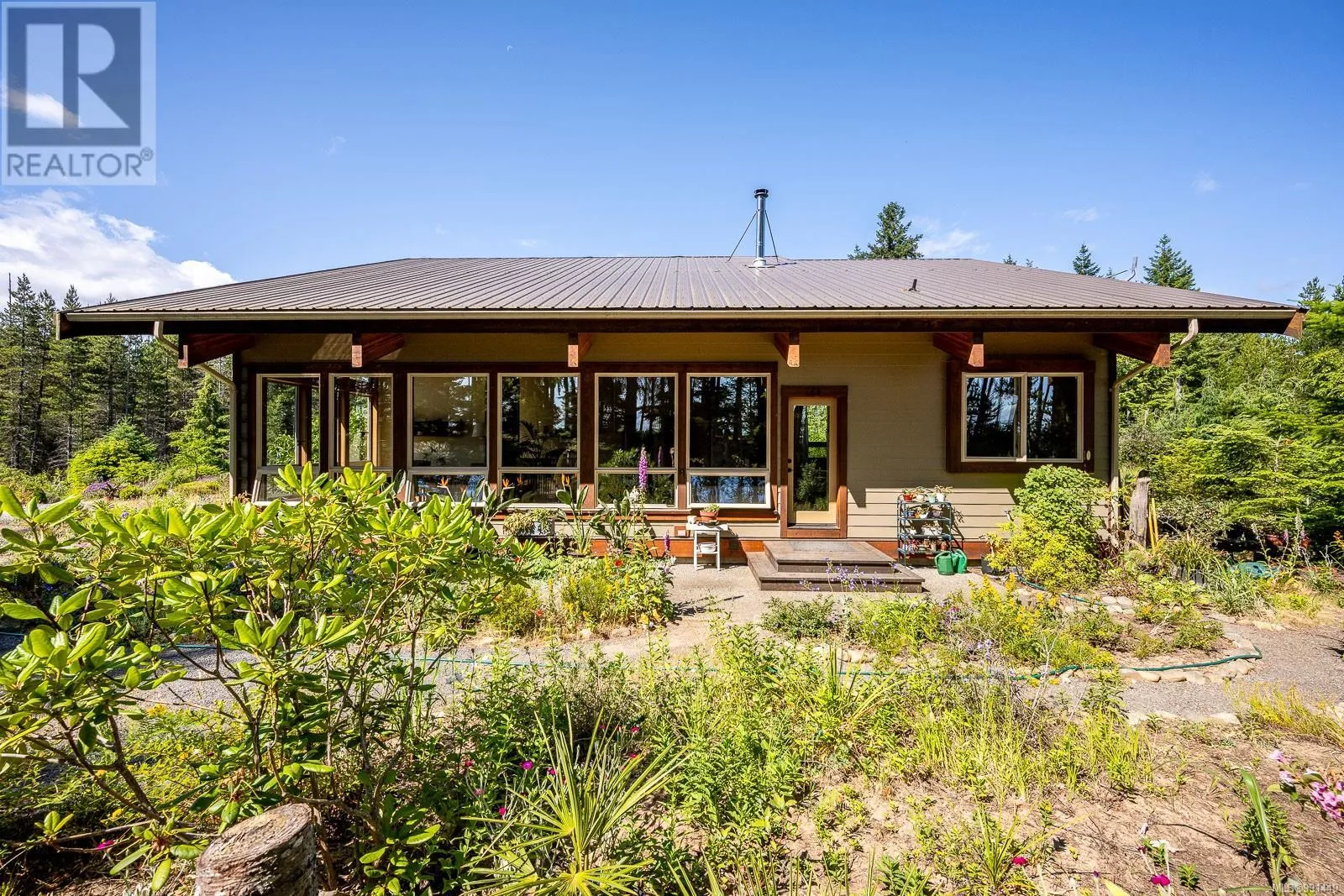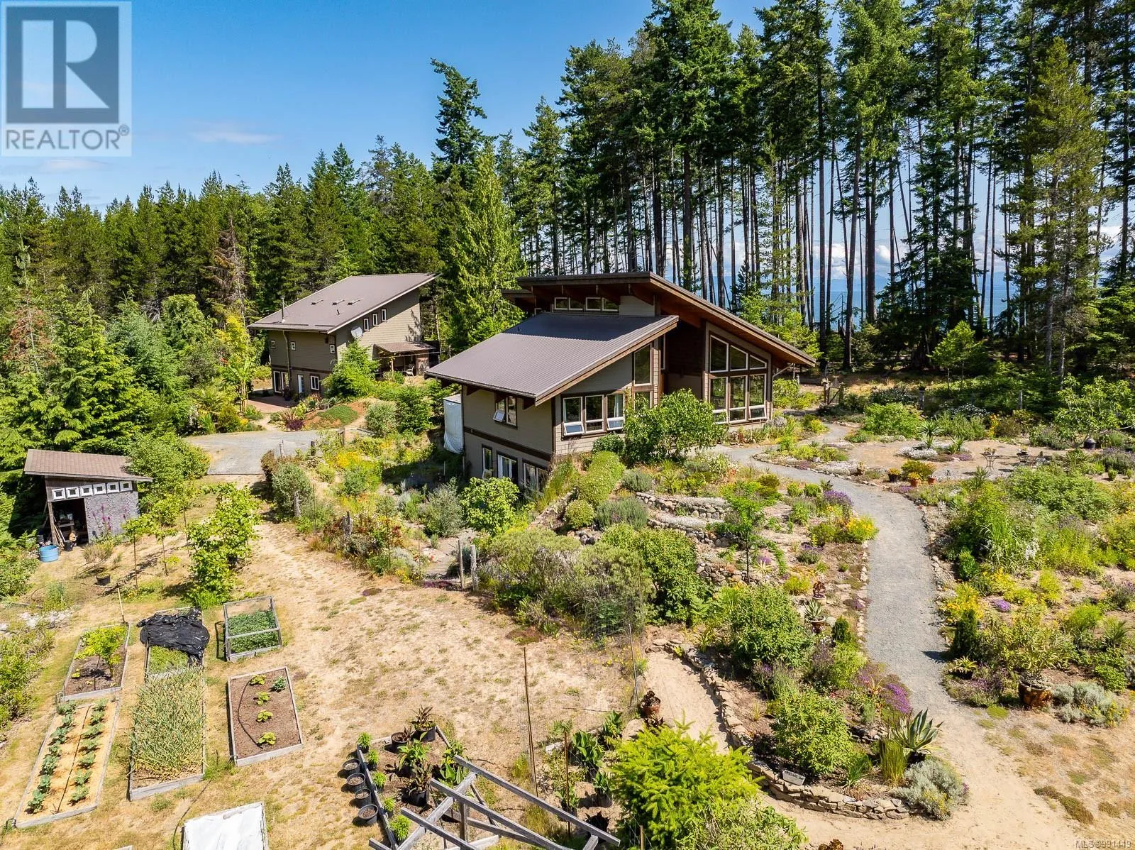 Beautiful 11+ acres of high bank waterfront overlooking an amazing sandy beach with 5+ bedrooms & 5 bathrooms and 2 options for income from the property. The sun filled main house was custom designed and built in 2013 by the same builder whose construction company built the Wickaninnish Inn (and other quality Tofino accommodations). It features an open concept living space with a vaulted ceiling, a wood stove, 2 bedrooms, walk-in closet, 2 baths, hardwood floors, wood cabinets and heated floor in the main bathroom. Enjoy natural flora and fauna from your floor to ceiling windows. There is a large unfinished area in the basement to accommodate your ideas for additional living space. The 2nd building has a full kitchen, 3-4 bedrooms, 3 bathrooms, including 2 self contained suites that have their own bathrooms and space for kitchenettes. Options for this building include mortgage helper, studio space, additional living space for an extended family or B&B suites. The property has a drilled well with 14gpm of high quality, excellent tasting water (full water analysis available), and a home-based watter bottling business is availabel separately. The landscaped grounds have an extensive botanical collection including palms, banana trees and Japanese timber bamboo. The vegetable gardens include raised beds and some semi-auto irrigation systems. Most of the gardens & yards (covering acres) are fenced to keep the local four legged friends out. Walk to Morning Beach Park just 5 minutes away to enjoy the view or take the yellow cedar stairs down to the beach for a hike to Sandy (Tree) Island or a dip in the ocean. A 10 minute drive gets you to âdowntownâ Denman, where you can browse local shops, get your groceries and hardware, or spend time in the bookshop browsing or enjoying their café. A truly unique property! See related commercial listing MLS #991562 (id:27476)