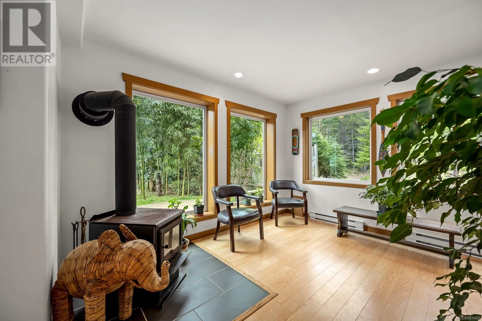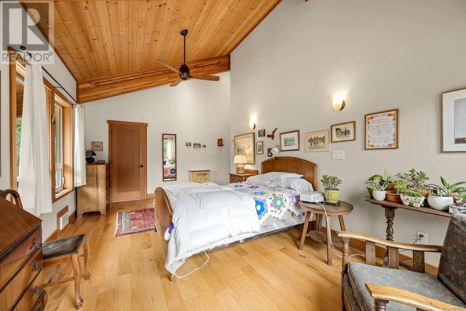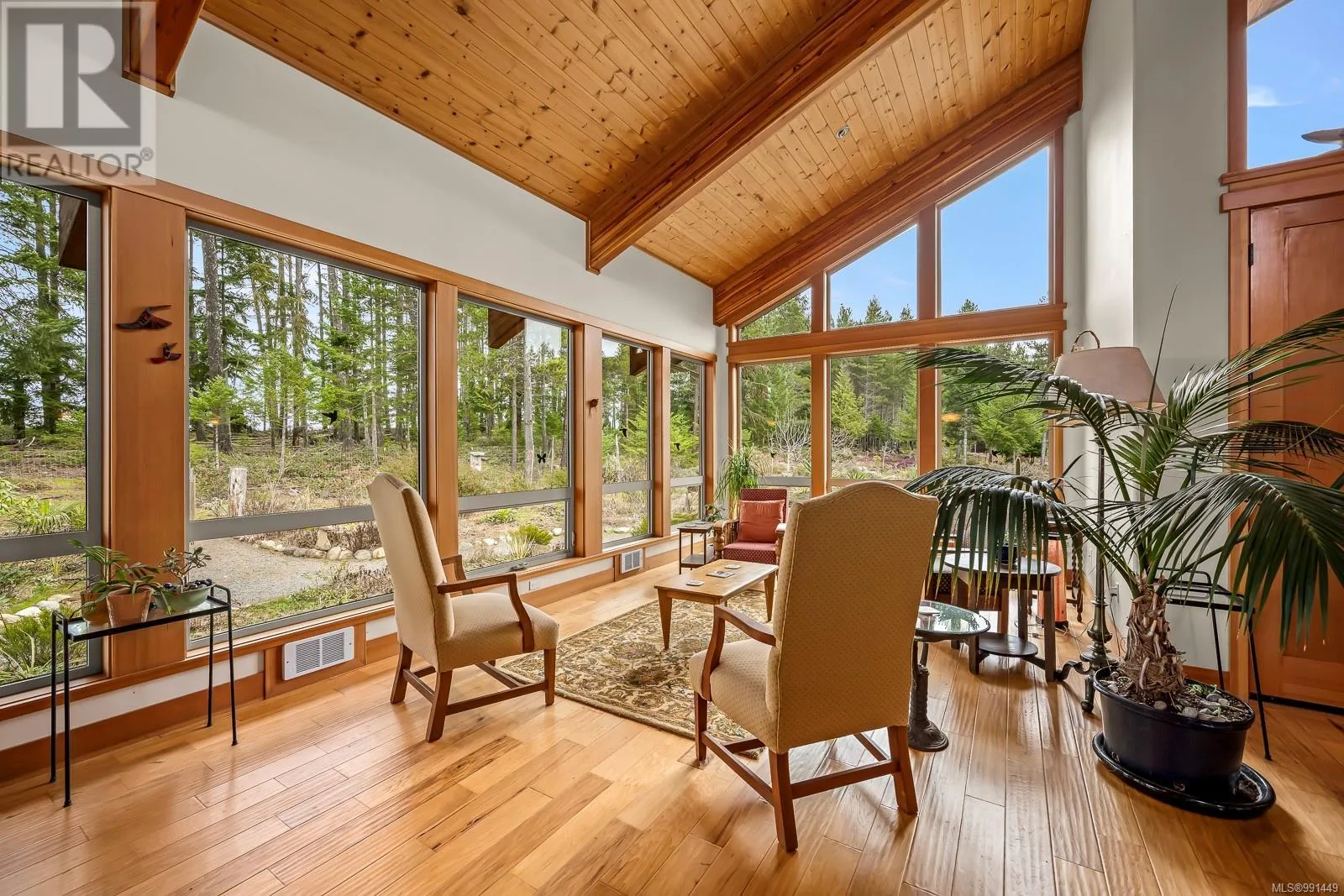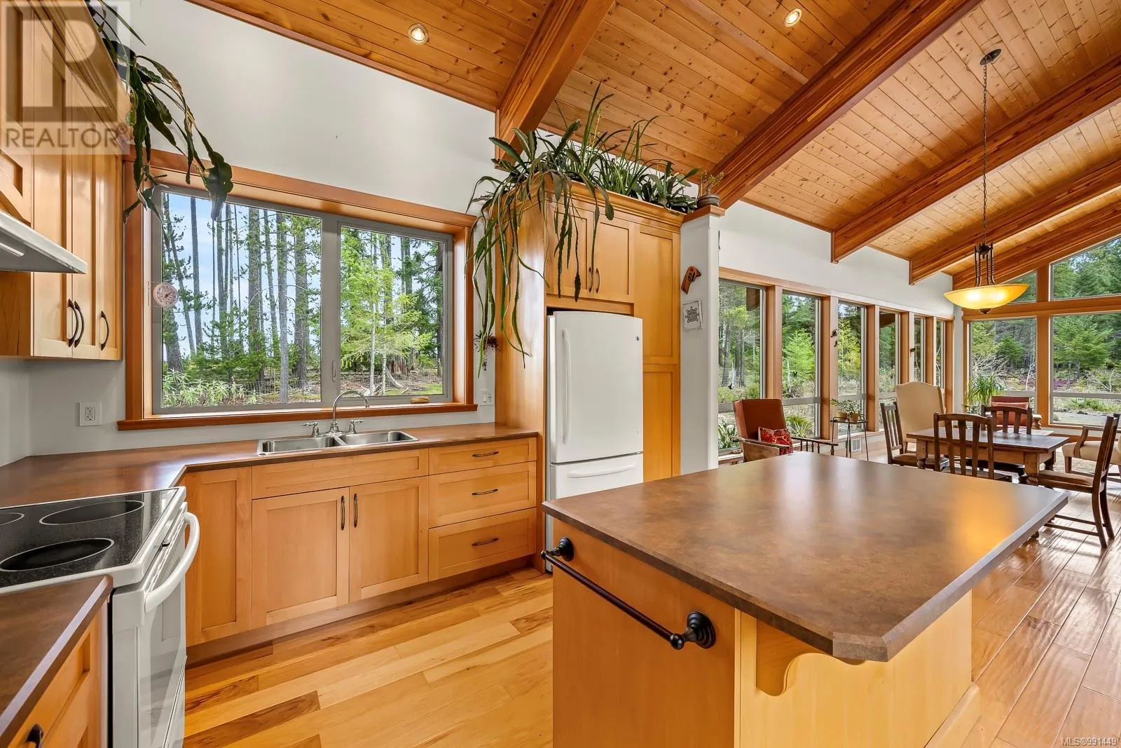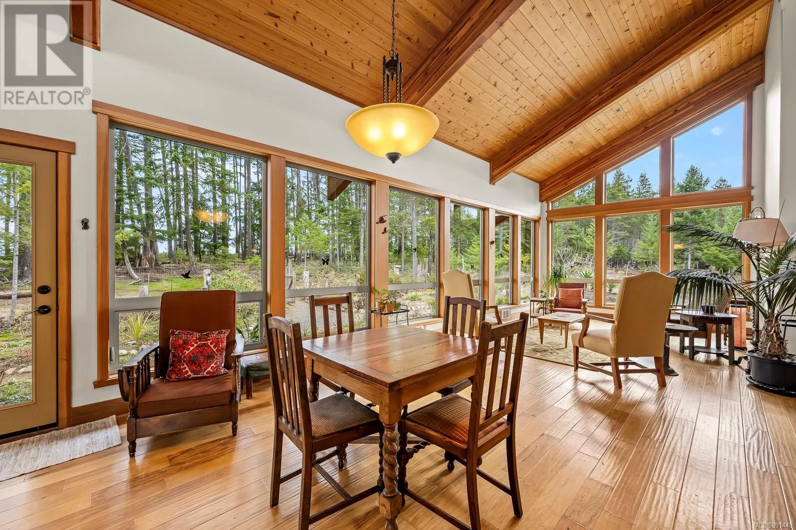 Beautiful 11+ acres of high bank waterfront overlooking an amazing sandy beach with 5+ bedrooms & 5 bathrooms and 2 options for income from the property. The sun filled main house was custom designed and built in 2013 by the same builder whose construction company built the Wickaninnish Inn (and other quality Tofino accommodations). It features an open concept living space with a vaulted ceiling, a wood stove, 2 bedrooms, walk-in closet, 2 baths, hardwood floors, wood cabinets and heated floor in the main bathroom. Enjoy natural flora and fauna from your floor to ceiling windows. There is a large unfinished area in the basement to accommodate your ideas for additional living space. The 2nd building has a full kitchen, 3-4 bedrooms, 3 bathrooms, including 2 self contained suites that have their own bathrooms and space for kitchenettes. Options for this building include mortgage helper, studio space, additional living space for an extended family or B&B suites. The property has a drilled well with 14gpm of high quality, excellent tasting water (full water analysis available), and a home-based watter bottling business is availabel separately. The landscaped grounds have an extensive botanical collection including palms, banana trees and Japanese timber bamboo. The vegetable gardens include raised beds and some semi-auto irrigation systems. Most of the gardens & yards (covering acres) are fenced to keep the local four legged friends out. Walk to Morning Beach Park just 5 minutes away to enjoy the view or take the yellow cedar stairs down to the beach for a hike to Sandy (Tree) Island or a dip in the ocean. A 10 minute drive gets you to âdowntownâ Denman, where you can browse local shops, get your groceries and hardware, or spend time in the bookshop browsing or enjoying their café. A truly unique property! See related commercial listing MLS #991562 (id:27476)