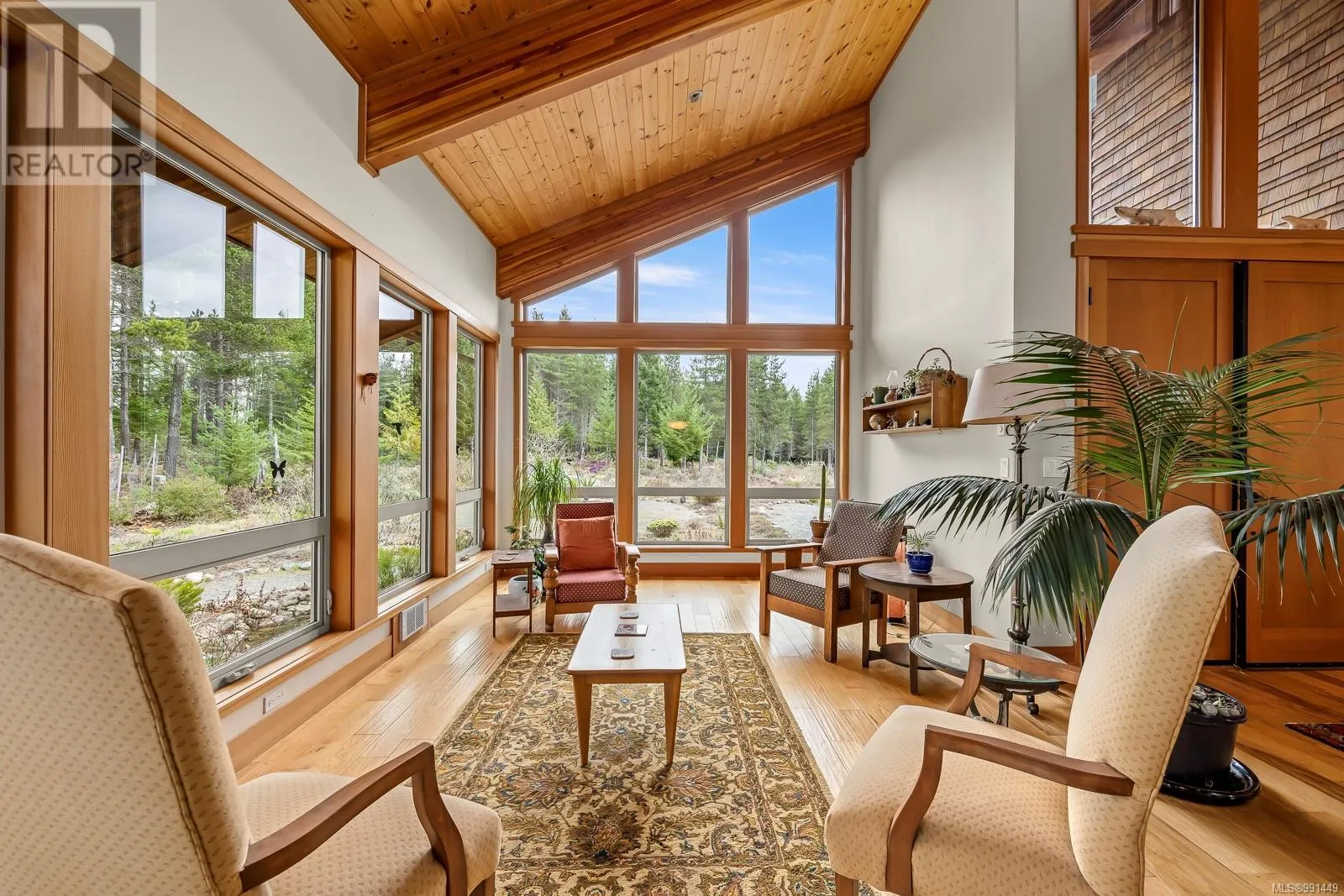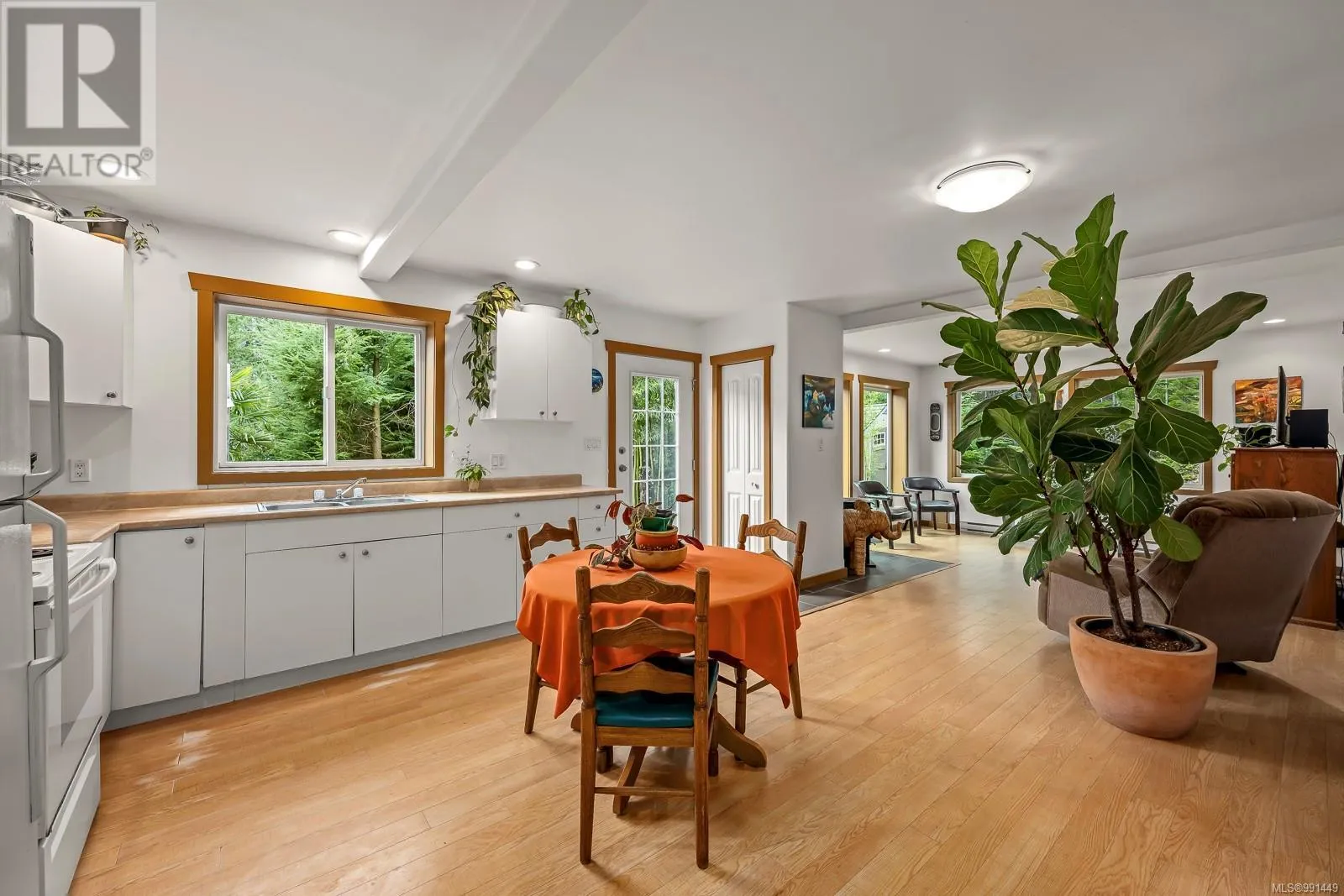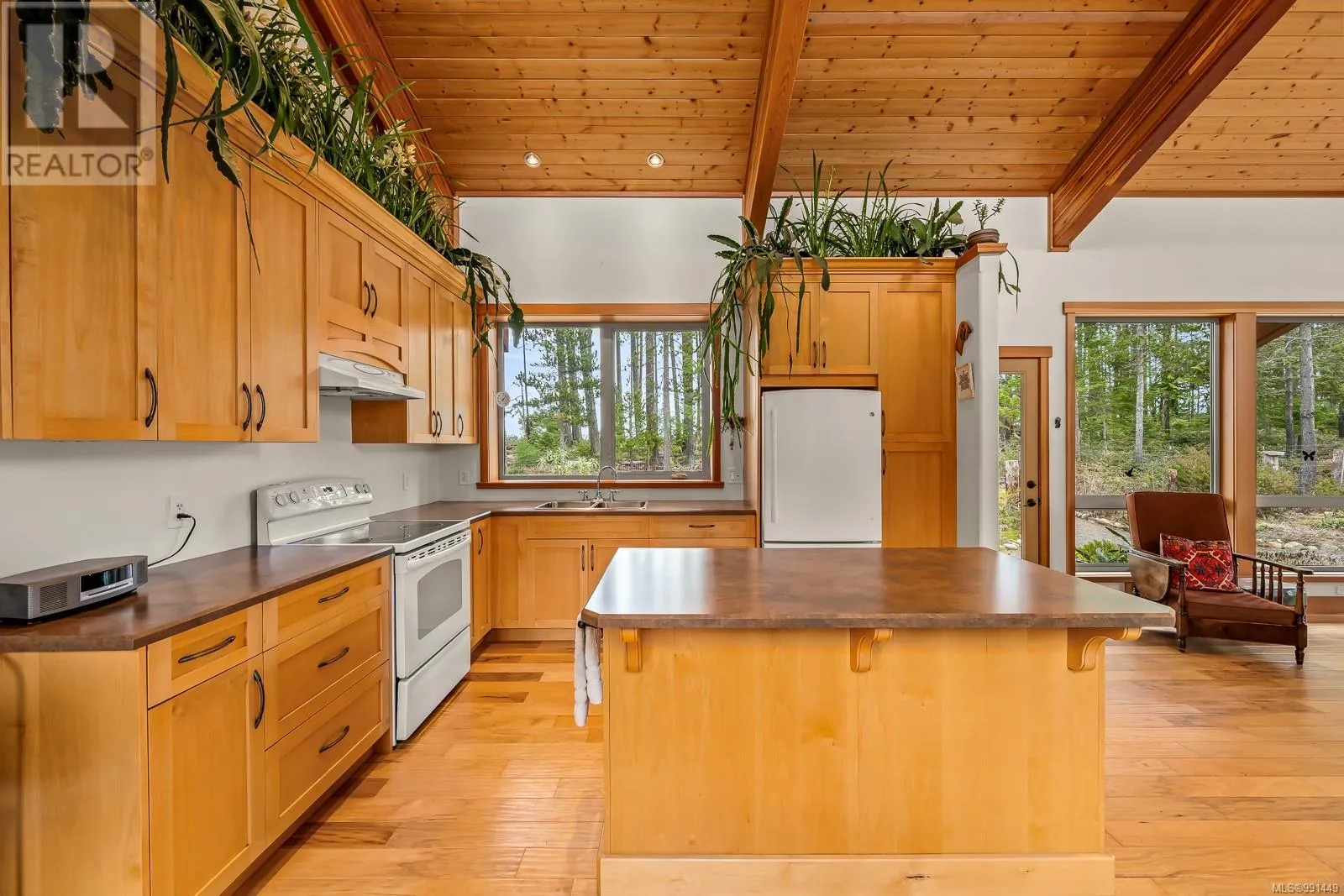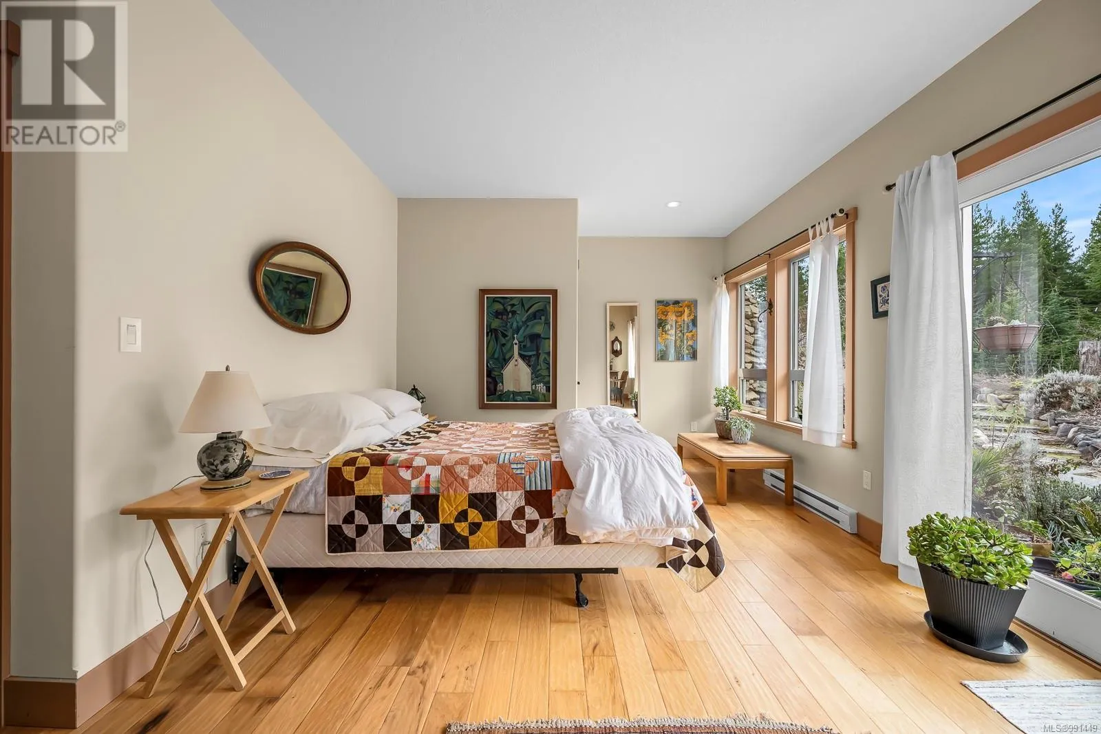 Beautiful 11+ acres of high bank waterfront overlooking an amazing sandy beach with 5+ bedrooms & 5 bathrooms and 2 options for income from the property. The sun filled main house was custom designed and built in 2013 by the same builder whose construction company built the Wickaninnish Inn (and other quality Tofino accommodations). It features an open concept living space with a vaulted ceiling, a wood stove, 2 bedrooms, walk-in closet, 2 baths, hardwood floors, wood cabinets and heated floor in the main bathroom. Enjoy natural flora and fauna from your floor to ceiling windows. There is a large unfinished area in the basement to accommodate your ideas for additional living space. The 2nd building has a full kitchen, 3-4 bedrooms, 3 bathrooms, including 2 self contained suites that have their own bathrooms and space for kitchenettes. Options for this building include mortgage helper, studio space, additional living space for an extended family or B&B suites. The property has a drilled well with 14gpm of high quality, excellent tasting water (full water analysis available), and a home-based watter bottling business is availabel separately. The landscaped grounds have an extensive botanical collection including palms, banana trees and Japanese timber bamboo. The vegetable gardens include raised beds and some semi-auto irrigation systems. Most of the gardens & yards (covering acres) are fenced to keep the local four legged friends out. Walk to Morning Beach Park just 5 minutes away to enjoy the view or take the yellow cedar stairs down to the beach for a hike to Sandy (Tree) Island or a dip in the ocean. A 10 minute drive gets you to âdowntownâ Denman, where you can browse local shops, get your groceries and hardware, or spend time in the bookshop browsing or enjoying their café. A truly unique property! See related commercial listing MLS #991562 (id:27476)