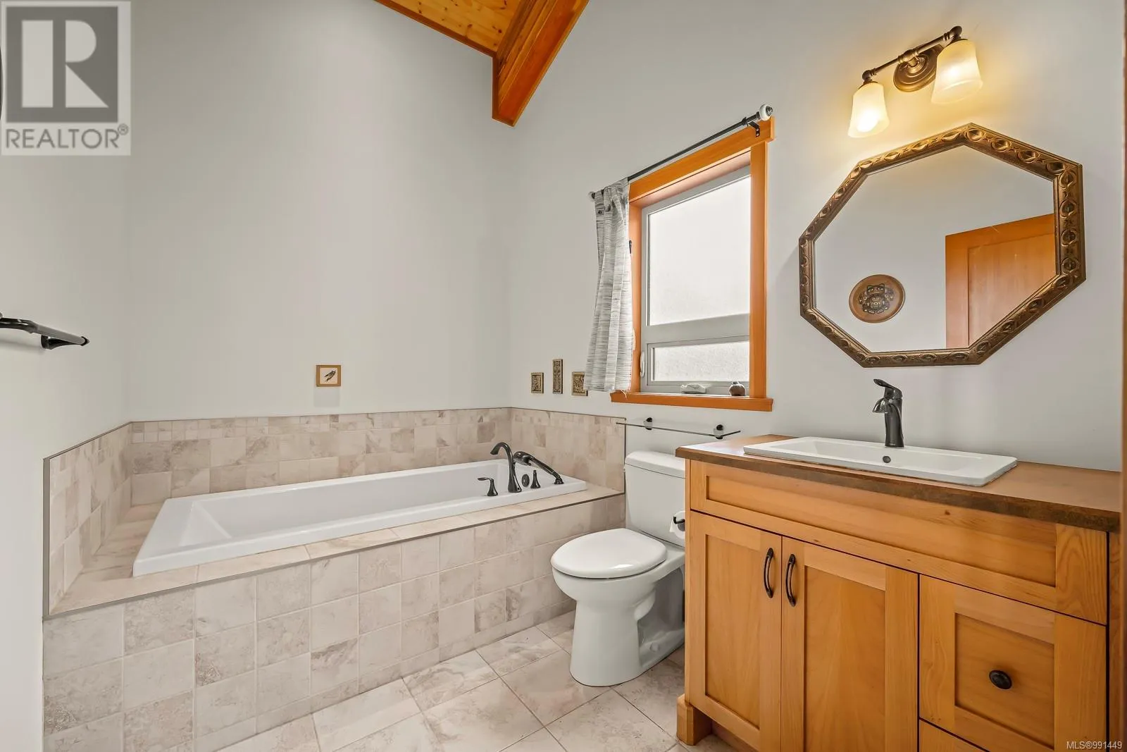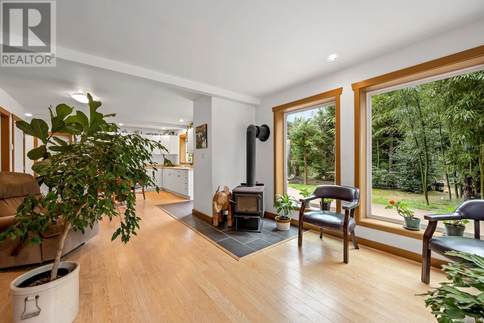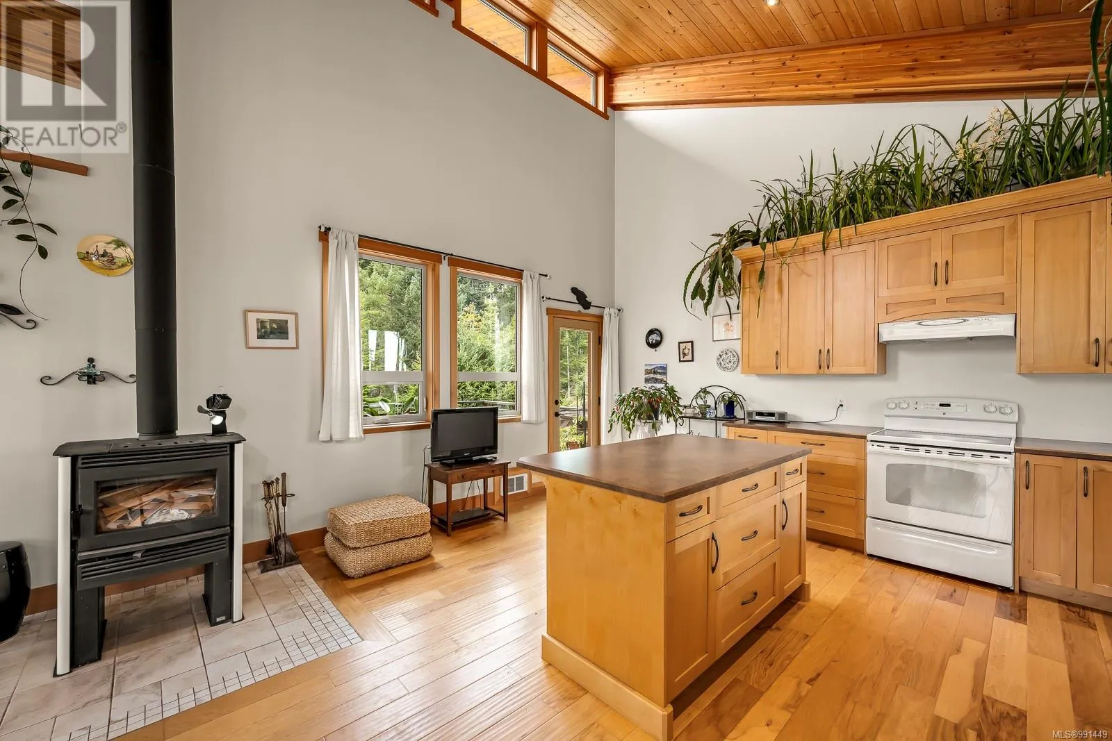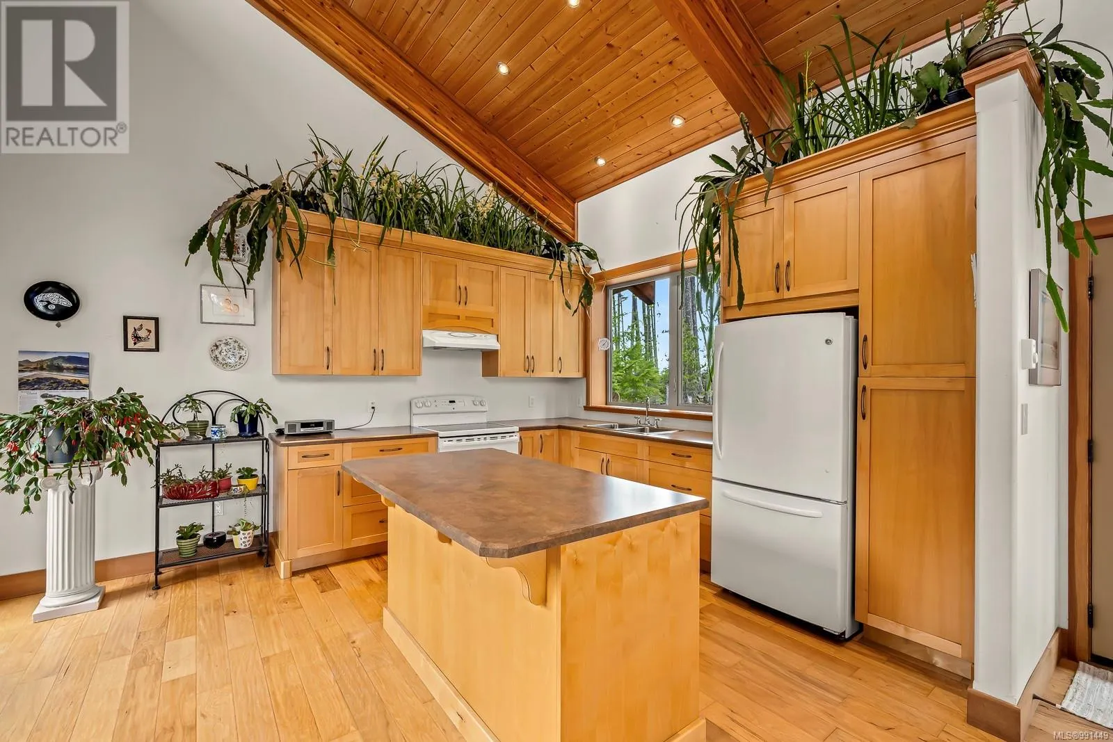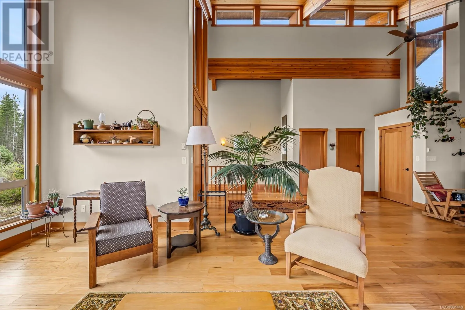 Beautiful 11+ acres of high bank waterfront overlooking an amazing sandy beach with 5+ bedrooms & 5 bathrooms and 2 options for income from the property. The sun filled main house was custom designed and built in 2013 by the same builder whose construction company built the Wickaninnish Inn (and other quality Tofino accommodations). It features an open concept living space with a vaulted ceiling, a wood stove, 2 bedrooms, walk-in closet, 2 baths, hardwood floors, wood cabinets and heated floor in the main bathroom. Enjoy natural flora and fauna from your floor to ceiling windows. There is a large unfinished area in the basement to accommodate your ideas for additional living space. The 2nd building has a full kitchen, 3-4 bedrooms, 3 bathrooms, including 2 self contained suites that have their own bathrooms and space for kitchenettes. Options for this building include mortgage helper, studio space, additional living space for an extended family or B&B suites. The property has a drilled well with 14gpm of high quality, excellent tasting water (full water analysis available), and a home-based watter bottling business is availabel separately. The landscaped grounds have an extensive botanical collection including palms, banana trees and Japanese timber bamboo. The vegetable gardens include raised beds and some semi-auto irrigation systems. Most of the gardens & yards (covering acres) are fenced to keep the local four legged friends out. Walk to Morning Beach Park just 5 minutes away to enjoy the view or take the yellow cedar stairs down to the beach for a hike to Sandy (Tree) Island or a dip in the ocean. A 10 minute drive gets you to âdowntownâ Denman, where you can browse local shops, get your groceries and hardware, or spend time in the bookshop browsing or enjoying their café. A truly unique property! See related commercial listing MLS #991562 (id:27476)