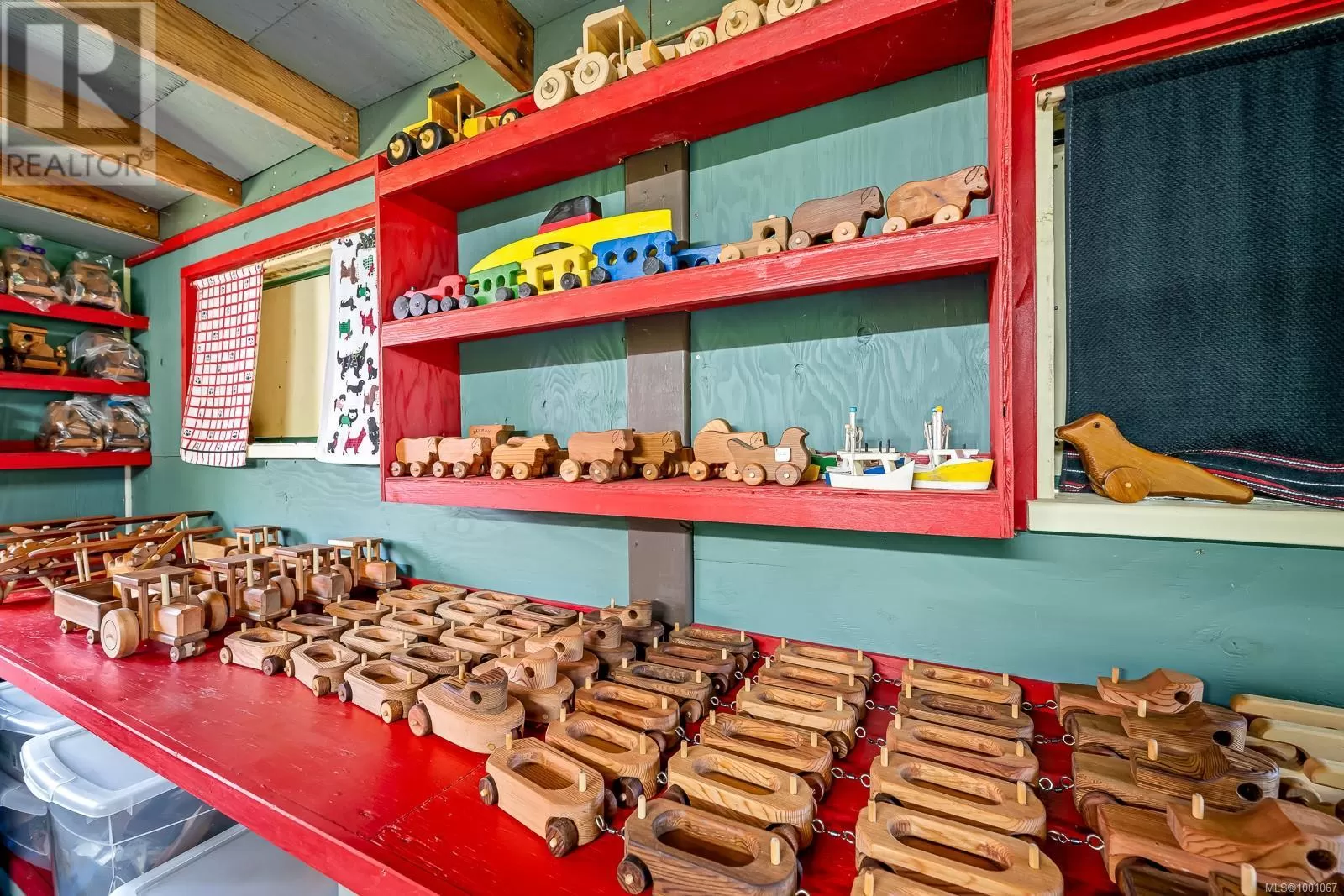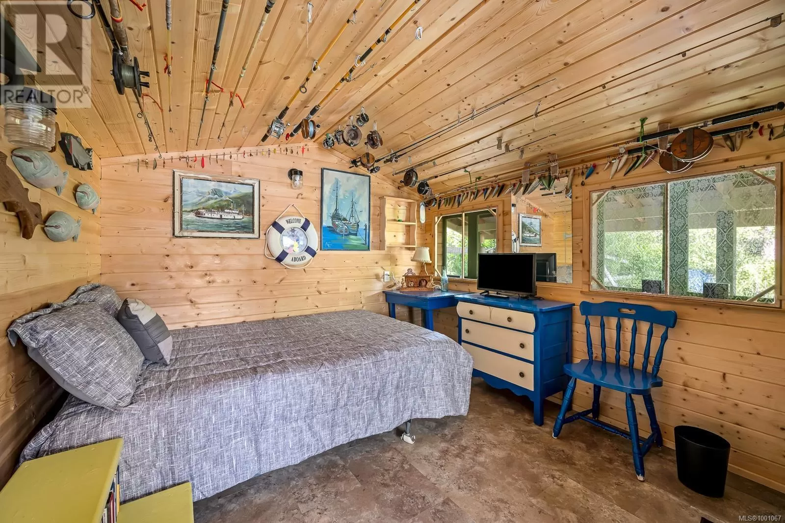 Welcome to your peaceful coastal retreatâwhere craftsmanship, comfort, and natural beauty come together. Located at the end of a quiet no-through road, this lovingly built home sits on nearly half an acre, offering privacy and serenity just a short stroll from the beach and park trails. With large acreages on two sides, the property feels secluded while still being part of a welcoming community. Built in 2011 with attention to quality, the home features 2x6 engineered floor joists and trusses, and UV-protected thermal windows. Inside, the warm character of wood shines throughâNordic birch tongue-and-groove flooring, wood paneling, and a cozy wood stove create a true cabin feel. The open-concept layout includes a cozy kitchen/living/dining area, a primary bedroom with ensuite, and a cheerful bunk-bed room perfect for visiting grandkids. A charming garden bunkie offers flexible space for guests, a studio, or quiet retreat. Step outside and youâll find beautifully landscaped gardens bursting with mature shrubs, perennial flowers, fruit trees, and berry bushesâideal for anyone with a green thumb. A spacious wrap-around covered deck invites year-round outdoor living, whether you're enjoying morning coffee or an evening breeze. Take a peek into the detached workshop and display area, where the current owner handcrafted and sold classic wooden toys. Combining rustic charm and quality construction, this special property offers a unique opportunity to live close to nature while enjoying the comforts of home. Whether youâre downsizing, retiring, or seeking a quieter lifestyle, this home is ready to welcome you. (id:27476)
