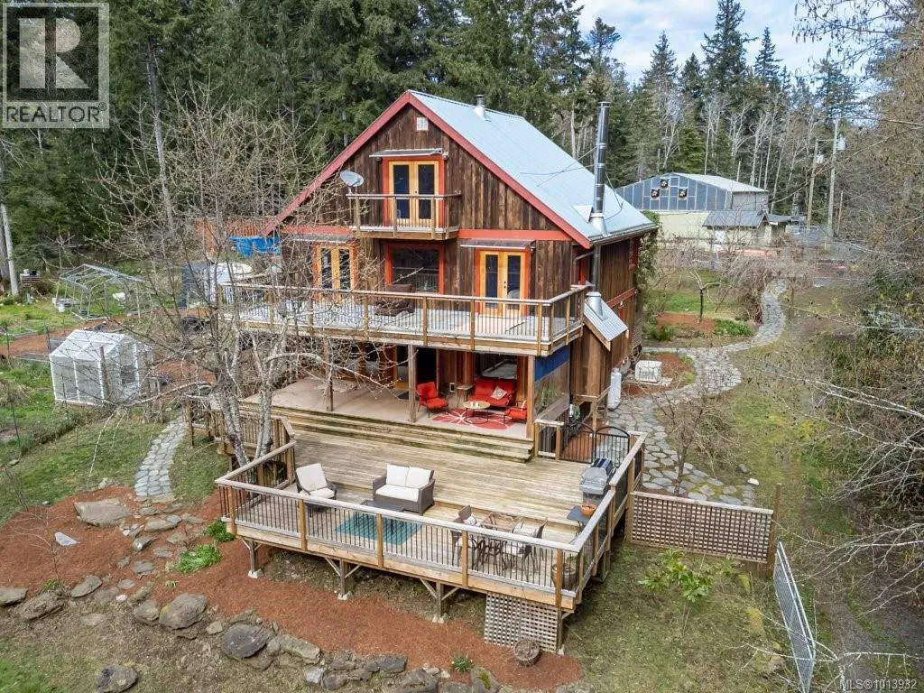 Priced for Immediate Sale! Set on 5.39 acres, this rare Denman Island estate blends natural beauty with unmatched potential. This 2,700+ sqft West Coast-style home offers 3 bedrooms, 2 baths, vaulted living spaces, and expansive decks with potential for scenic vistas of pond, gardens and forest; a peaceful retreat poised for rejuvenation with lots of upside in bonus features. In addition, a truly state-of-the-art 9x500 sqft agricultural facility w/ rooftop greenhouse includes 2 staff rooms, 2 washrooms, and infrastructure suited for specialty agriculture or home-based business or lease income. In total, over 12,000 sqft of living and working space creates a unique canvas for entrepreneurs or visionaries at an unbeatable price. Offered as-is, where-is, this property delivers privacy, scale, and unprecedented value-a rare opportunity to capture significant upside in one of the Gulf Islands' most desirable settings. Please note the house is currently tenanted and listing photos do not accurately represent current condition of the home. This is a wonderful project for a buyer looking to bring some TLC and add value or create income off the land - these types of deals do not come along very often, don't miss out! (id:27476)