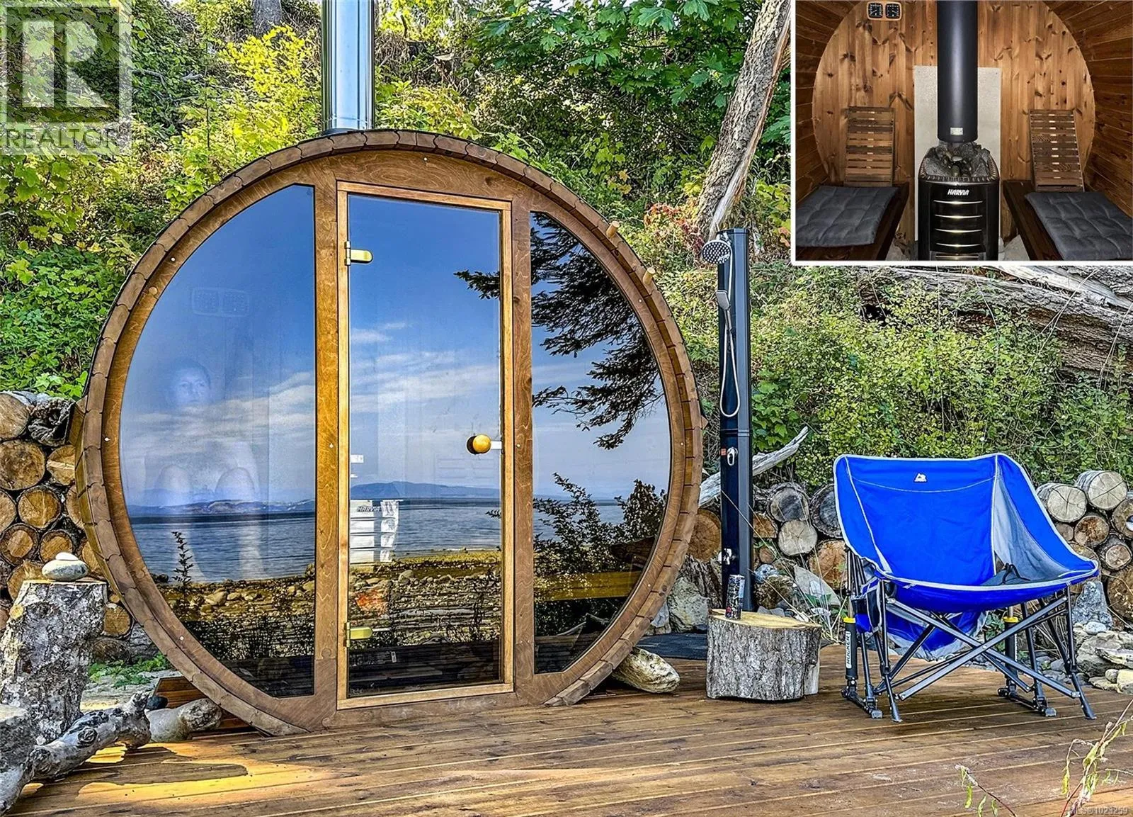 Stunning Denman Island oceanfront estate + income powerhouse! Discover the perfect blend of luxury living and smart investment in this architect-designed home set on 2 beautifully landscaped acres with 200 feet of pristine waterfront. The principal residence impresses with soaring 25 foot vaulted celings, an expansive gourmet kitchen with high end appliances and finishes, skylights that flood the space with natural light, and breathtaking ocean views framed by large windows. The spacious 3 bedroom, 3 bathroom layout offers both comfort and elegance. A separate guest building features three luxurious suites, each with private entry, full kitchen, ocean views, cozy fireplace, in floor heating, private deck, garden, and its own hot tub and cold plunge pool - ideal for guest privacy and relaxation. Wellness amenities include, romantic Scandinavian sauna on the beach, a medical grade sauna, and a massage studio - creating a complete resort experience. The property also includes EV charging, a caretakers cottage, and meticulously maintained grounds that reflect true pride of ownership. This turnkey, award winning spa resort generates over $340,000 per year and is easy to operate - offering not just a home but a sustainable lifestyle business. Whether you're looking to live full time in a coastal paradise or operate a successful retreat, this property offers rare flexibility and beauty. Priced well below formal appraisals, this is a one of a kind opportunity to own a world class oceanfront estate on Denman Island. (id:27476)