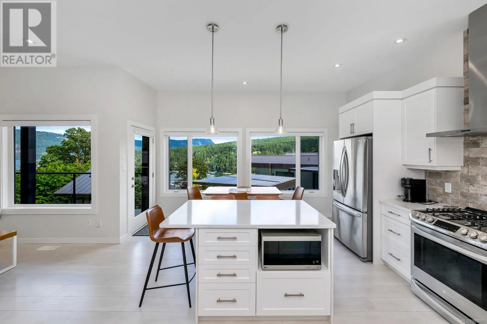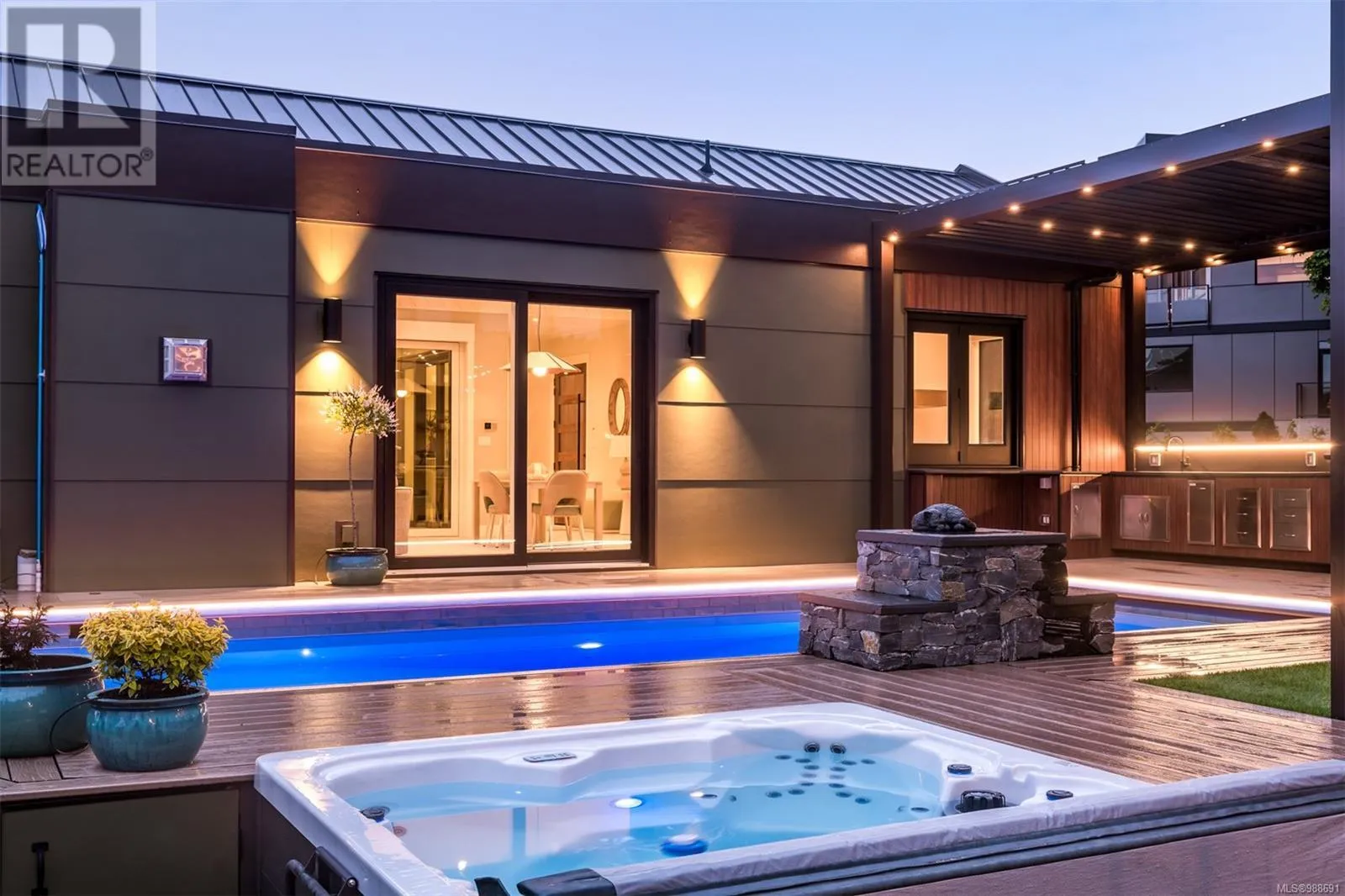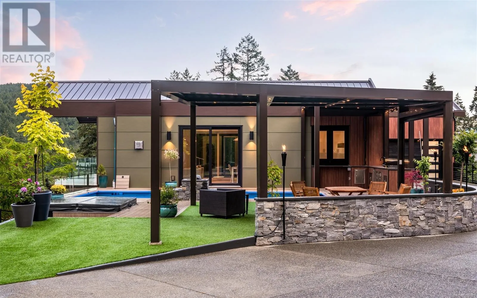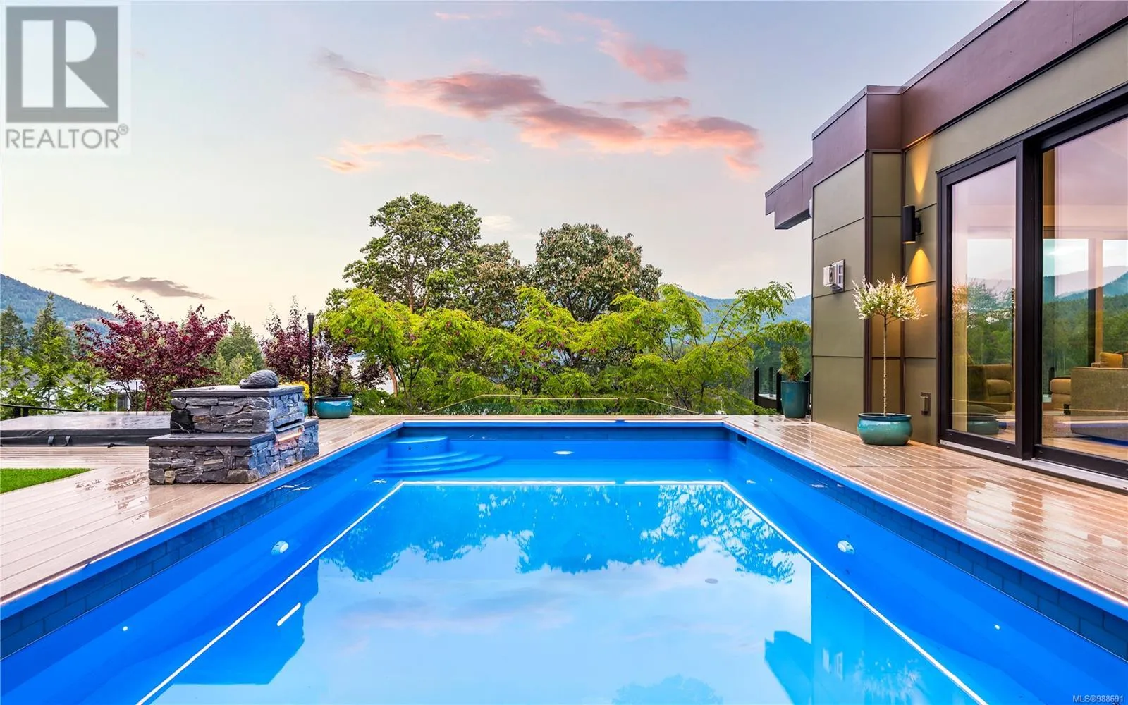 Rare find in Maple Bay, a west coast destination on Vancouver Island! This DOUBLE LOT, w/2 titles, features a $3.95M stunning main home (0.27 acre) & a $1.95M carriage house (0.3 acre)...a gated ocean-view estate blending indoor & outdoor living. Ideal for multi-generational living, it incl a newly built 4-bd main home with a 2-vehicle garage, plus a 2-bd carriage house w/garage capacity for 6 vehicles. The resort-style property boasts a custom sports pool w/auto cover, a separate pool house, outdoor kitchen, cascading stone waterfall, and a full-size pickleball court, & lanai w/remote controlled opening roofs & shade screens. The Scandinavian-inspired home features minimalist design, sleek modern lines, & ocean views from nearly every room. Meticulous craftsmanship incl soundproofing, automated systems, 4 fireplaces, lift-and-slide doors ($250k+), the highest quality windows ($30k+), vaulted ceilings, and innovative storage. The upper level offers one-level living with a bedroom + ensuite, luxurious kitchen, custom cabinetry, high-end appliances, a quartz backsplash extending to the vaulted ceiling, and a bi-fold window connecting indoor & outdoor kitchens. The primary bedroom features expansive sliding doors framing ocean views, while the spa-like ensuite boasts a 10' wall-hung vanity, custom tile valences, waterproof blinds, and a teak-floor shower room. A courtyard living room with a fireplace enhances outdoor enjoyment. The lower level includes 2 more bedrooms, day kitchen, a family room, a yoga room, and a private deck. The separate 2-bedroom carriage house also enjoys ocean views, deck space, & 6-vehicle garage. The $2M in hardscaping & landscaping completes this incredible property. Perfect for boaters (MB Marina/Boatyard & Yacht Club steps away), car enthusiasts (VI Motorsport Circuit 20 min away), and professionals (new hospital 10 min away). 5 min walk to the Marina for float plane service to Vancouver. Nominated for 2024 CARE Award Project of the Year. (id:27476)