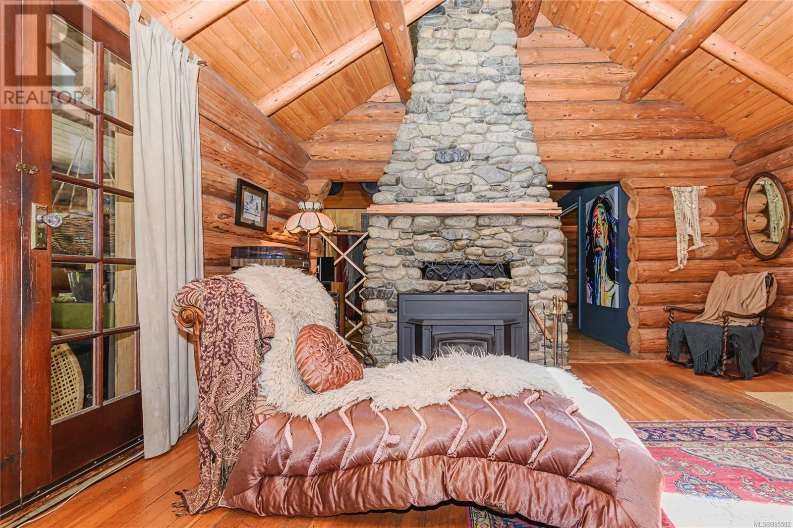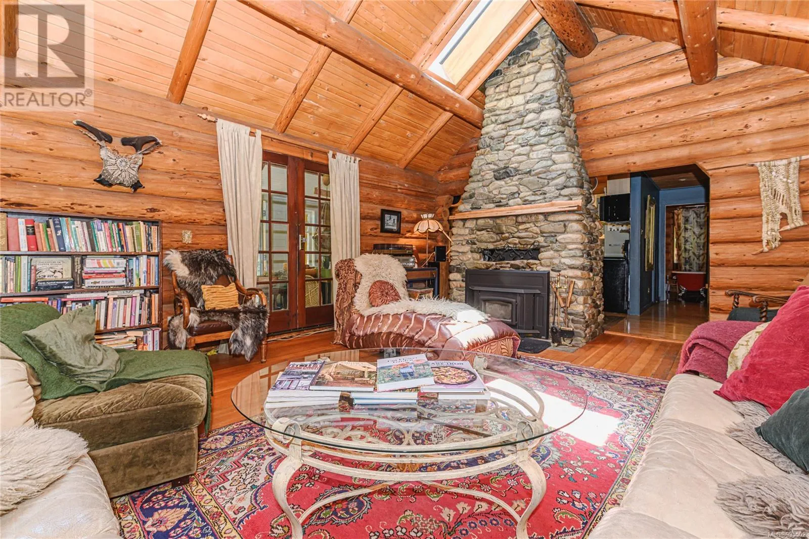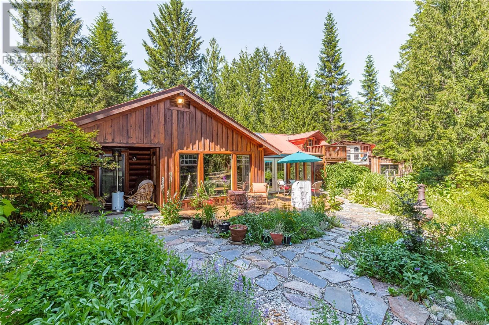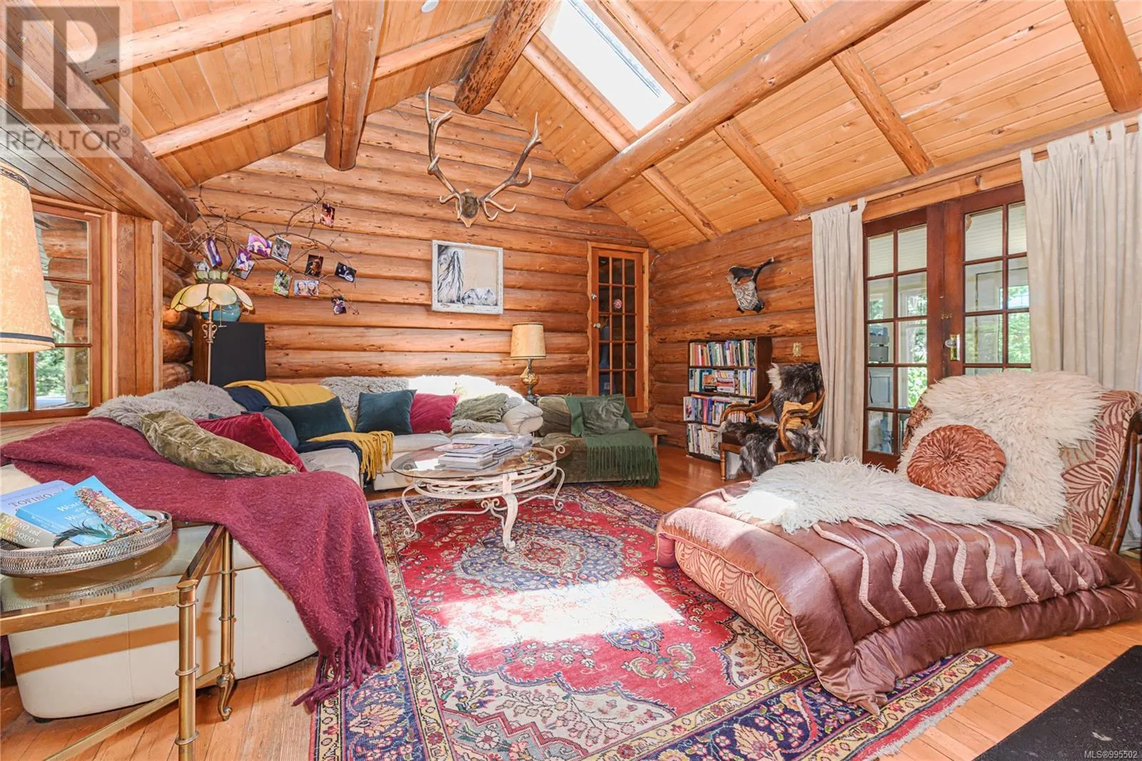Magical full scribe handcrafted log home w metal roof on 5 picturesque acres. Less than 3 km from Cowichan River Provincial Park for tubing and swimming! This stunning home has primary bedroom on the main level as well a 2nd primary bedroom encompassing the 2nd floor w a deck overlooking the park like property. Living room w vaulted ceiling and skylights & fireplace w new wood insert. Sunroom currently used as 3rd bedroom in main home, beckons off of the living and has an exterior door to over 350 sq ft of deck. WETT inspected cookstove w stone hearth backs onto the fireplace and welcomes you into the open concept kitchen/dining area. New kitchen appliances in 2023. Remodelled laundry w exterior access off of kitchen. New eco toilet in 4 pc bath. 600 sq ft newly finished workshop or garage with guest area above. 2nd guest cottage w woodstove, covered porch and outdoor shower. Established gardens, fruit trees, chicken coop w loft, fire pit, sauna & hot tub! Only 16 km from Duncan (id:27476)