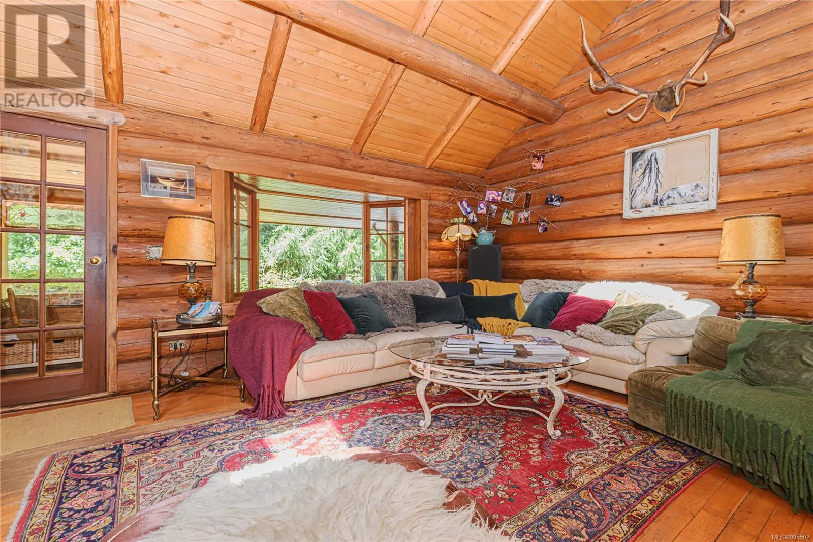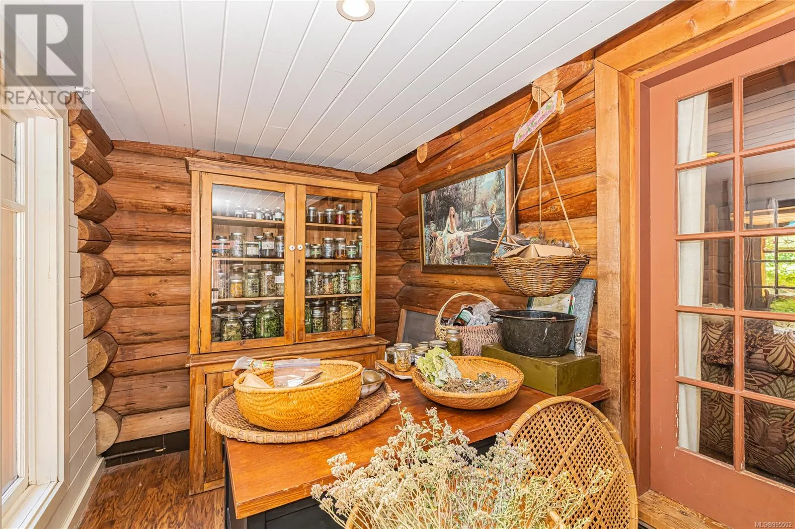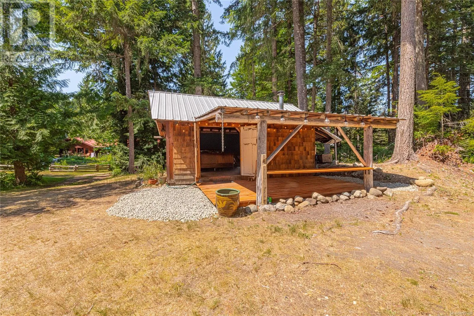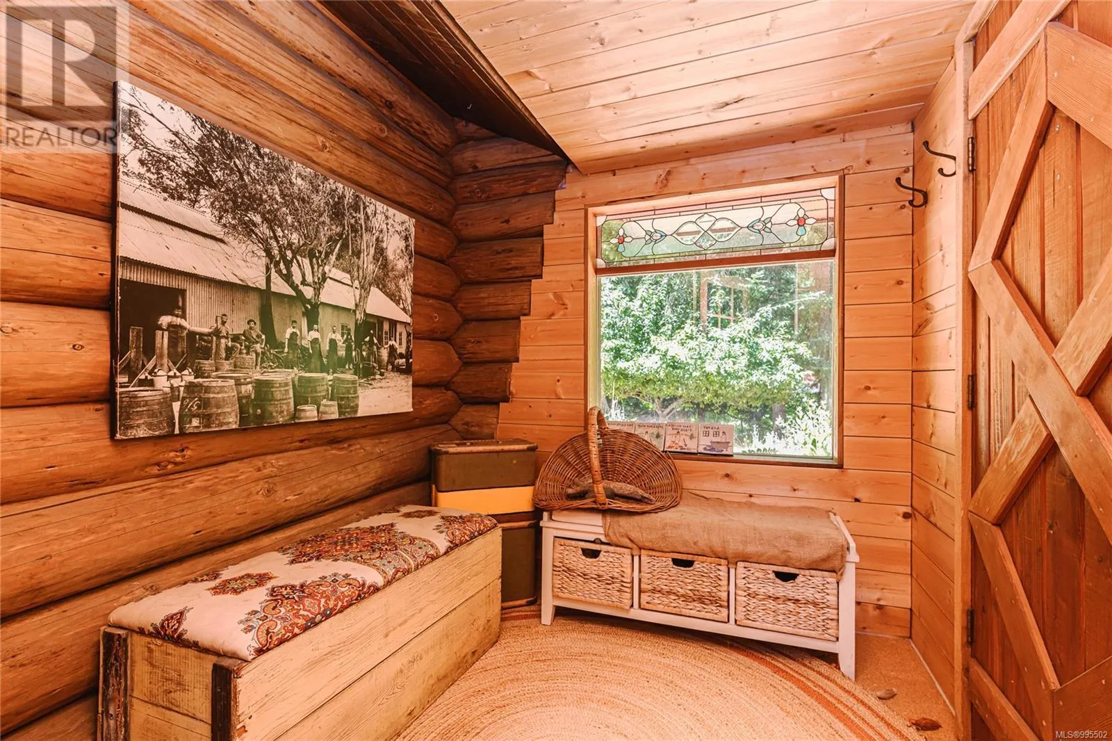 Magical full scribe handcrafted log home w metal roof on 5 picturesque acres. Less than 3 km from Cowichan River Provincial Park for tubing and swimming! This stunning home has primary bedroom on the main level as well a 2nd primary bedroom encompassing the 2nd floor w a deck overlooking the park like property. Living room w vaulted ceiling and skylights & fireplace w new wood insert. Sunroom currently used as 3rd bedroom in main home, beckons off of the living and has an exterior door to over 350 sq ft of deck. WETT inspected cookstove w stone hearth backs onto the fireplace and welcomes you into the open concept kitchen/dining area. New kitchen appliances in 2023. Remodelled laundry w exterior access off of kitchen. New eco toilet in 4 pc bath. 600 sq ft newly finished workshop or garage with guest area above. 2nd guest cottage w woodstove, covered porch and outdoor shower. Established gardens, fruit trees, chicken coop w loft, fire pit, sauna & hot tub! Only 16 km from Duncan (id:27476)