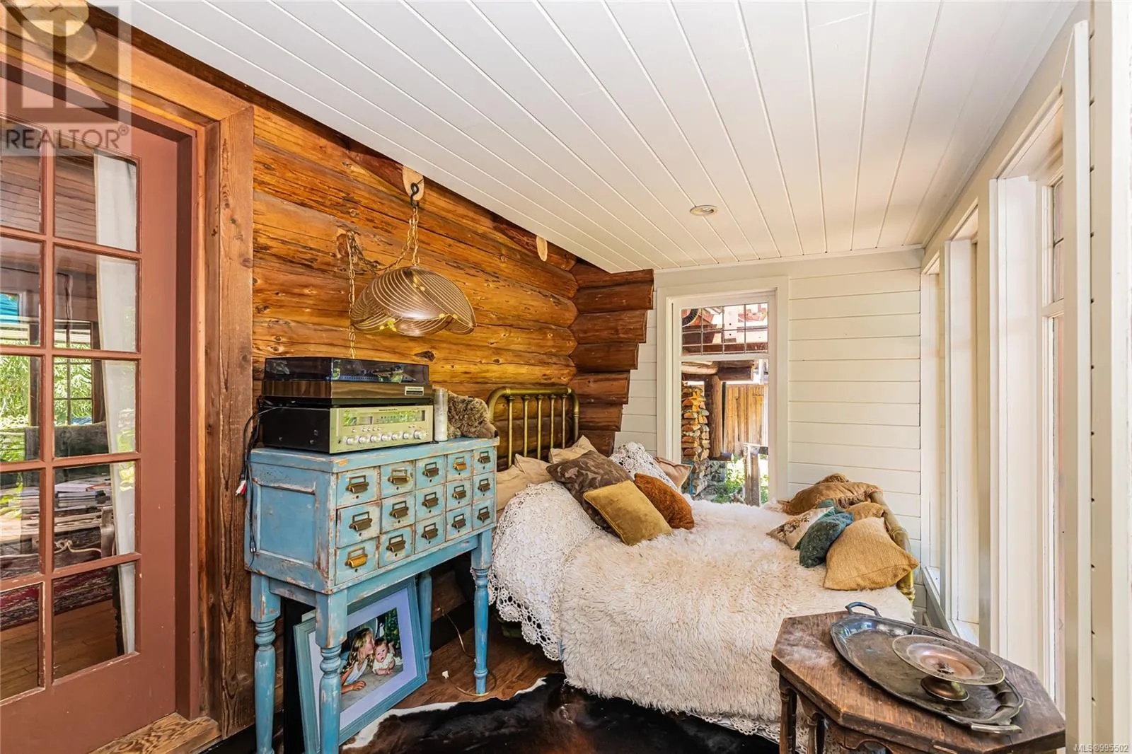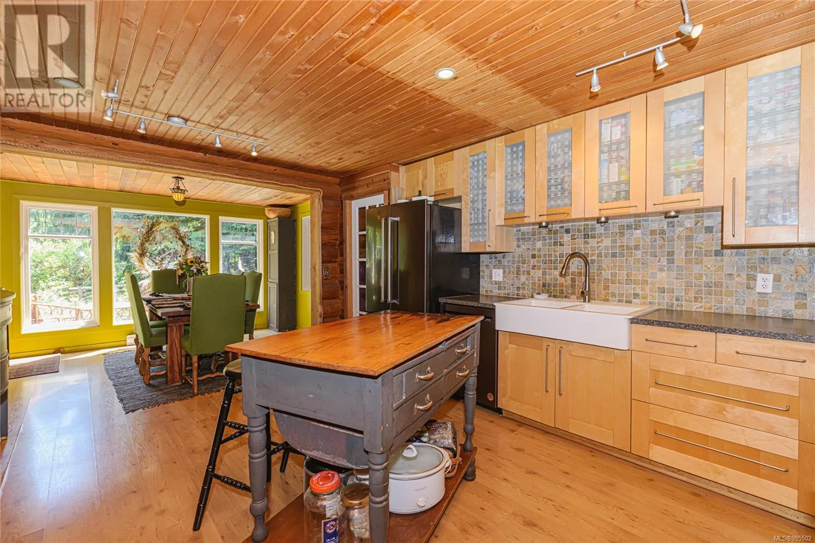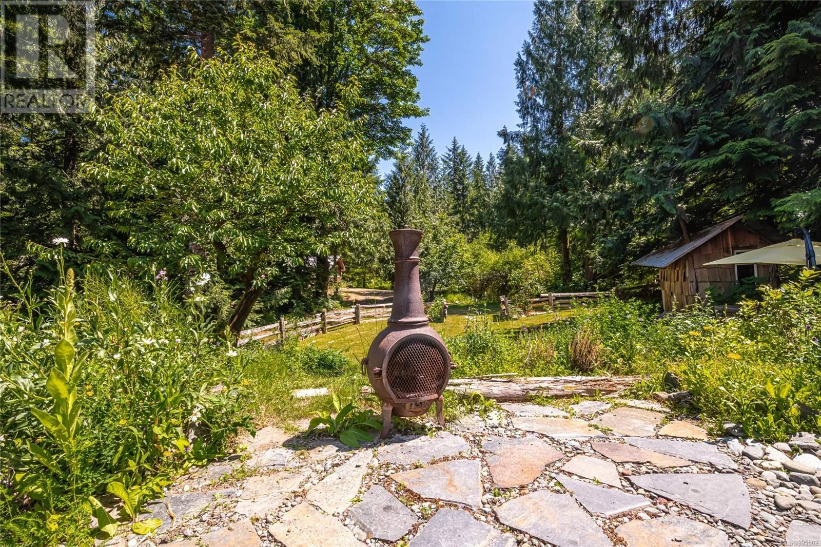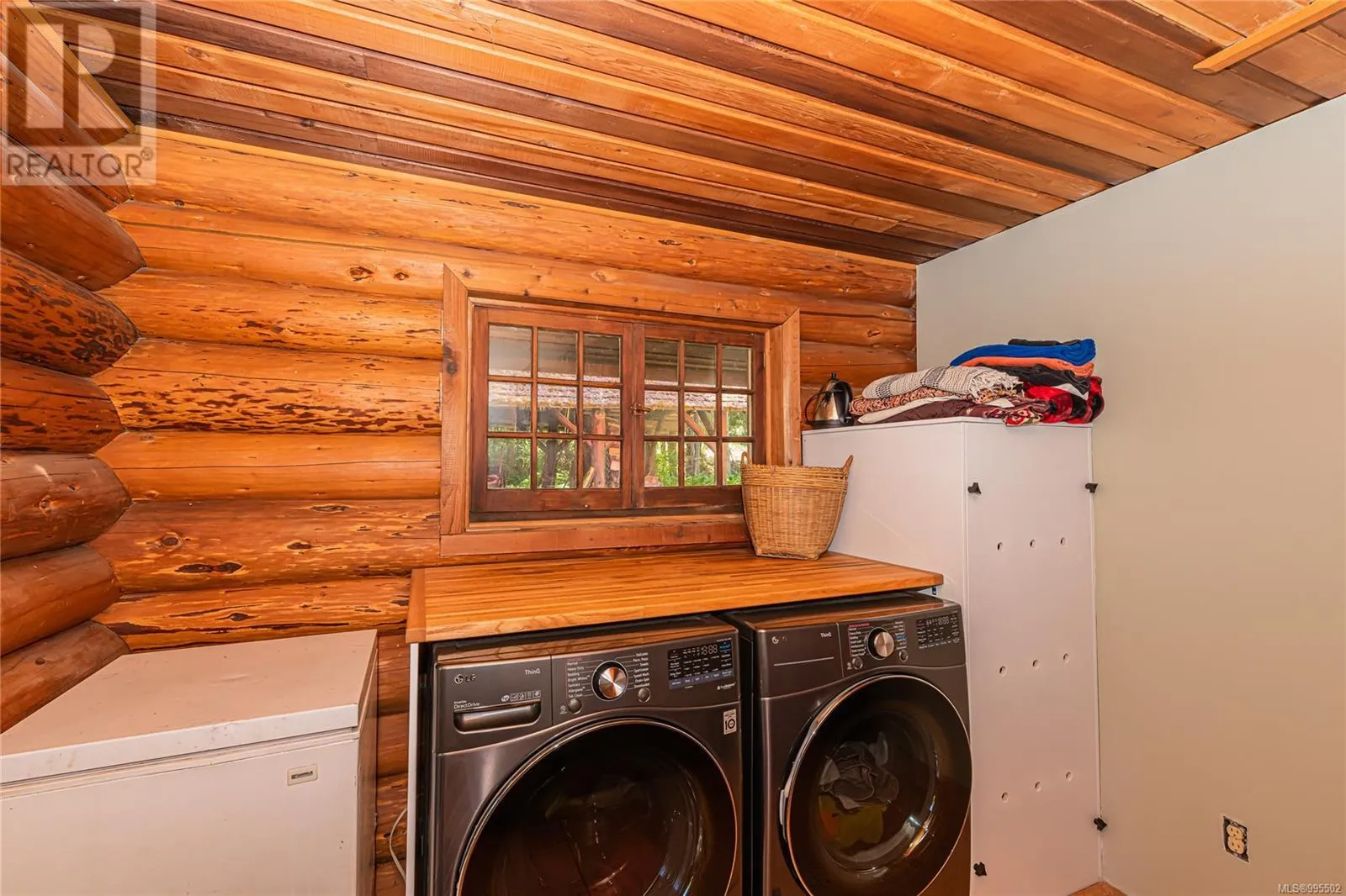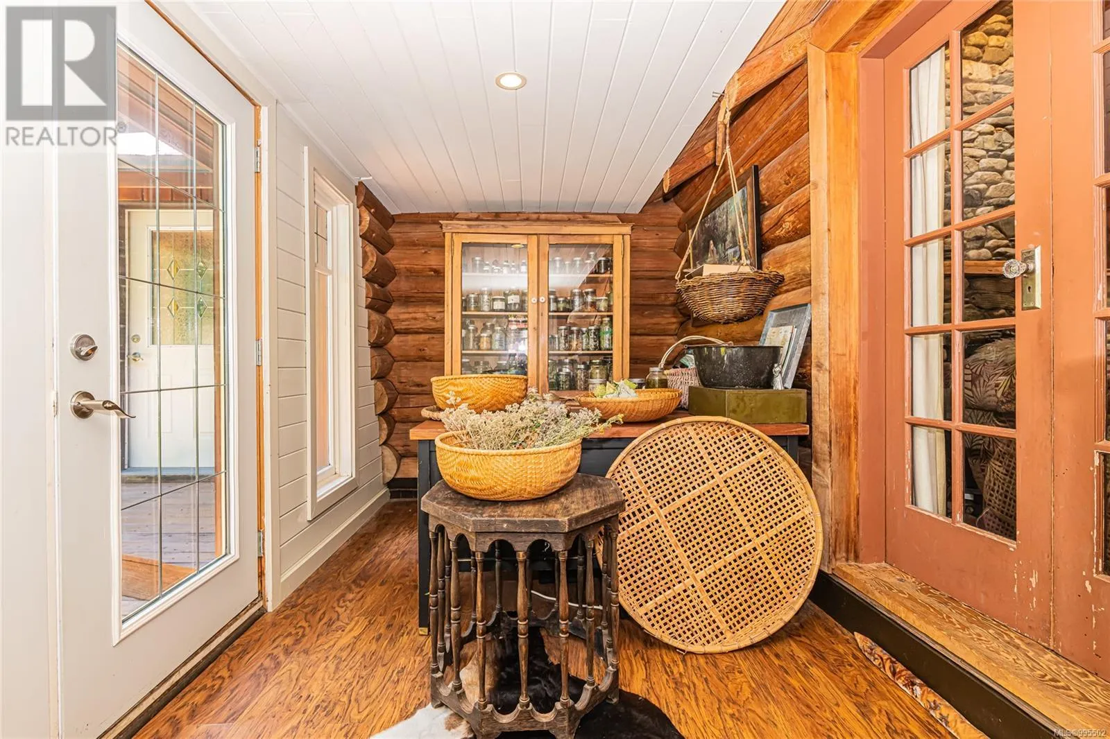 Magical full scribe handcrafted log home w metal roof on 5 picturesque acres. Less than 3 km from Cowichan River Provincial Park for tubing and swimming! This stunning home has primary bedroom on the main level as well a 2nd primary bedroom encompassing the 2nd floor w a deck overlooking the park like property. Living room w vaulted ceiling and skylights & fireplace w new wood insert. Sunroom currently used as 3rd bedroom in main home, beckons off of the living and has an exterior door to over 350 sq ft of deck. WETT inspected cookstove w stone hearth backs onto the fireplace and welcomes you into the open concept kitchen/dining area. New kitchen appliances in 2023. Remodelled laundry w exterior access off of kitchen. New eco toilet in 4 pc bath. 600 sq ft newly finished workshop or garage with guest area above. 2nd guest cottage w woodstove, covered porch and outdoor shower. Established gardens, fruit trees, chicken coop w loft, fire pit, sauna & hot tub! Only 16 km from Duncan (id:27476)