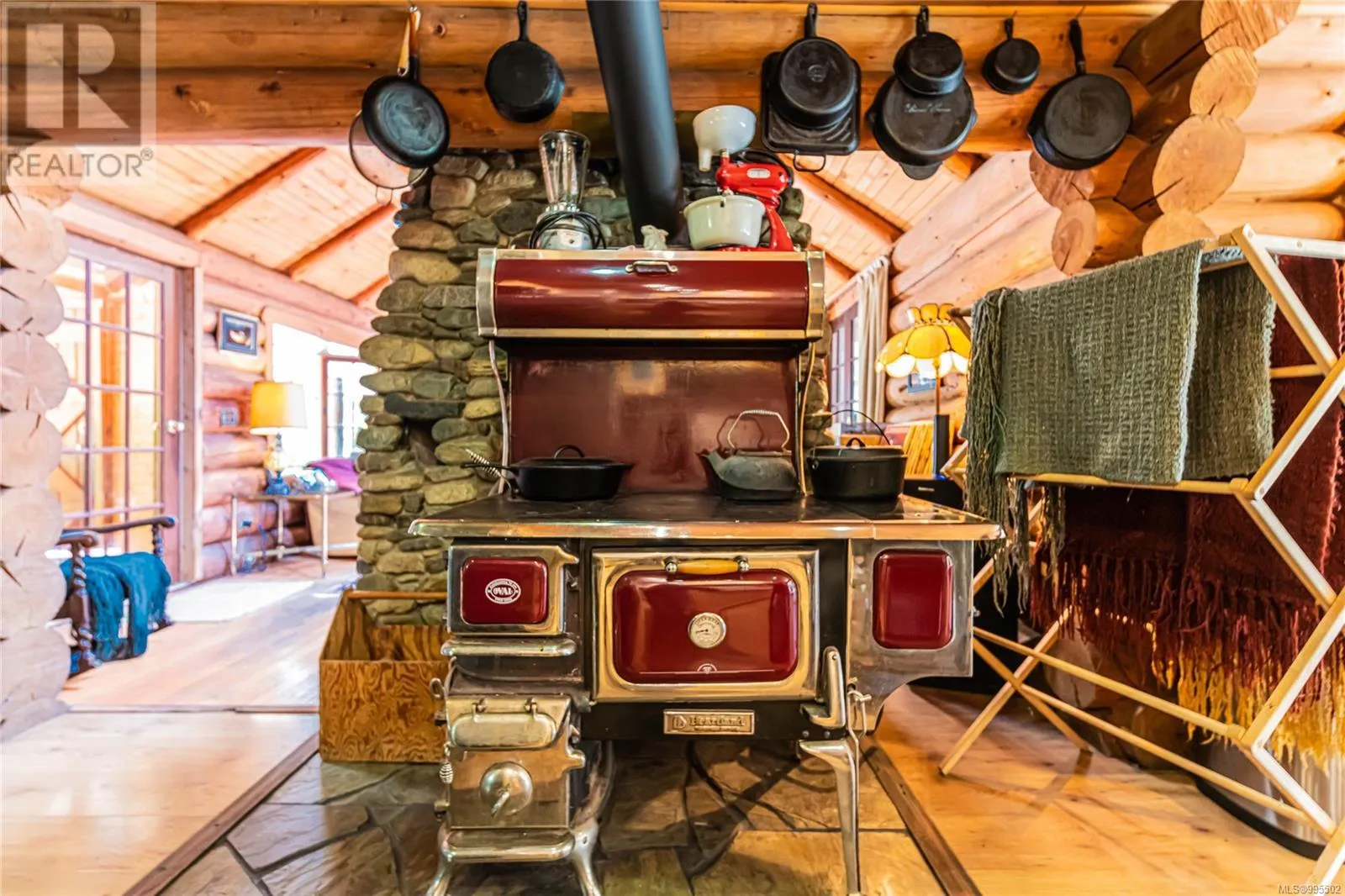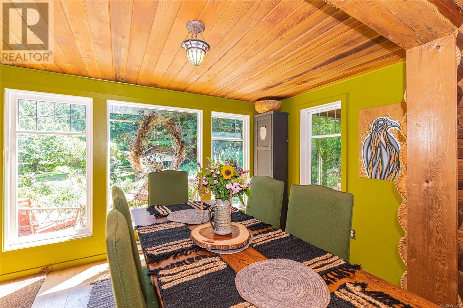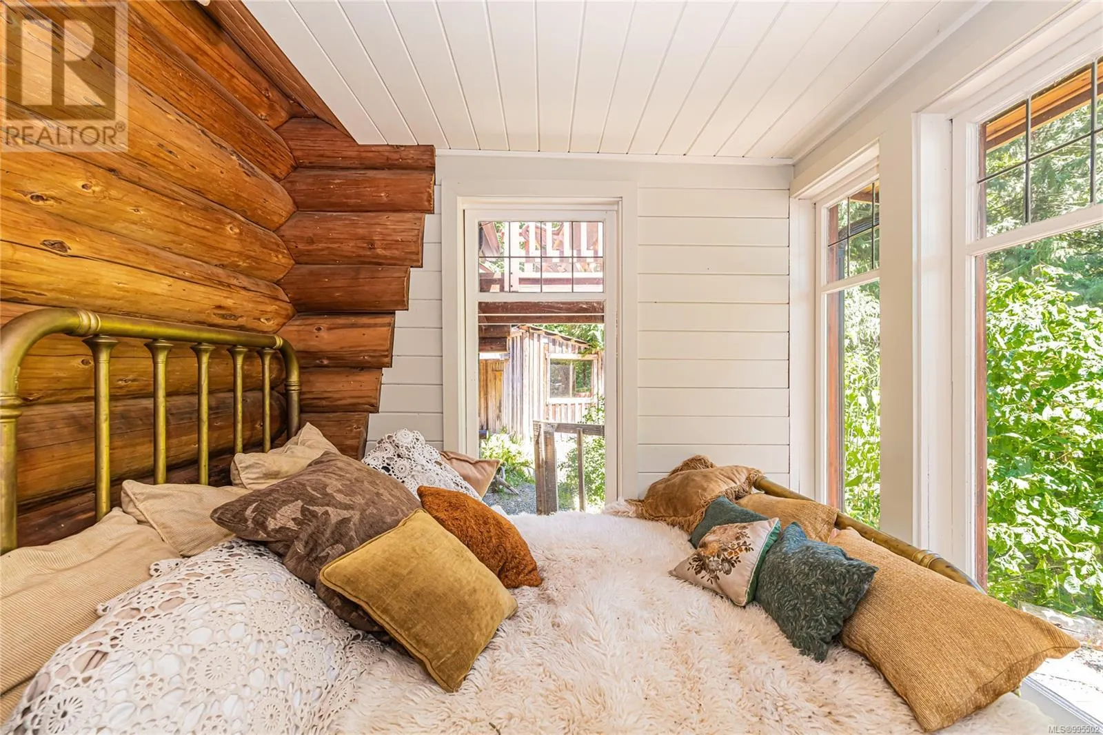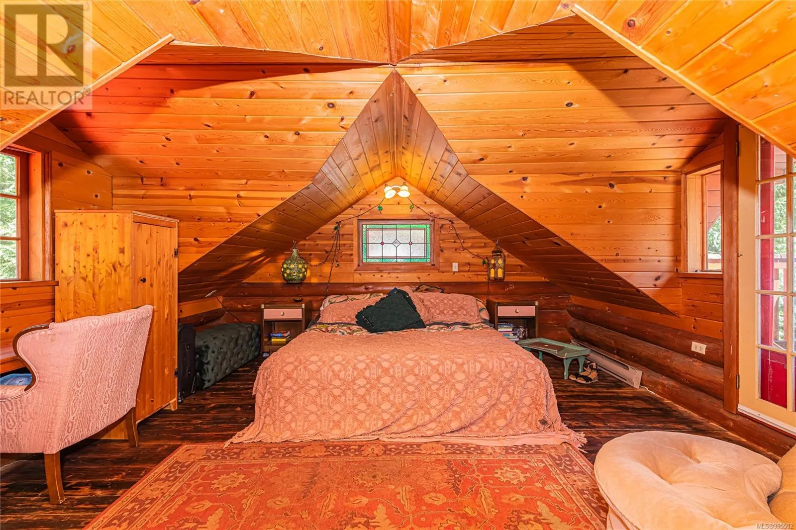 Magical full scribe handcrafted log home w metal roof on 5 picturesque acres. Less than 3 km from Cowichan River Provincial Park for tubing and swimming! This stunning home has primary bedroom on the main level as well a 2nd primary bedroom encompassing the 2nd floor w a deck overlooking the park like property. Living room w vaulted ceiling and skylights & fireplace w new wood insert. Sunroom currently used as 3rd bedroom in main home, beckons off of the living and has an exterior door to over 350 sq ft of deck. WETT inspected cookstove w stone hearth backs onto the fireplace and welcomes you into the open concept kitchen/dining area. New kitchen appliances in 2023. Remodelled laundry w exterior access off of kitchen. New eco toilet in 4 pc bath. 600 sq ft newly finished workshop or garage with guest area above. 2nd guest cottage w woodstove, covered porch and outdoor shower. Established gardens, fruit trees, chicken coop w loft, fire pit, sauna & hot tub! Only 16 km from Duncan (id:27476)