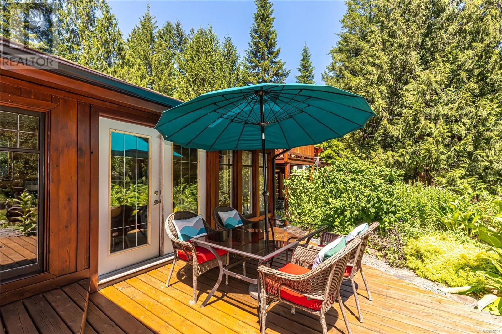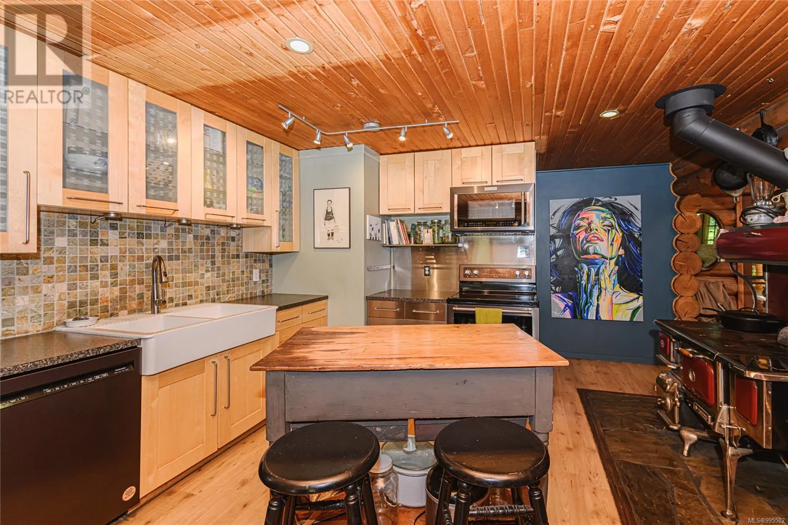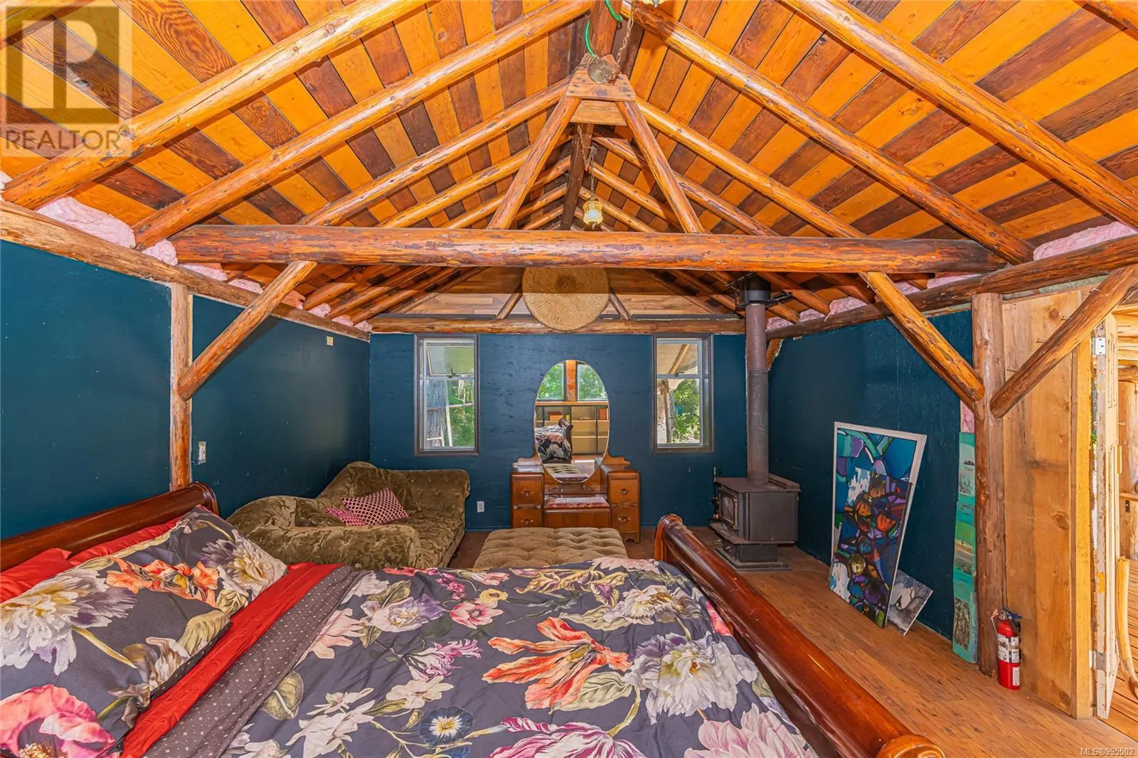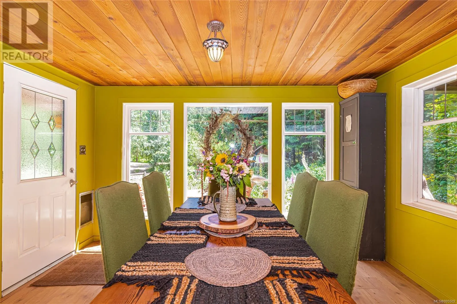 Magical full scribe handcrafted log home w metal roof on 5 picturesque acres. Less than 3 km from Cowichan River Provincial Park for tubing and swimming! This stunning home has primary bedroom on the main level as well a 2nd primary bedroom encompassing the 2nd floor w a deck overlooking the park like property. Living room w vaulted ceiling and skylights & fireplace w new wood insert. Sunroom currently used as 3rd bedroom in main home, beckons off of the living and has an exterior door to over 350 sq ft of deck. WETT inspected cookstove w stone hearth backs onto the fireplace and welcomes you into the open concept kitchen/dining area. New kitchen appliances in 2023. Remodelled laundry w exterior access off of kitchen. New eco toilet in 4 pc bath. 600 sq ft newly finished workshop or garage with guest area above. 2nd guest cottage w woodstove, covered porch and outdoor shower. Established gardens, fruit trees, chicken coop w loft, fire pit, sauna & hot tub! Only 16 km from Duncan (id:27476)