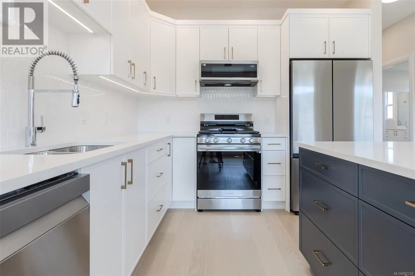 This stunning property is main-level living offering both luxury & convenience. Inside, you'll be impressed by the high-end finishings, including engineered hardwood floors, quartz countertops, & ceramic tile in the bathrooms & laundry. The open-concept design, 9 ft ceilings, & plenty of windows make this space feel bright & spacious. Attention to detail is evident throughout, with extensive sound insulation to ensure peace & quiet. Equipped with a heat pump, ensuring not only energy efficiency but also year-round comfort. The spacious backyard is ideal for entertaining guests while the private front courtyard is available for coffee when the sun is right. This location is unbeatable, close to popular hiking/biking trails on Mount Tzouhalem and Maple Bay Beach. You'll love the convenience of being close to all amenities while still feeling like you're in your own private oasis. Price plus GST (id:27476)