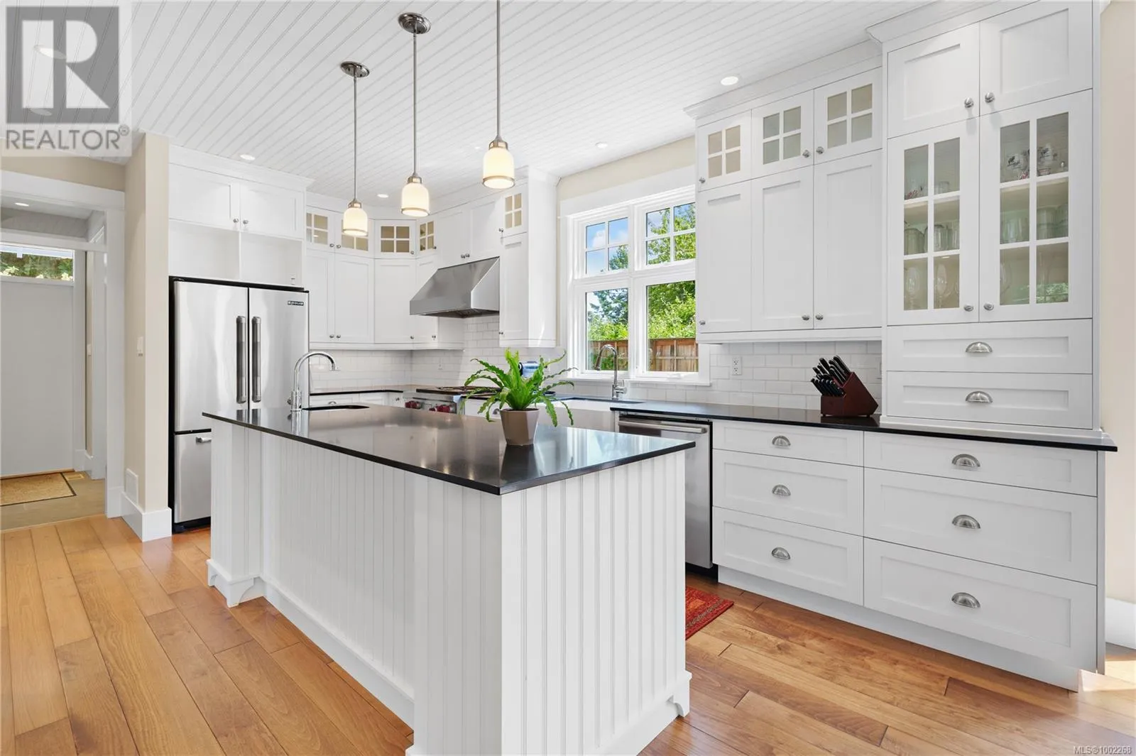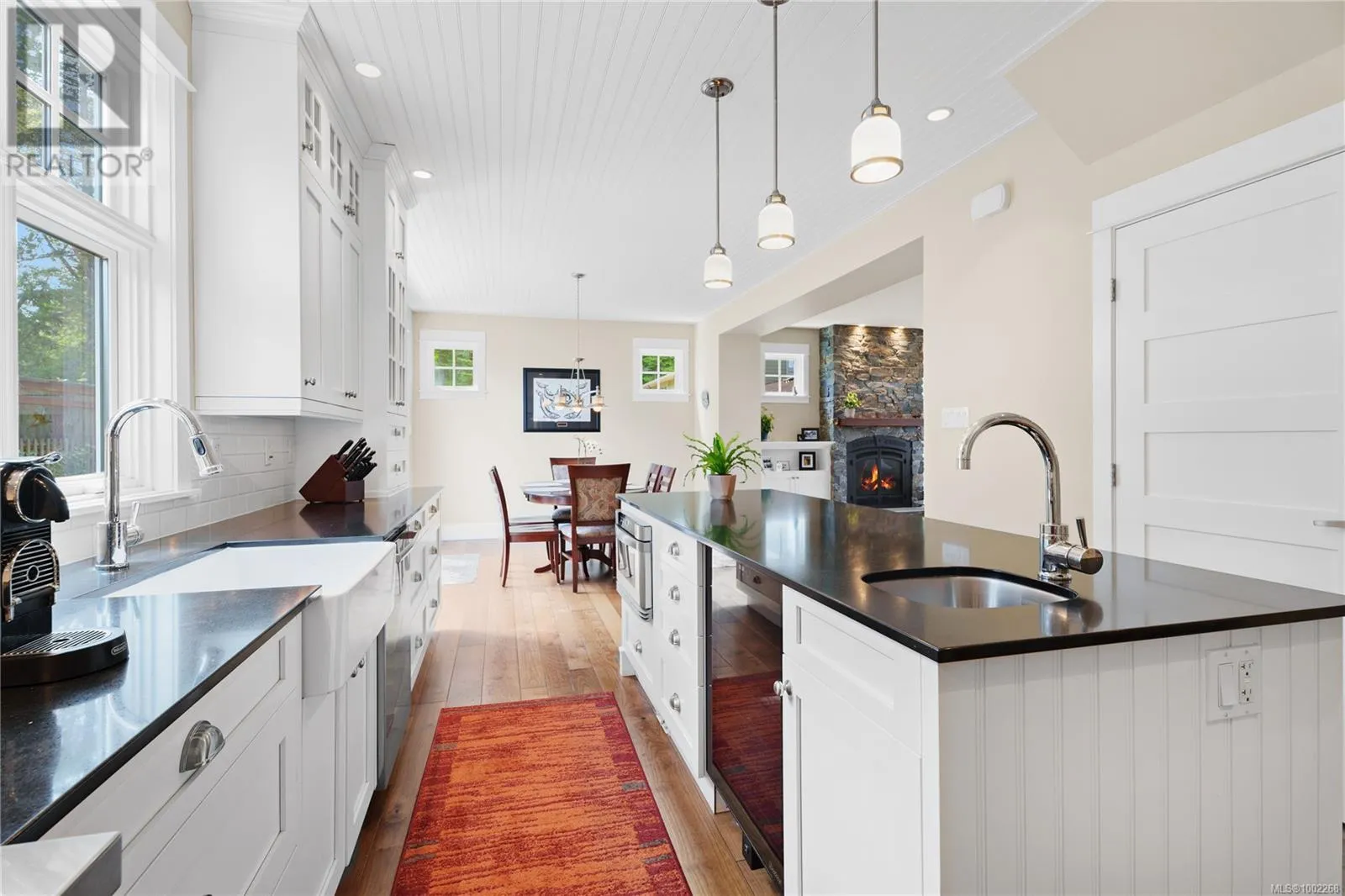 Spectacular custom built home with ocean views front and back, and just steps from Genoa Bay Marina! At 3850 sq. ft. total, with 2650 sq. ft. finished, this home has been built and finished with no expense spared. This home was constructed in 2009 to reflect the style of a 1930âs east coast seaside home. The yard is fully fenced and the backyard very private. When you enter the home through the oversized period front door you will feel the warmth and charm of the waxed wide plank wood flooring, and open space on the main floor. The wood finished windows are large and allow for lots of natural light and views to all directions. The custom kitchen with floor-to-ceiling cabinetry and quartz and marble countertops, and top end appliances (Wolf range, Jenn-air fridge) will inspire you. Upstairs you will find the media room and den along with the master bedroom and luxurious ensuite bath. Steps from the main house, you will find a guest suite located over the garage, perfect when company arrives! This is a most scenic and peaceful area, favorite among locals and visitors alike! (id:27476)