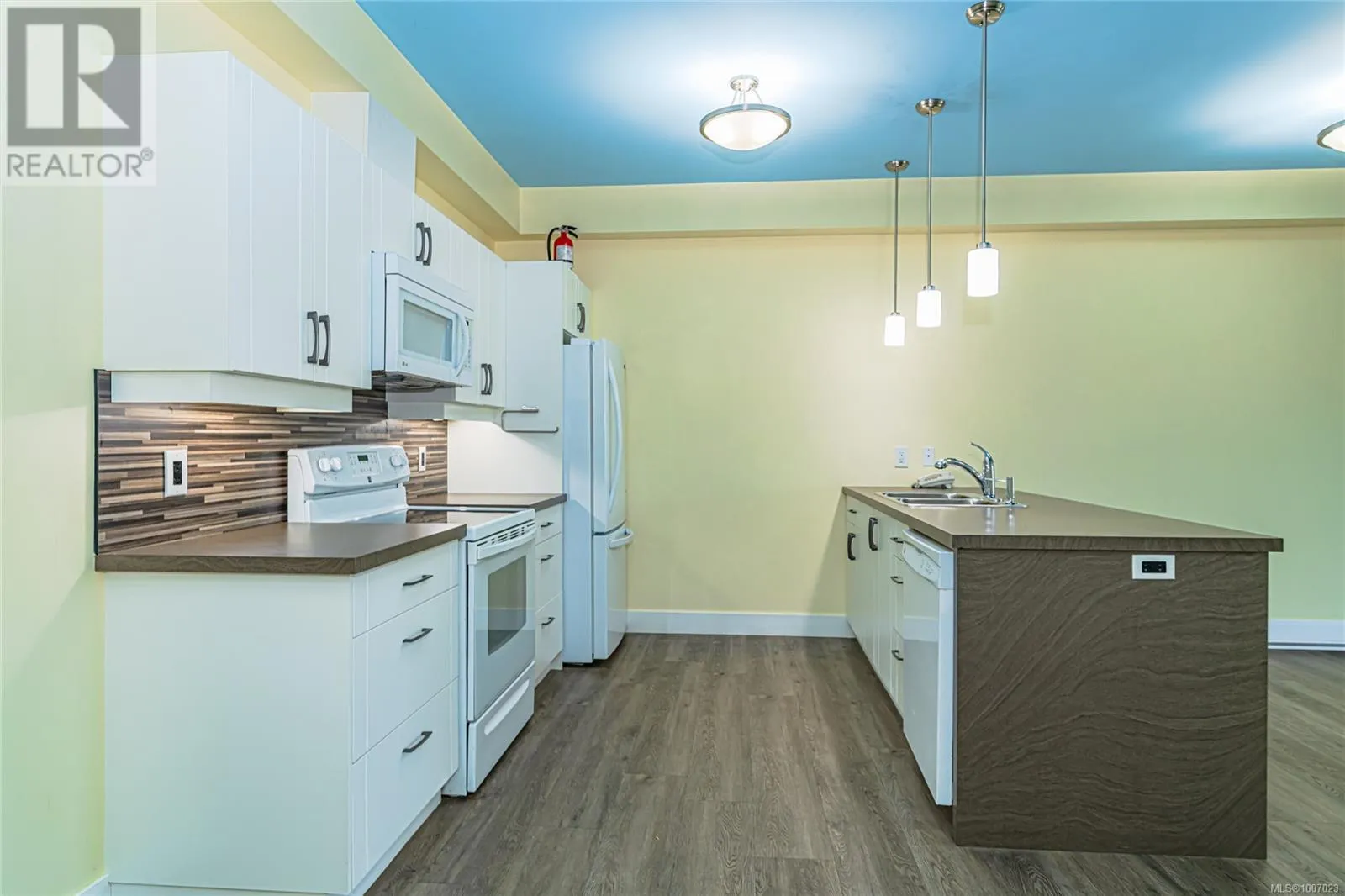 Seller Motivated!! The Rossco in Duncan! Built in 2014 the well-maintained spacious 1045 sq.ft., 1-BED+den unit offers a bright contemporary layout with: heat pump for efficient heating & cooling capability, 9' ceilings, high-quality wide-plank flooring, sleek kitchen with sit-up bar and an open concept living space. The separate bedroom has a large walk-in closet and cheater access to the 4PC bathroom. The den can be used as studio, office, or extra sleeping space. In-suite laundry, large in-suite storage room for owners' convenience, and east-facing balcony finish off the living space. The ROSSCO offers secure entry and parking, bike storage, an equipped gym and large rooftop patio for gardening, gatherings and BBQs. Cats and dogs are welcome (no size or breed restriction) two pets allowed. Walkable to the rec centre, library, theatre, university, restaurants, and shopping, this attractive and affordable condo will tick all your boxes. (id:27476)
