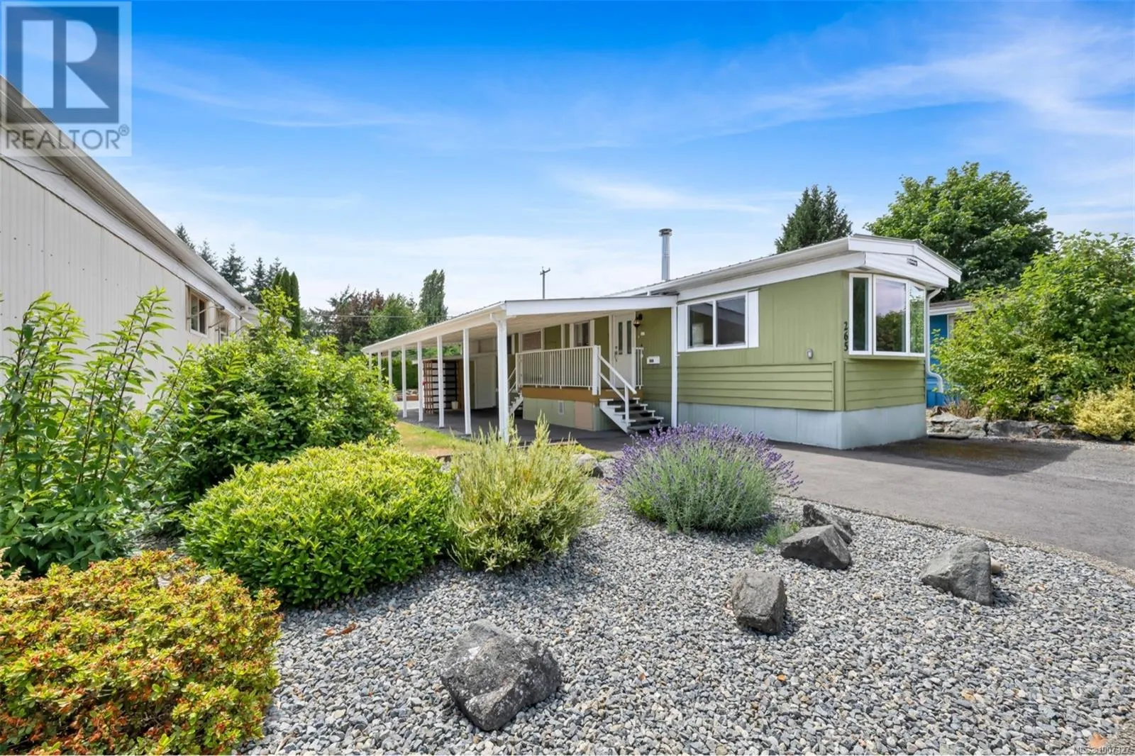 Here's a wonderful place to call home; this exceptionally well-cared-for two-bedroom, one-bathroom home is the perfect package and stands out, showing fantastic value. Situated in the welcoming community of the ever-popular, well-managed 55-plus Silver Park complex. Ready for you in move-in condition, with all the necessary updates, including thermal windows and a metal roof. Efficiently heated and cooled with the use of the ductless Heat Pump, backed up by an electric forced-air unit, plus the option to relax with the warm, comfortable heat from the woodstove. Enjoy one of the nicest low-maintenance yards in the complex, featuring lovely tiered landscaping, vegetable garden beds, and a patio area perfect for sitting back, relaxing, and taking it all in. Convenient covered entry, carport, storage shed, and an extra parking spot. Great South Duncan location with easy highway access to explore up and down the Island, and only a short ride into town. (id:27476)