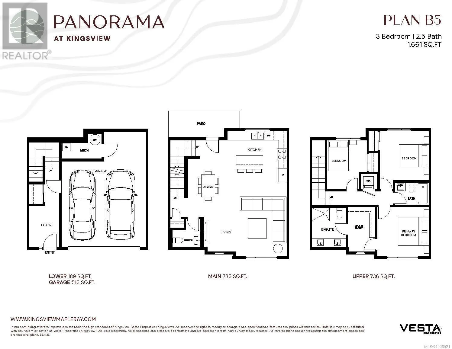 Panorama at Kingsview is a new collection of affordable, well-crafted townhomes designed for easy living in a scenic natural setting. Set in one of the Cowichan Valleyâs most desirable neighbourhoods, this community offers beautiful valley views and direct access to hiking and biking trails. This home features approx. 1,661 sqft of thoughtfully designed living space, including 3 bedrooms, 3 bathrooms, and a double car garage. Interiors boast bright, open-concept layouts with premium finishes, modern kitchens, and flexible spaces that suit a variety of lifestyles. Built with Vestaâs signature attention to detail and craftsmanship, these homes are also exempt from Property Transfer Taxâmaking them an ideal choice for first-time buyers, young families, or anyone looking to right-size without compromise. (id:27476)