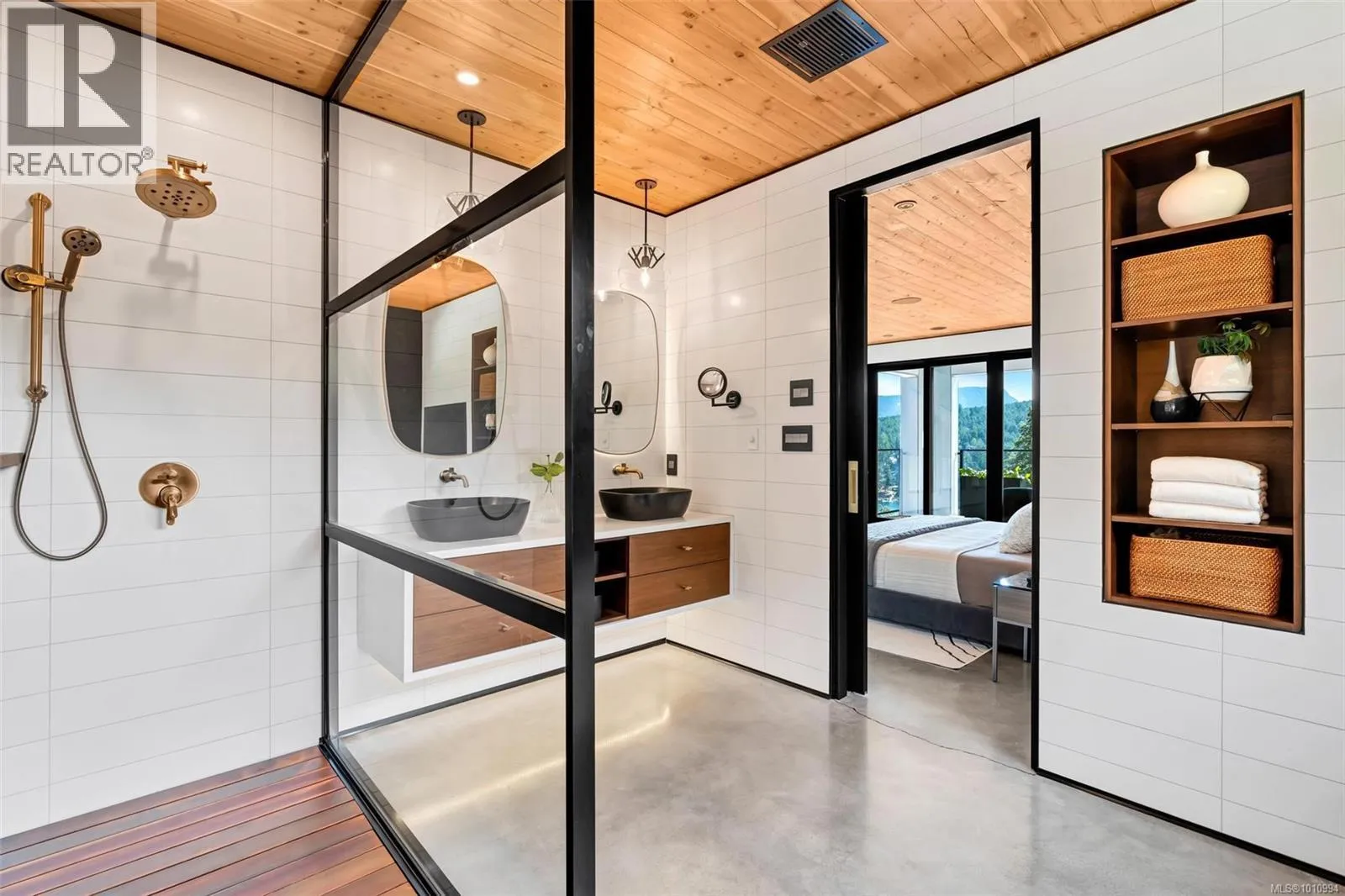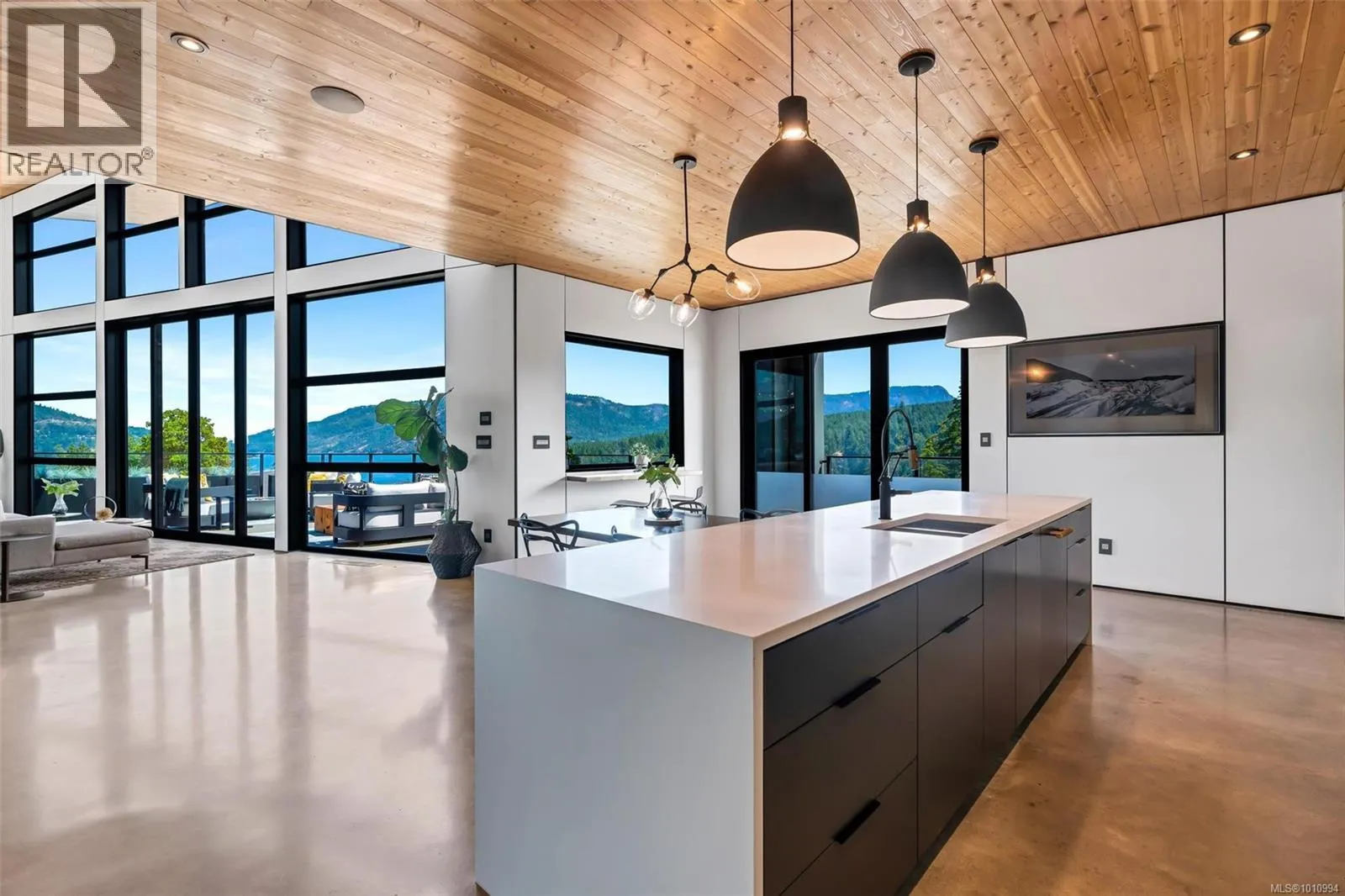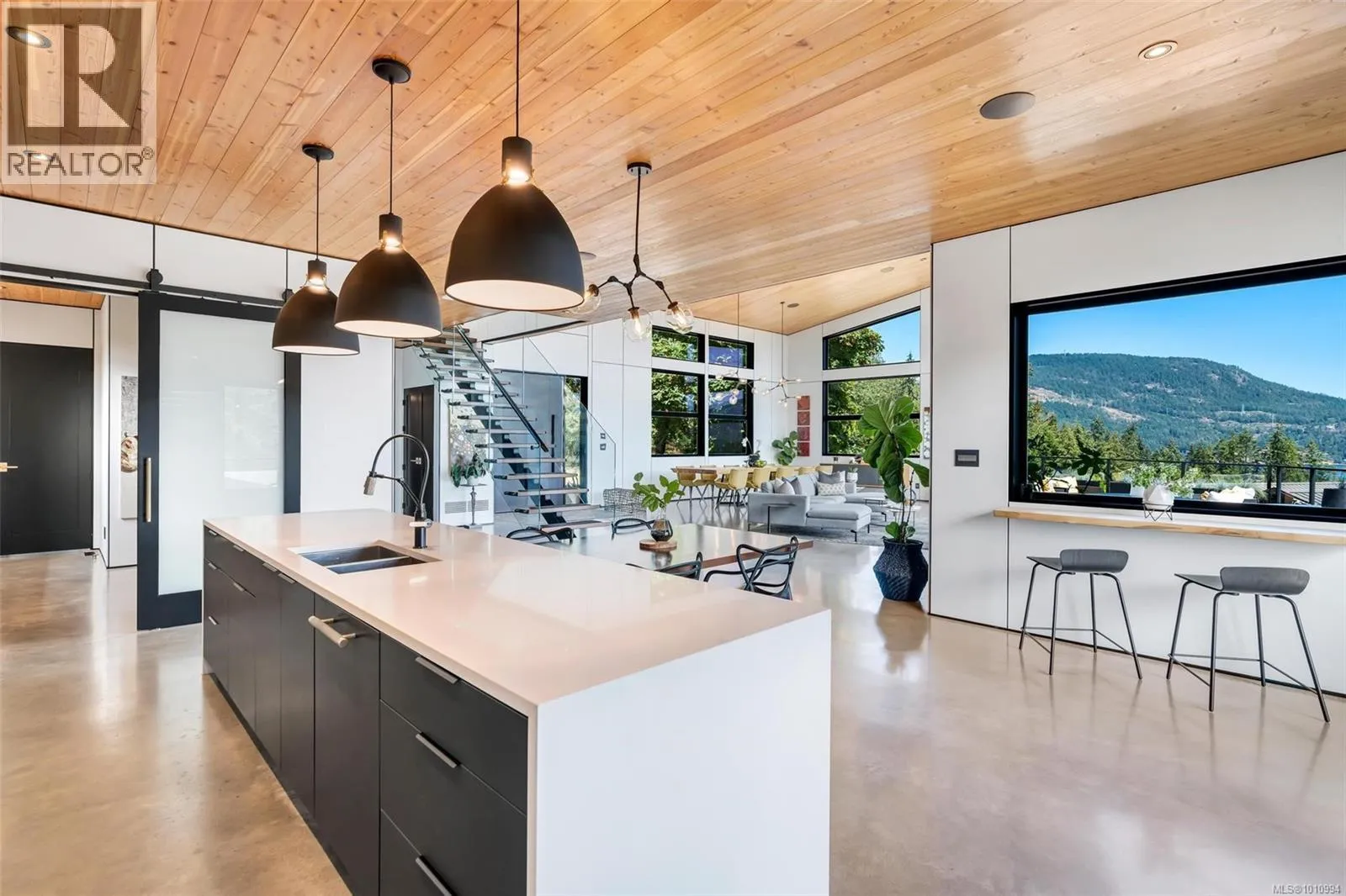 Stunning West Coast Executive Home offering luxury living at its finest overlooking gorgeous Maple Bay! With 4795 sq/ft of crafted living space, this unique residence boasts unparalleled quality that will captivate the most discerning buyer. The chef's kitchen is a culinary dream with Sub-Zero/Miele appliances and gleaming quartz waterfall countertops. A walk-in ''Butler Pantry'' provides additional space for all your epicurean adventures. The home showcases a custom floating staircase in addition to a hydraulic elevator. The primary bedroom on the upper level is a true sanctuary, complete with a spa-like ensuite with walk-in shower and teak floors, while the partially finished lowest level of the home awaits your design ideas. Outdoor living space is equally impressive, with 4 spacious decks adding 2400 sq/ft of living space, creating an oasis for outdoor dining or stargazing. Breathtaking ocean views from almost every room offer a constant reminder of the natural beauty of the area. (id:27476)