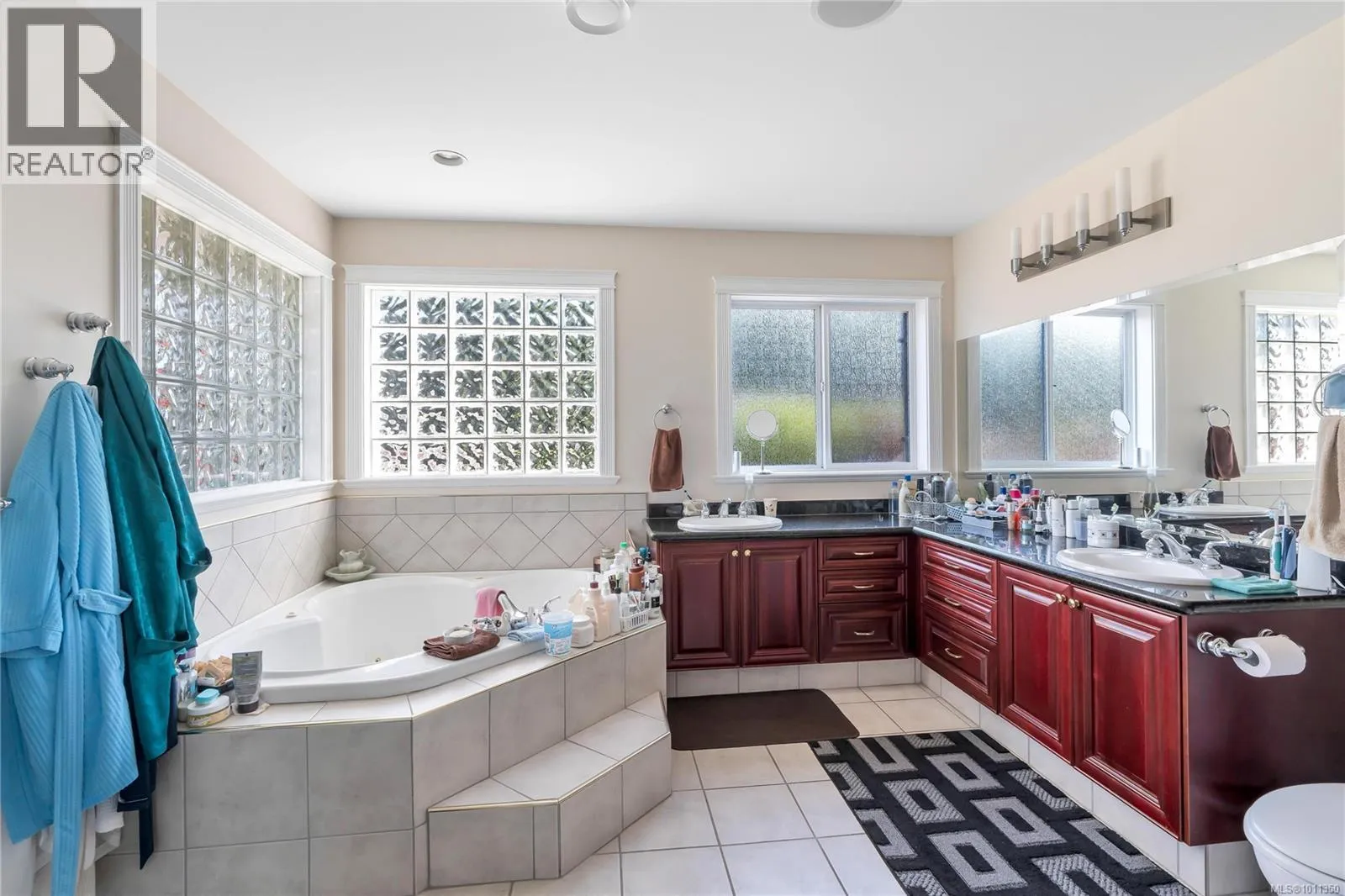 Welcome to Kensington Estates in the beautiful Cowichan Valley. This 2003 custom-built residence sits on a private half-acre lot in a quiet cul-de-sac surrounded by green space. With 5 bedrooms and 6 bathrooms, including a legal 1-bedroom suite, the 5,400 sq/ft layout is designed for both entertaining and family living. Quality features include granite countertops, heated tile floors, a gas fireplace, two heat pumps, two laundry areas, on-demand hot water, triple-bay garage, irrigation system, and argon gas windows. Expansive patios and decks overlook the landscaped yard, creating a perfect setting for summer evenings. Ideally located near wineries, farms, and just minutes to shops, cafés, and amenities. The upcoming Cowichan District Hospital (completion 2026) adds even more value to this sought-after location. A rare opportunity to own a spacious custom home in one of Southern Vancouver Islandâs most desirable communities. (id:27476)
