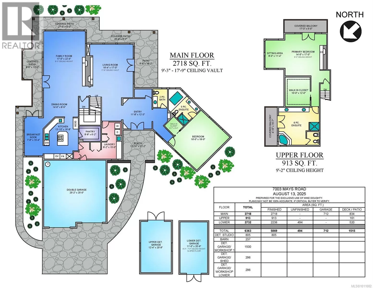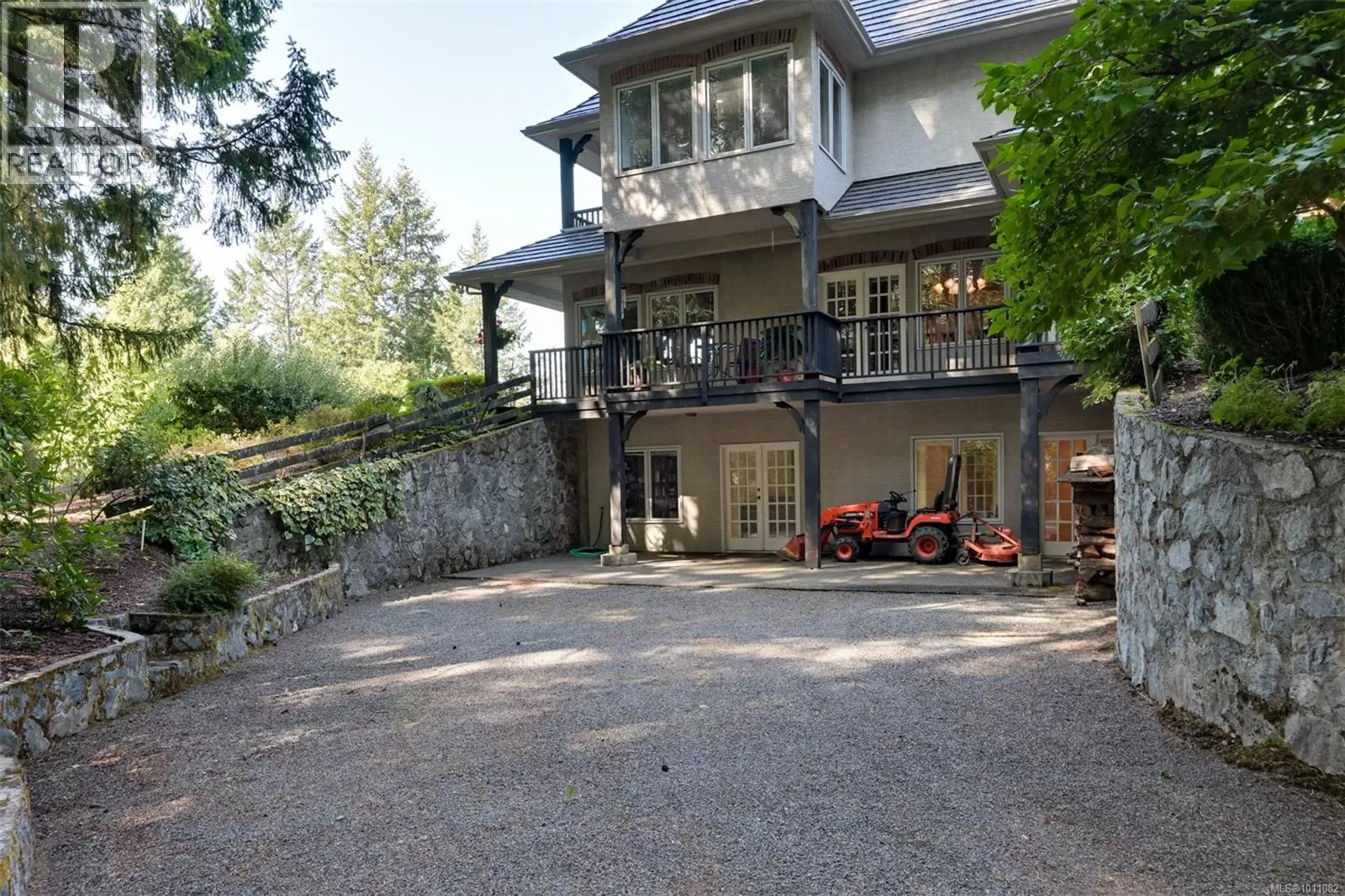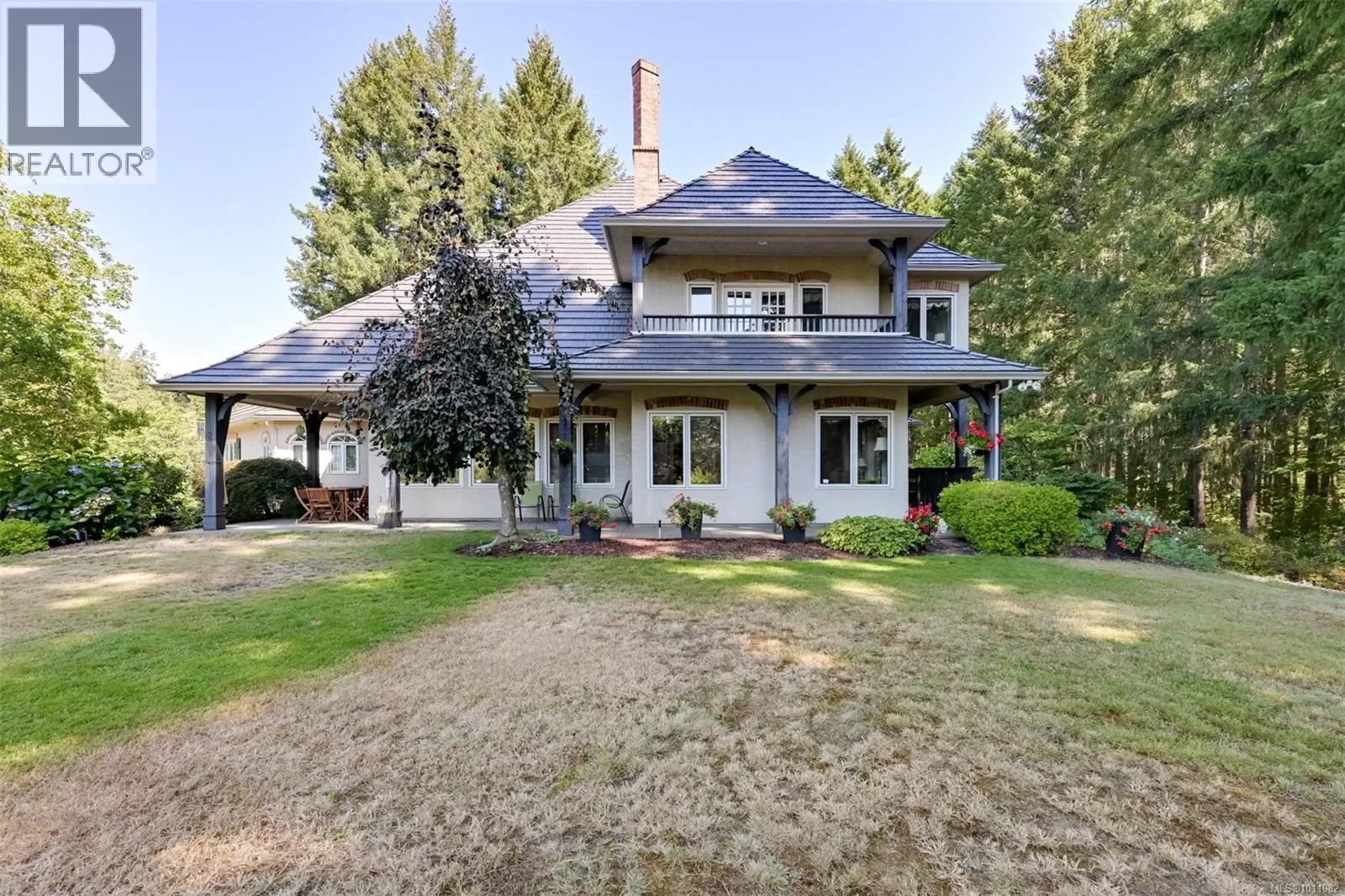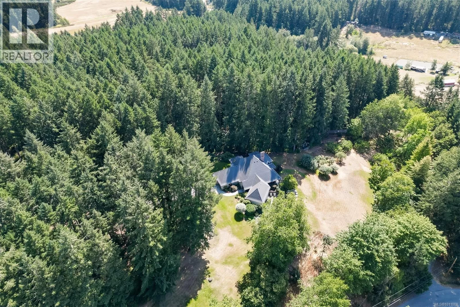 Welcome to 7003 Mays Road, a peaceful and private country estate nestled on 84 acres of rolling meadows, ponds, forest, and tranquil trails. Originally built for Don Hays and now in its third ownership, this beautifully maintained home showcases stone and stucco construction, a new roof (2024), and spacious, light-filled interiors with vaulted ceilings up to 16 feet and crown moulding throughout. Inside, youâll find large, inviting rooms, including a chef-style kitchen with updated appliances and a huge pantry, open to the dining and living areas. The upper-level primary suite is a true retreat, featuring a jetted tub, towel warmer, fireplace, gigantic walk-in closet, laundry chute, and private decks to soak in the views. There are three fireplaces in totalâperfectly placed in the living room, family room, and primary bedroom. The finished basement includes ample storage, 2 more bedrooms, a rec room, a huge flex space, and a separate entrance, ideal for suite potential. The estate is rich with features: a large laundry room, 2 heat pumps with dual zones and electric backup, a wood-burning furnace, and hardwood, tile, and carpet flooring. Outside, enjoy a covered deck overlooking a fenced orchard with cherry, apple, pear, and plum trees, all irrigated from a pond on the property. Garages include a 2-bay attached garage, plus separate 1-car and 4-car detached garages. Thereâs also a unique dance studio with fir flooring reclaimed from the Mayfair Bowling Alley. Roughly 15 acres are hayed on Mays Rd and 30 on Herd Rd, contributing to farm status for tax savings. The forested portionâmostly firâwas appraised at $350,000 about ten years ago. Wildlife is abundant, with deer trails and a bird sanctuary in the marshlands. With solid infrastructure, serene beauty, and endless potential, this is a rare chance to own a truly special piece of the Cowichan Valley. (id:27476)