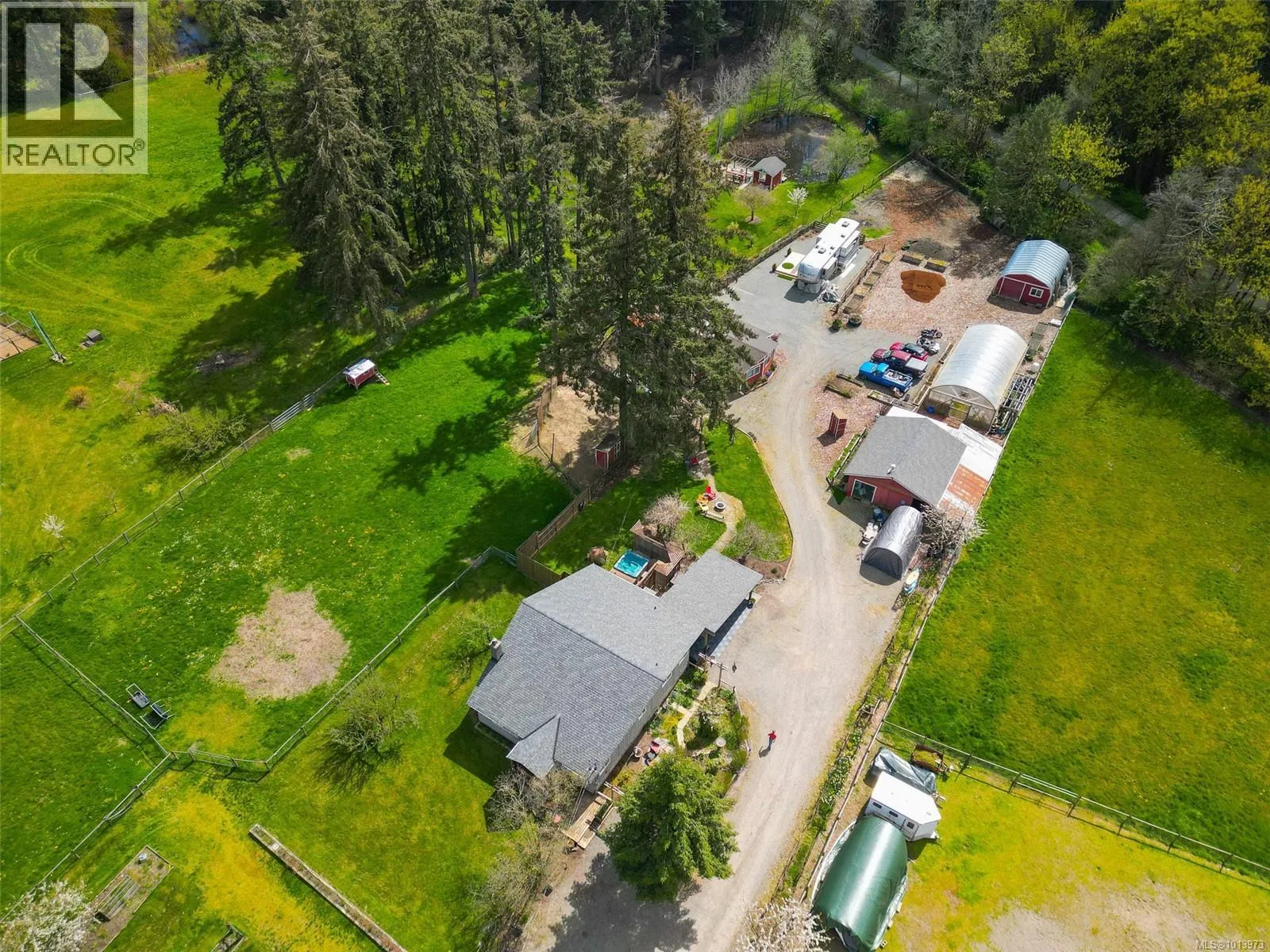 Welcome to Red Bell Farm, a serene 2.73 acre retreat backing onto the Cowichan Valley Trail, offering privacy, charm, and endless possibilities yet only a 6 minute drive to downtown Duncan. The 4-bedroom, 2-bathroom farmhouse has been lovingly maintained, preserving the warmth and functionality of a traditional countryside home. The flat, sun-drenched acreage is perfect for agricultural pursuits, featuring outdoor gardens, lush foliage, fruit trees, and a productive greenhouse. Fully fenced with irrigation, itâs ready for sustainable farming or livestock. A picturesque pond with a nearby outdoor kitchen and fire pit creates the ideal setting for entertaining, quiet reflection, or other pursuits. The property is well-equipped with multiple outbuildings, including a barn, paddocks with a separate kitchen and farm stand/studio, and a spacious insulated Quonset building. Income opportunities abound, with potential for campsites, farm stands, livestock boarding, or the addition of a suite or secondary home. Whether you dream of a working farm, a rural escape, or a unique business venture, Red Bell Farm offers a rare blend of natural beauty, practicality, and potential. Donât miss this one-of-a-kind property! (id:27476)